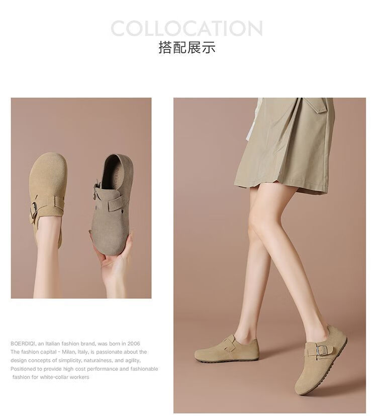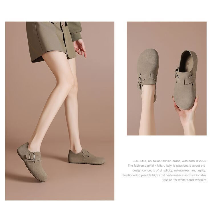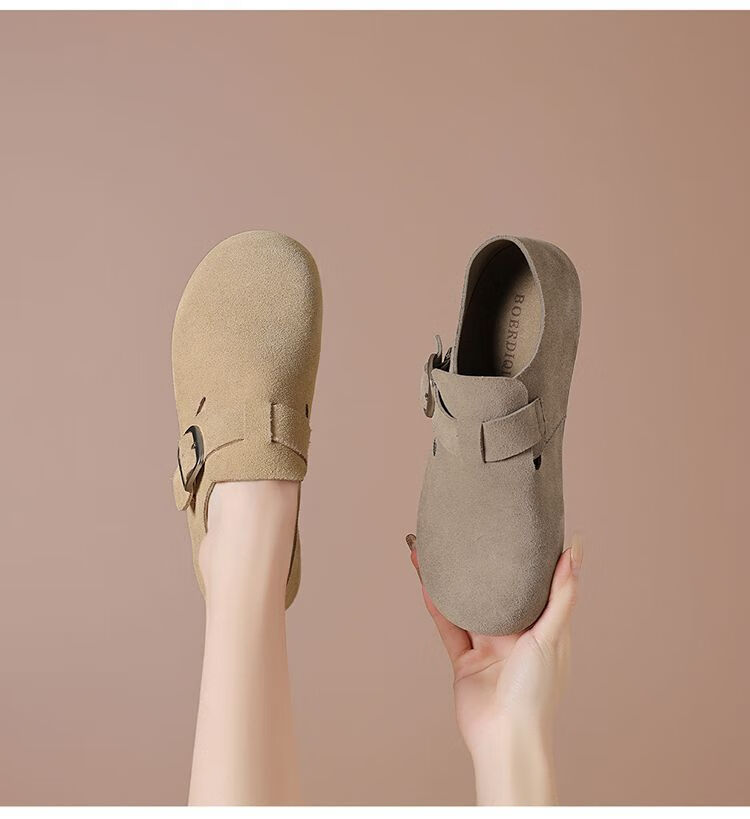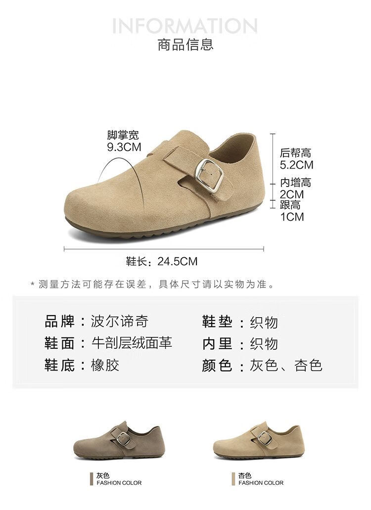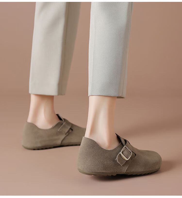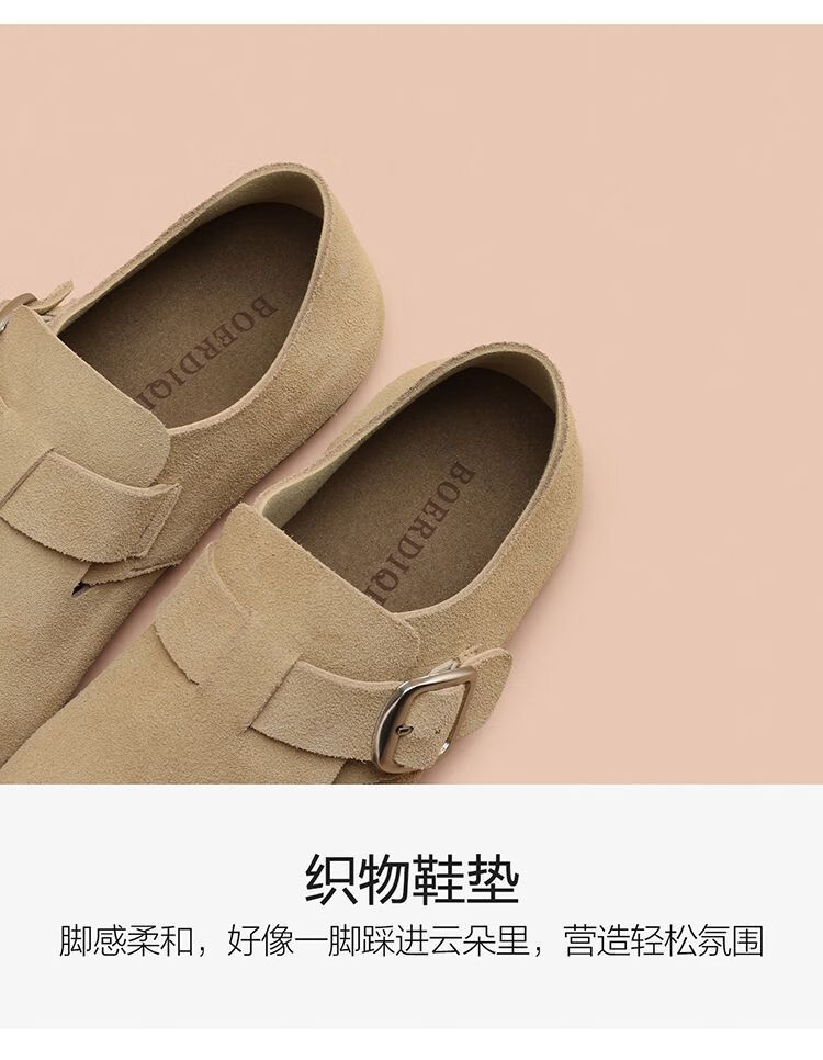 波尔谛奇(BOERDIQI)2025新款舒适勃肯鞋百搭轻便豆豆鞋休闲一脚蹬懒人工作鞋 灰色 39