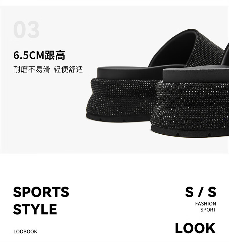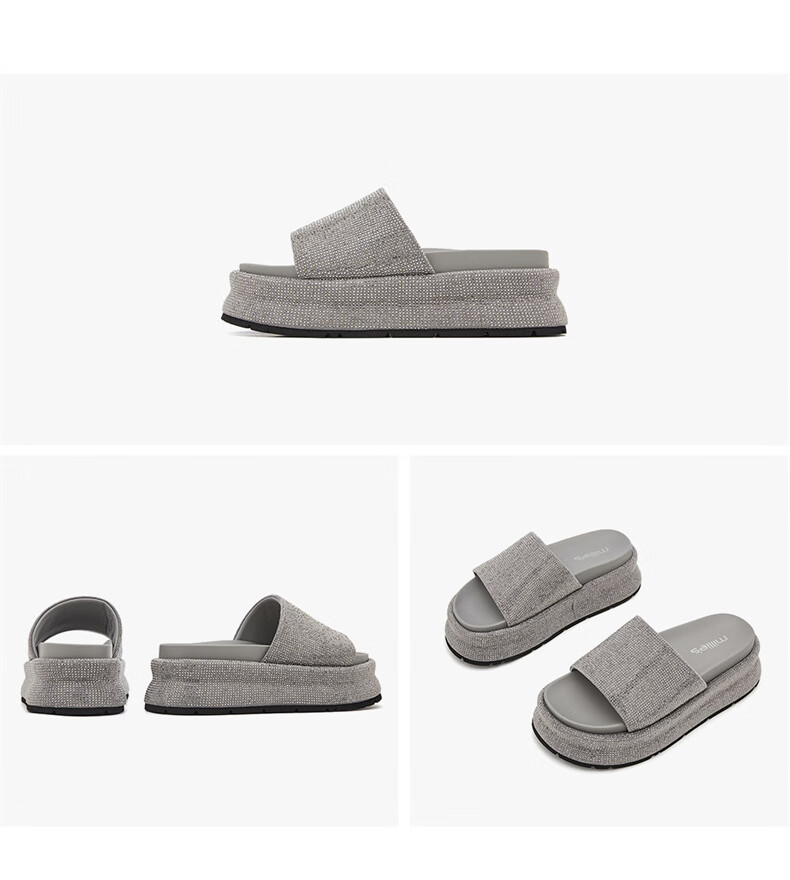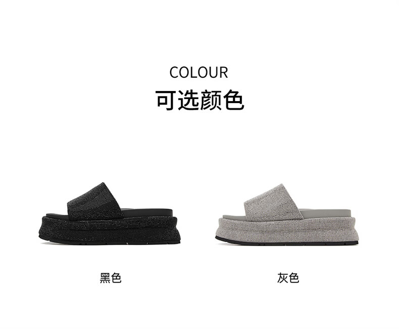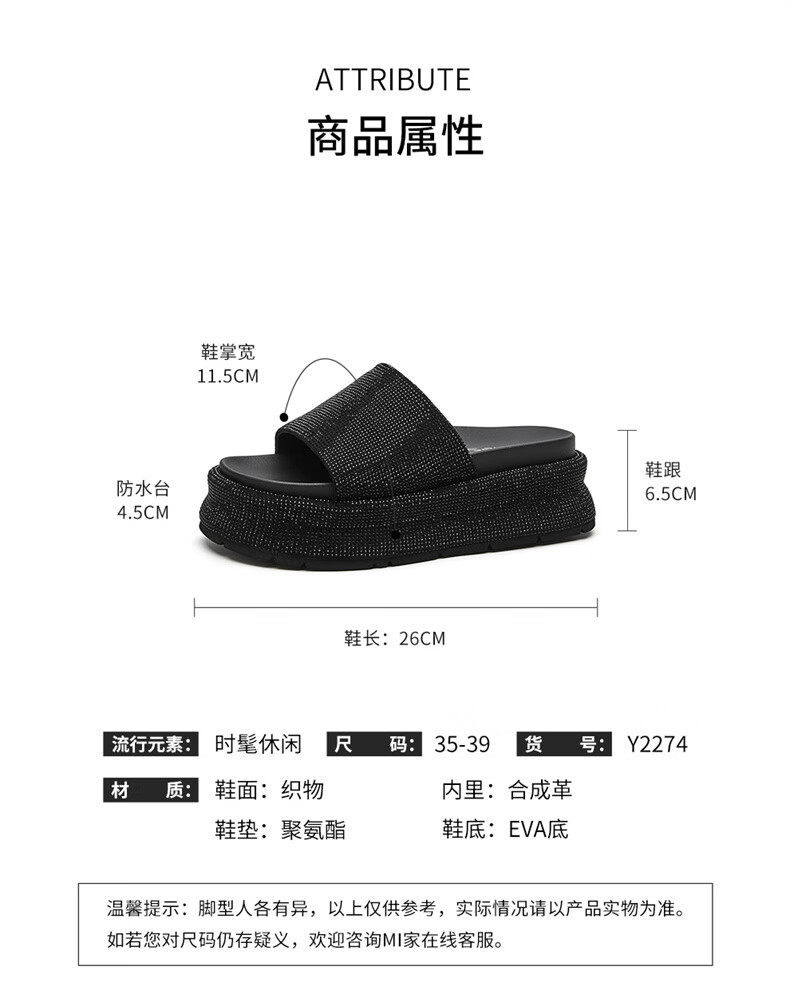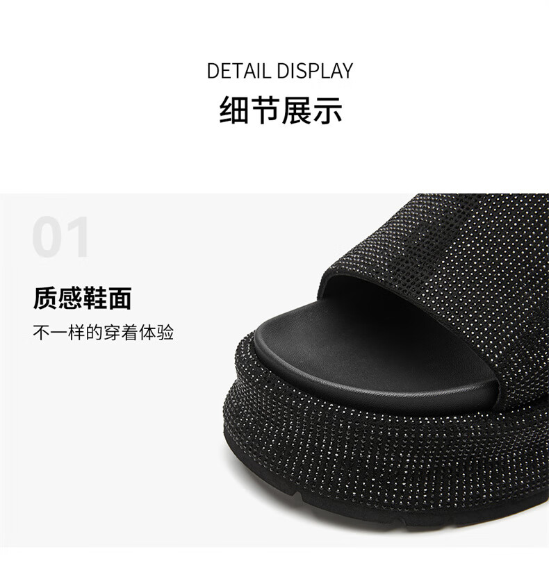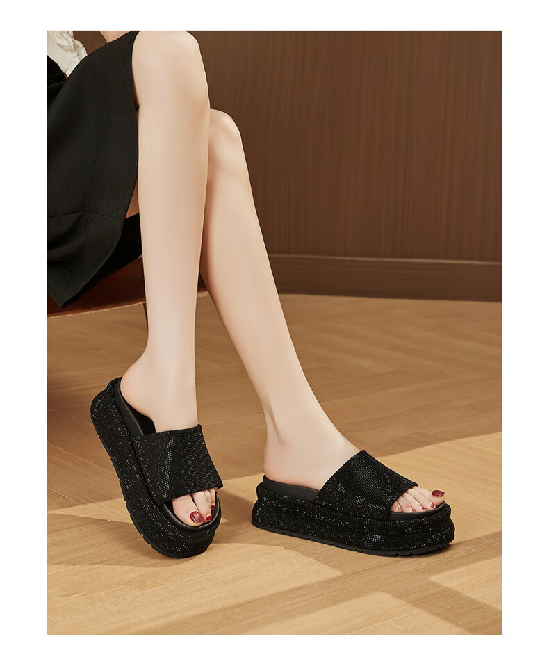 妙丽拖鞋女厚底外穿露趾细钻时尚2025夏季新款百搭配裙子半拖鞋 黑色 37 (235mm) 标准码