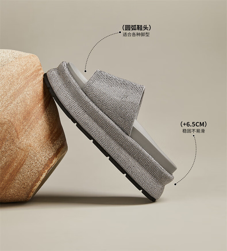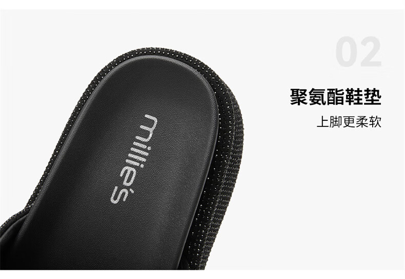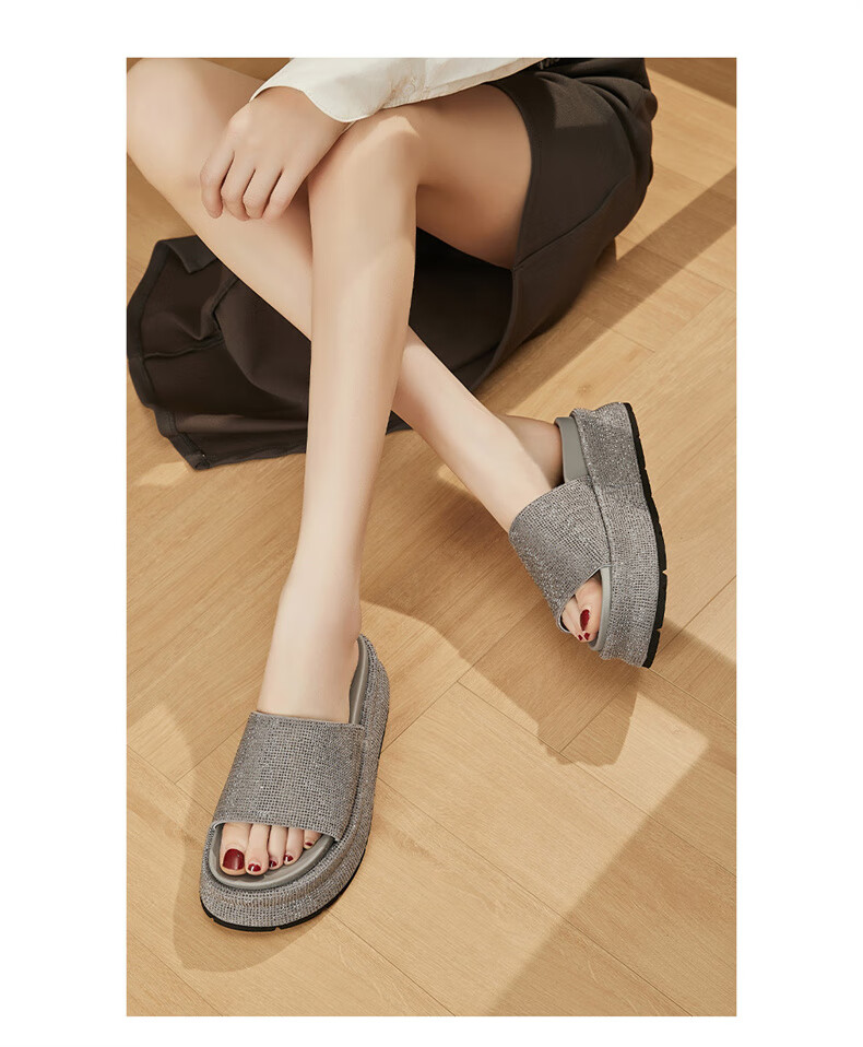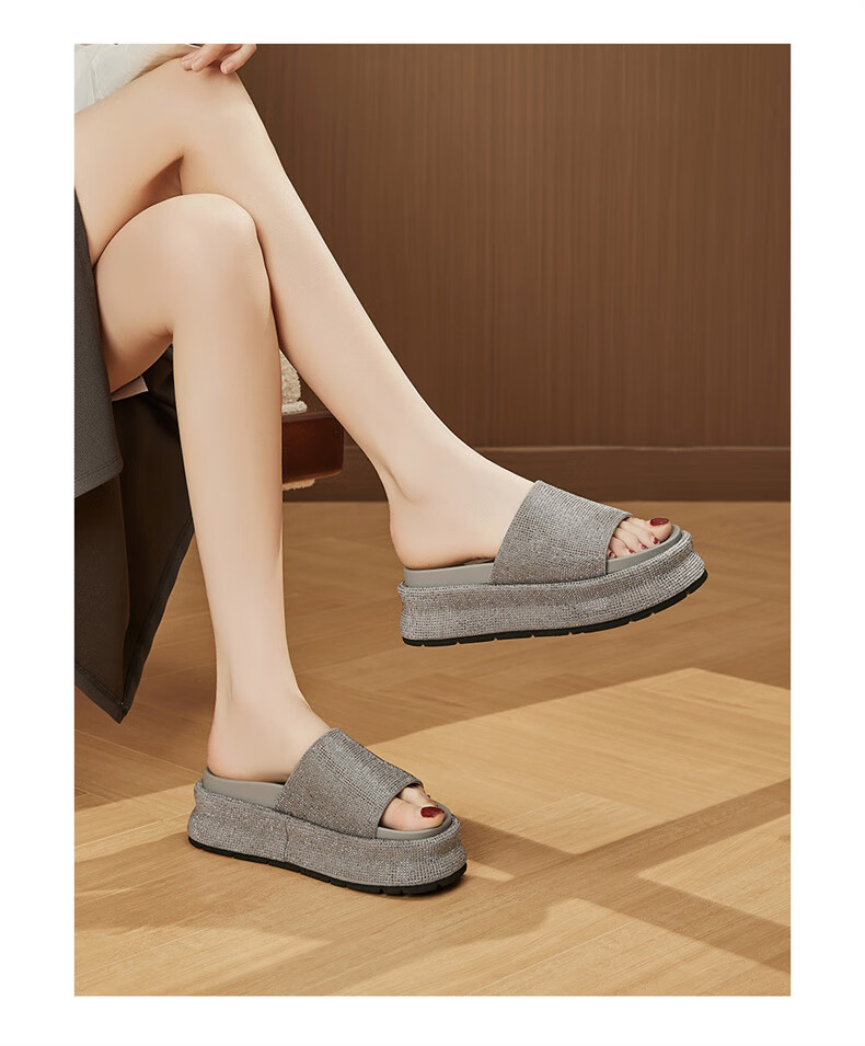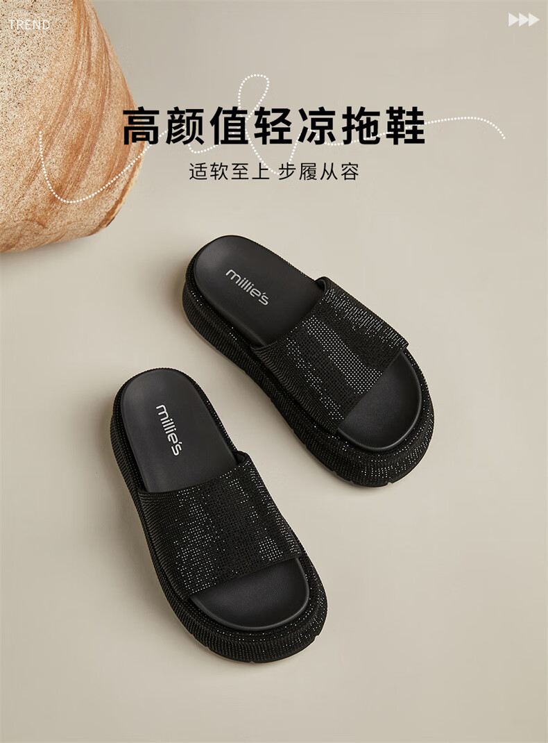 妙丽拖鞋女厚底外穿露趾细钻时尚2025夏季新款百搭配裙子半拖鞋 黑色 37 (235mm) 标准码