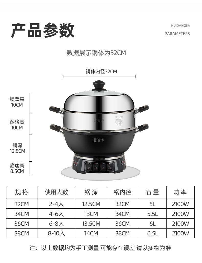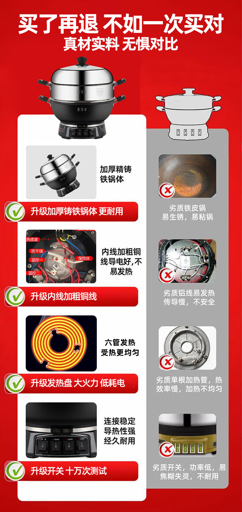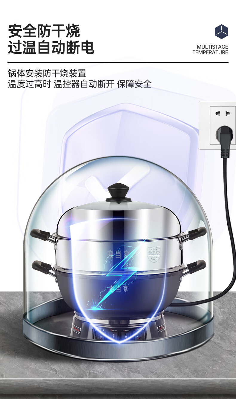 惠当家(Hui Dang Jia)六管加热铸铁电热锅 电炒锅电煮锅电蒸锅多功能锅家用一体式加厚炒煮锅电火锅炖锅多用途锅 【升级6管加热】38cm加深款+304钢单蒸笼