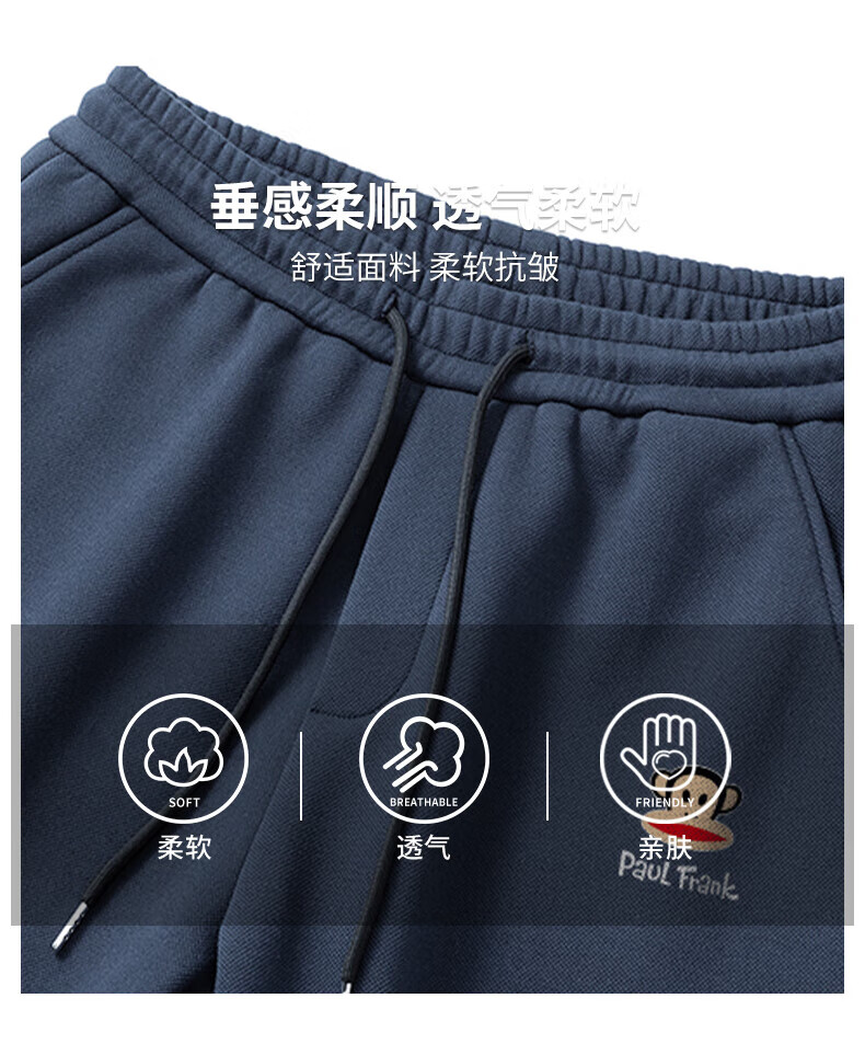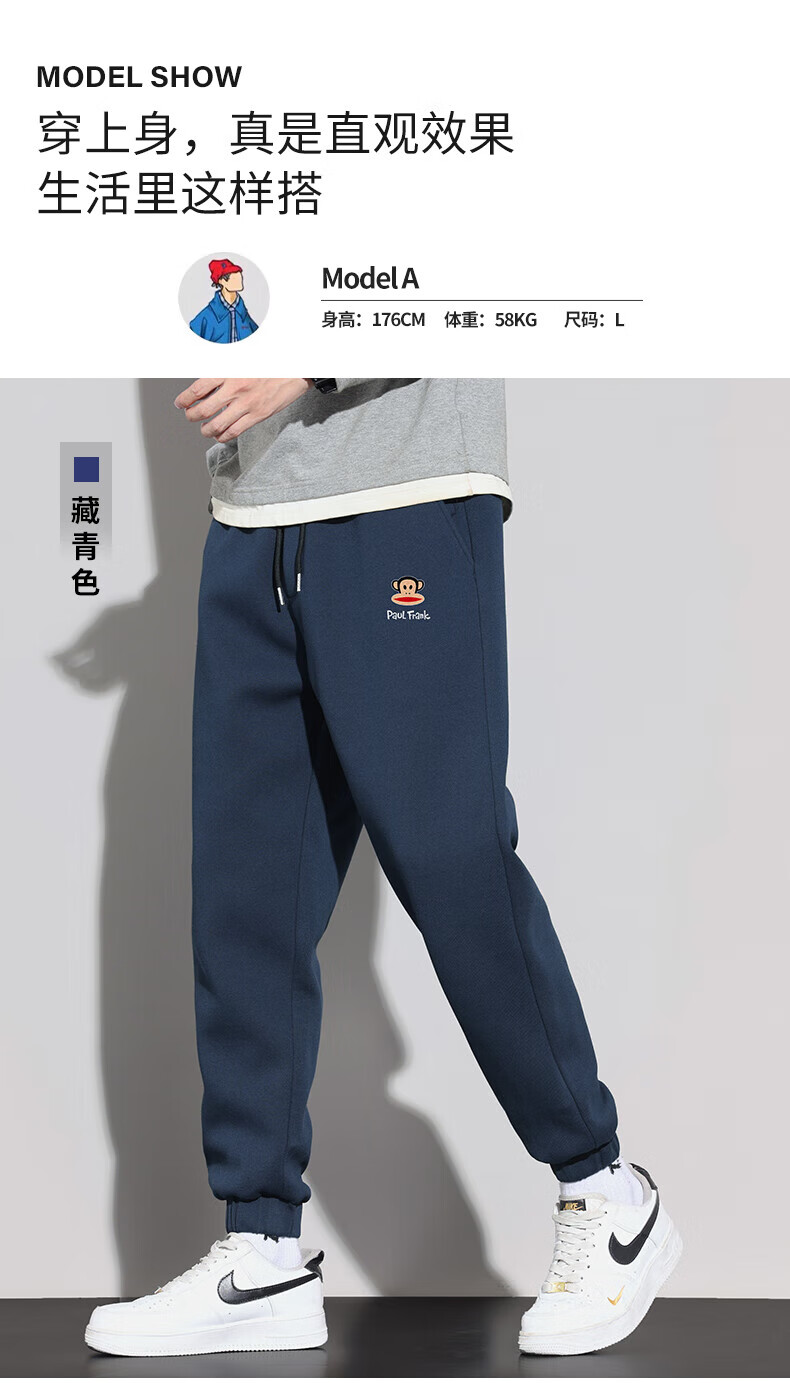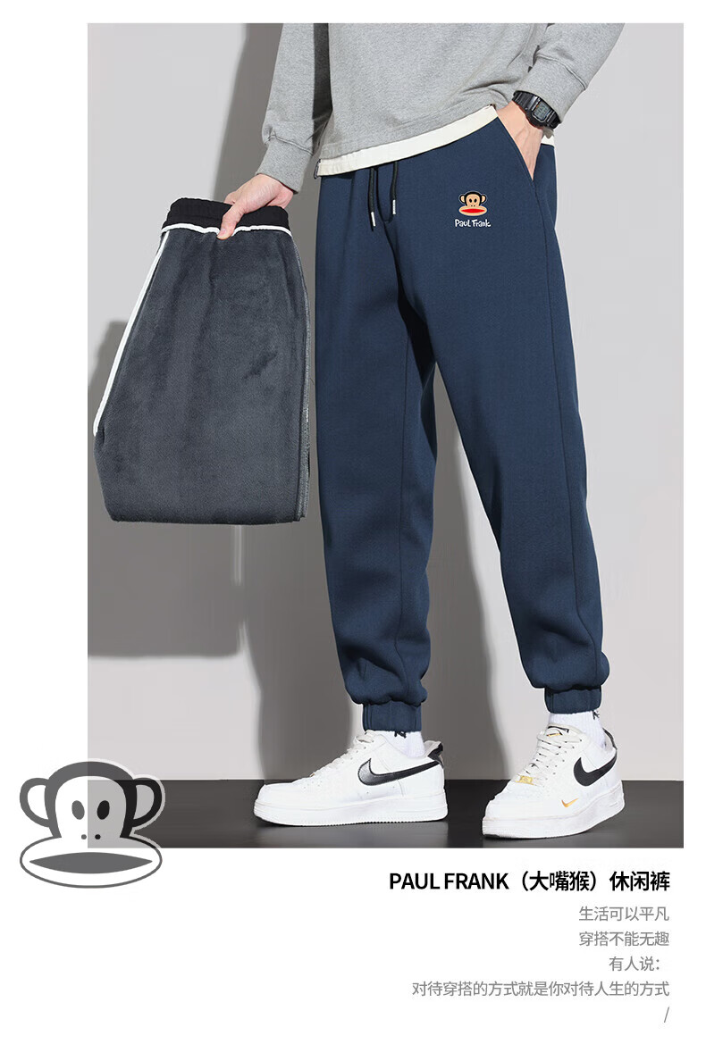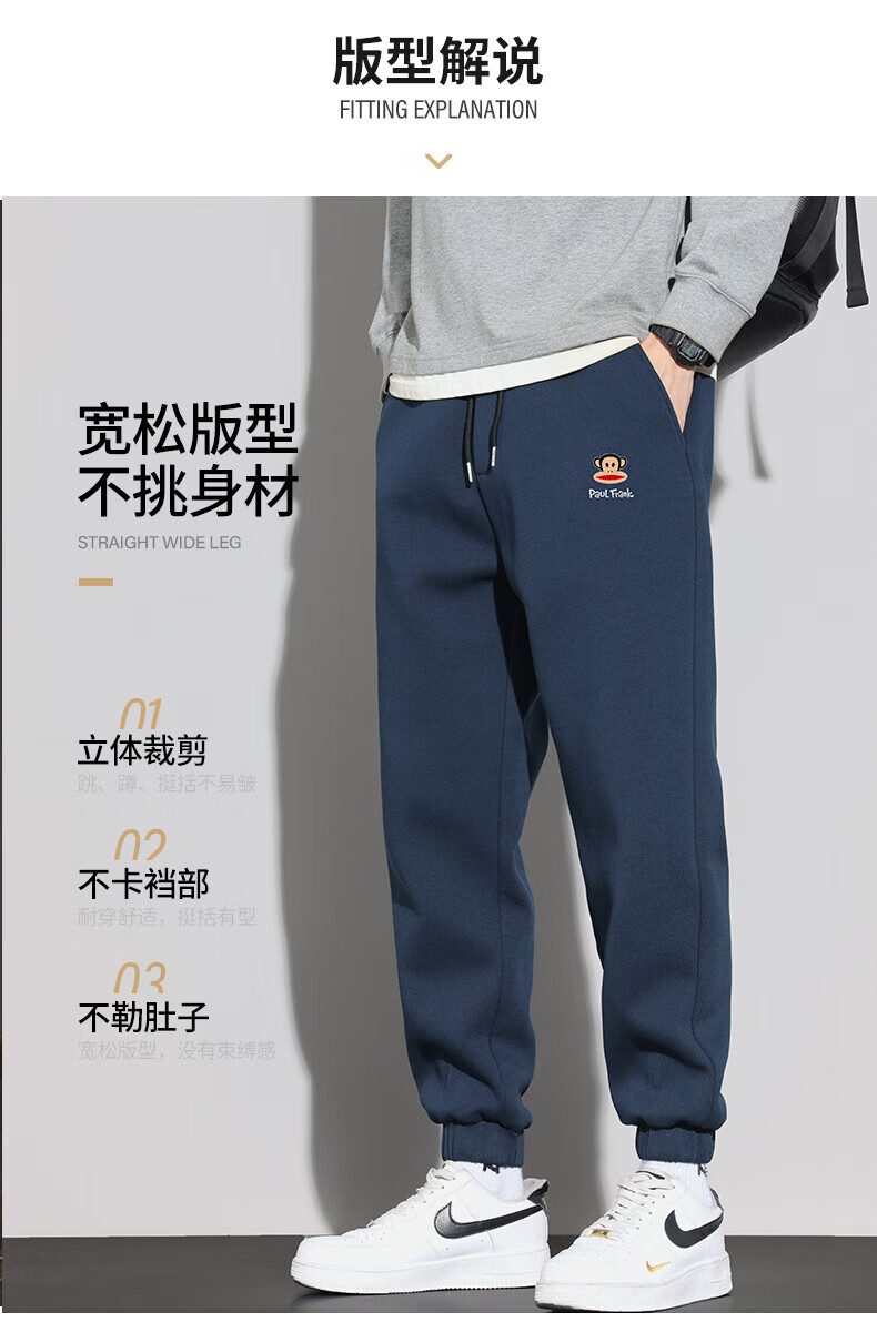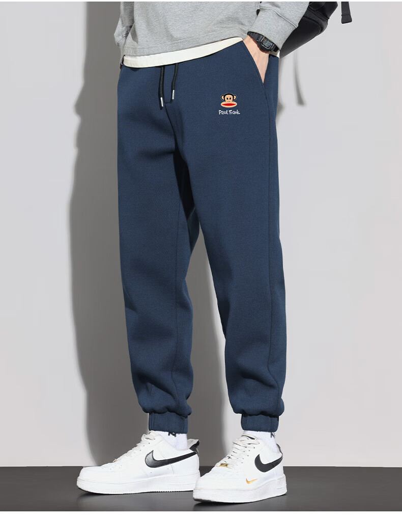 大嘴猴(paul frank)美式纯色棉弹休闲裤男士春秋季宽松运动工作九分束脚潮牌卫裤子装 藏青色 XL 【建议130-150斤】