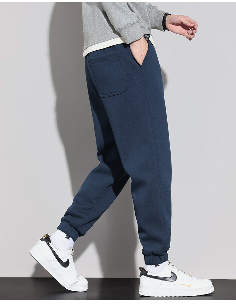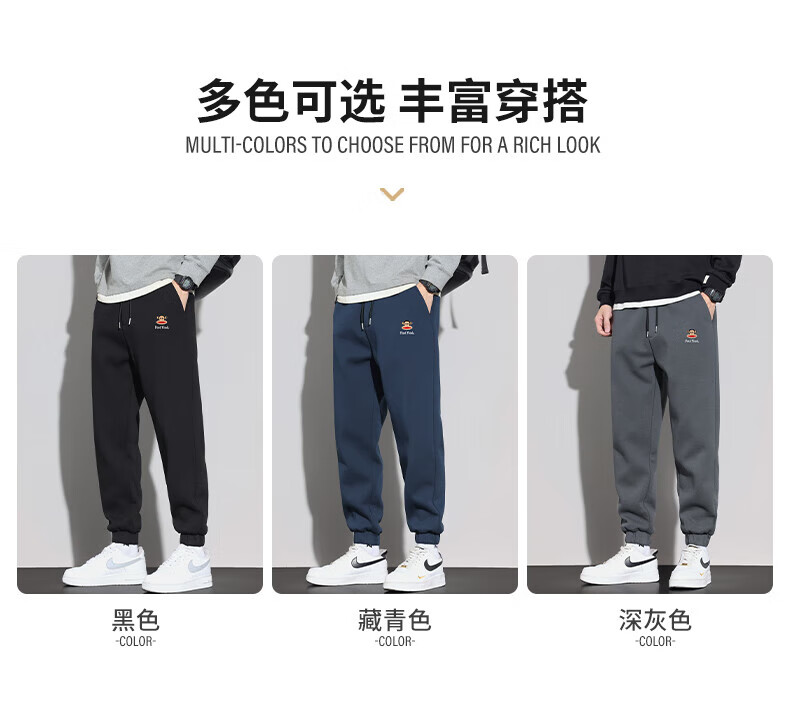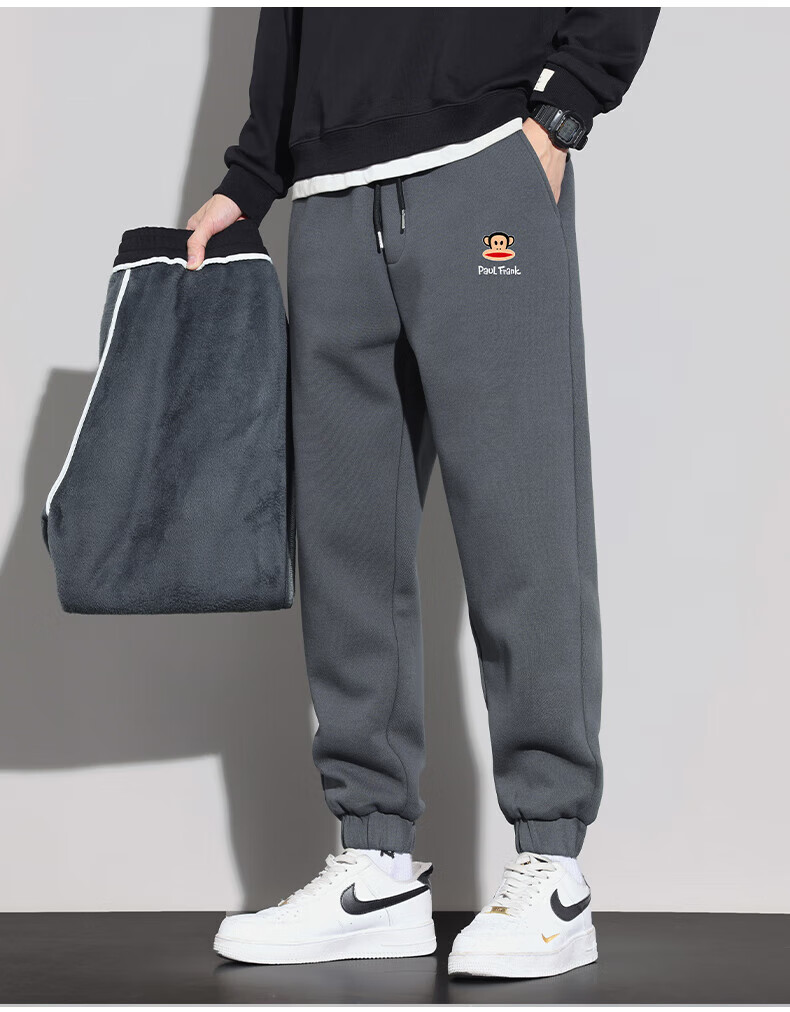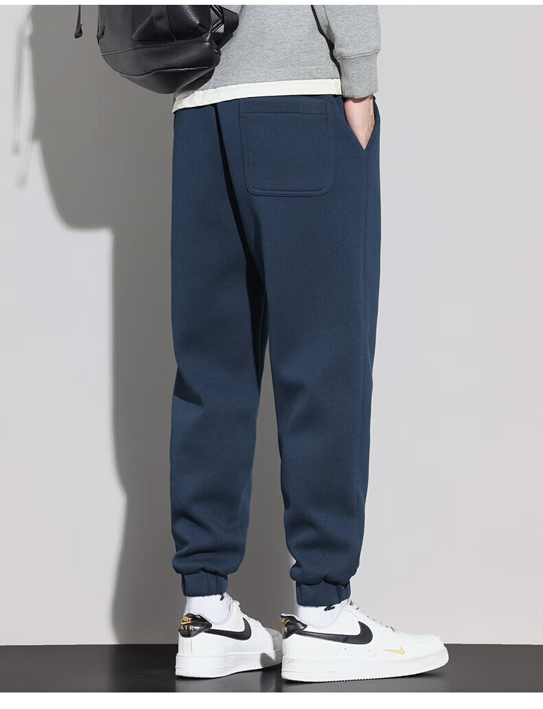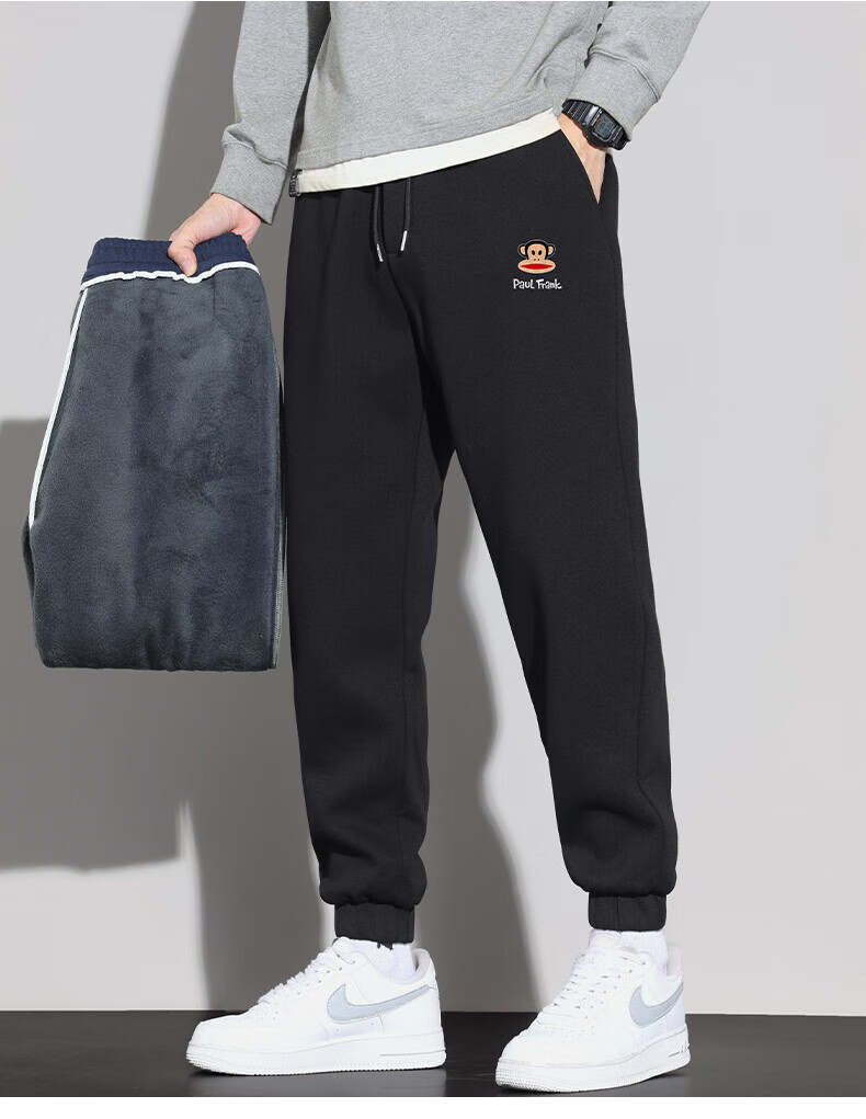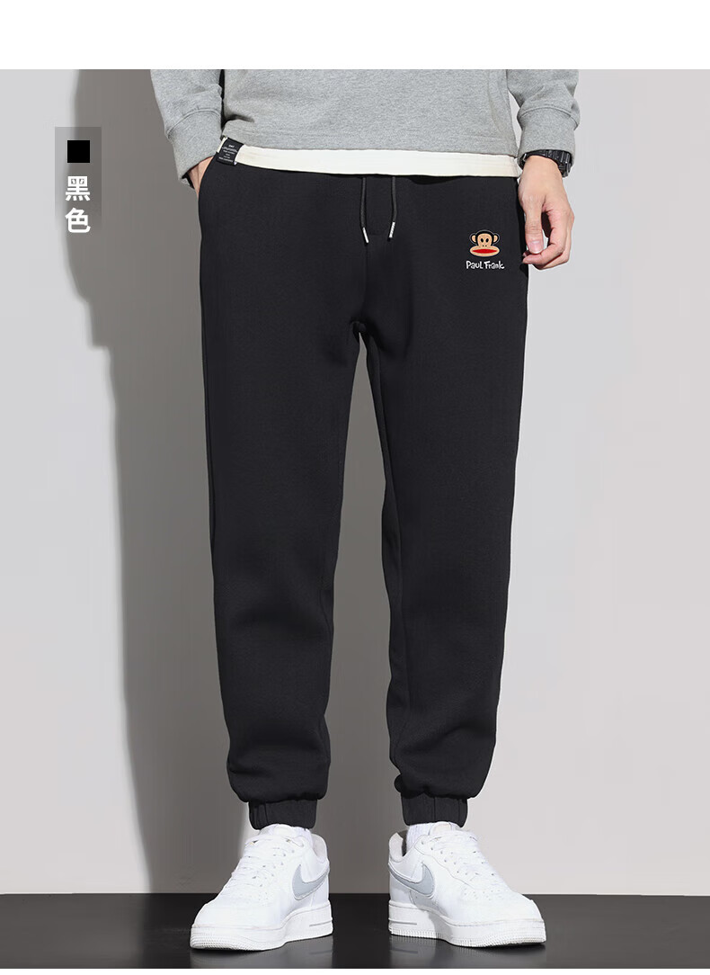 大嘴猴(paul frank)美式纯色棉弹休闲裤男士春秋季宽松运动工作九分束脚潮牌卫裤子装 藏青色 XL 【建议130-150斤】