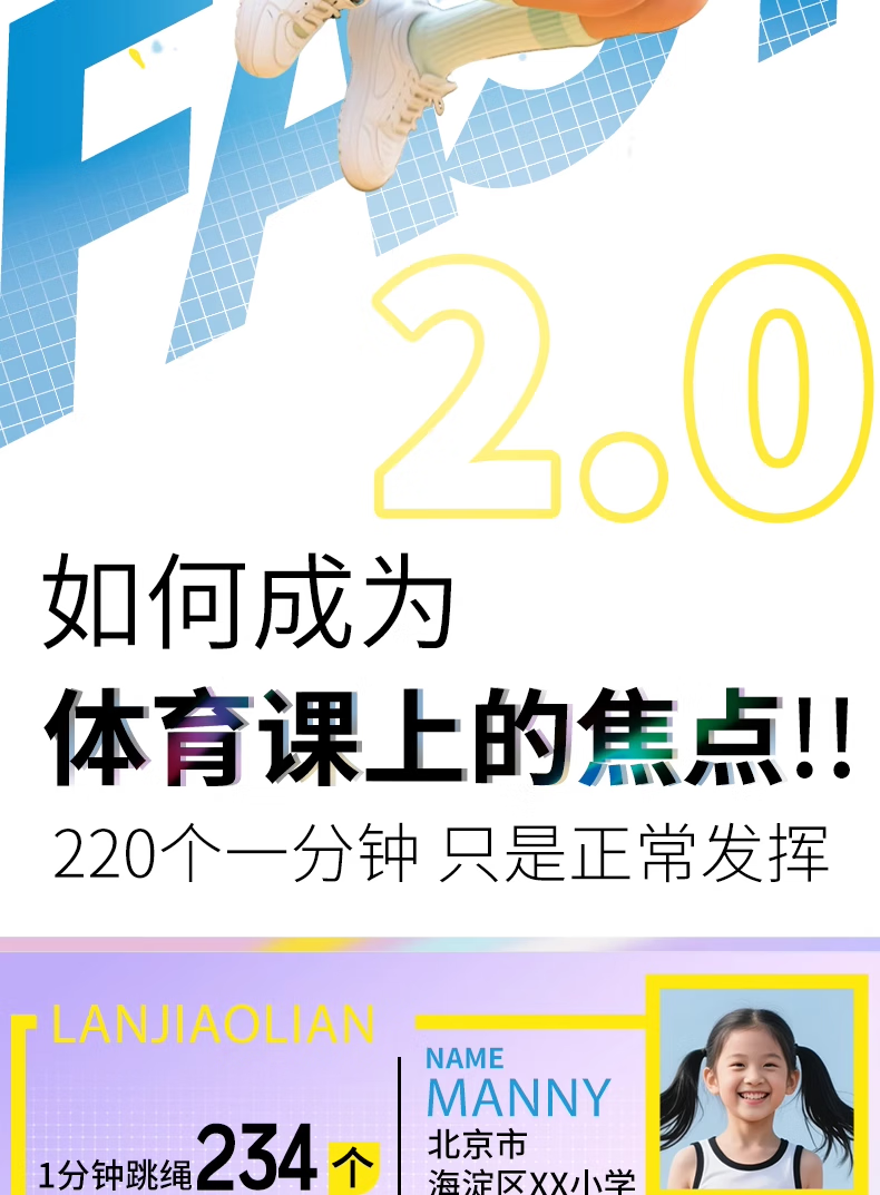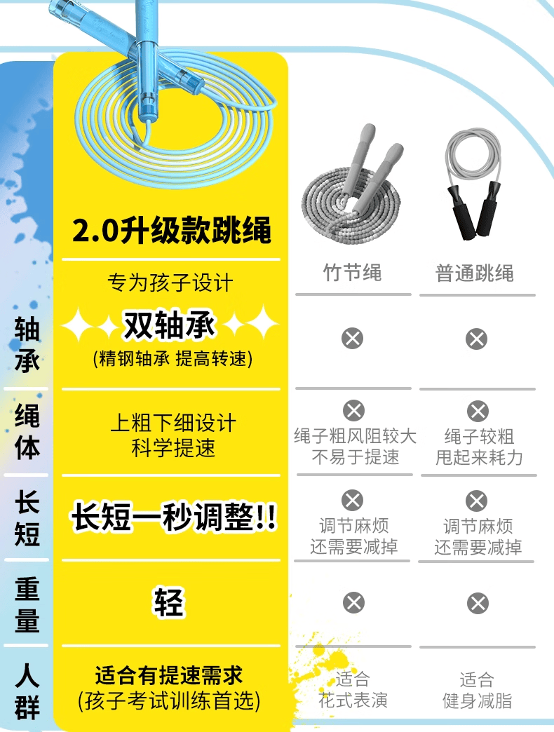 兰教练跳绳2.0双轴承儿童小学生考试幼儿园初学竞速跳绳【赠跳绳课程】 极光蓝【含赠品】