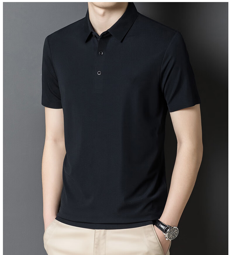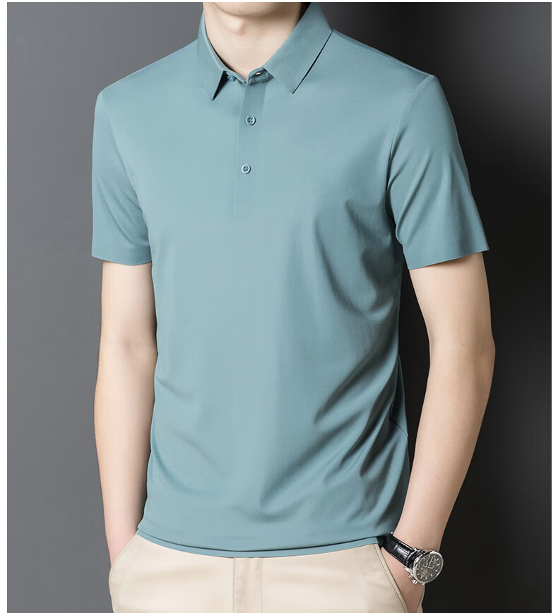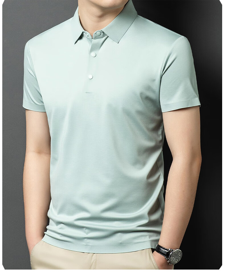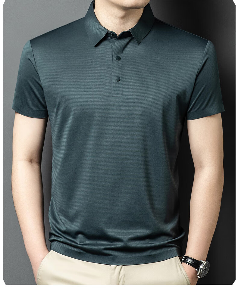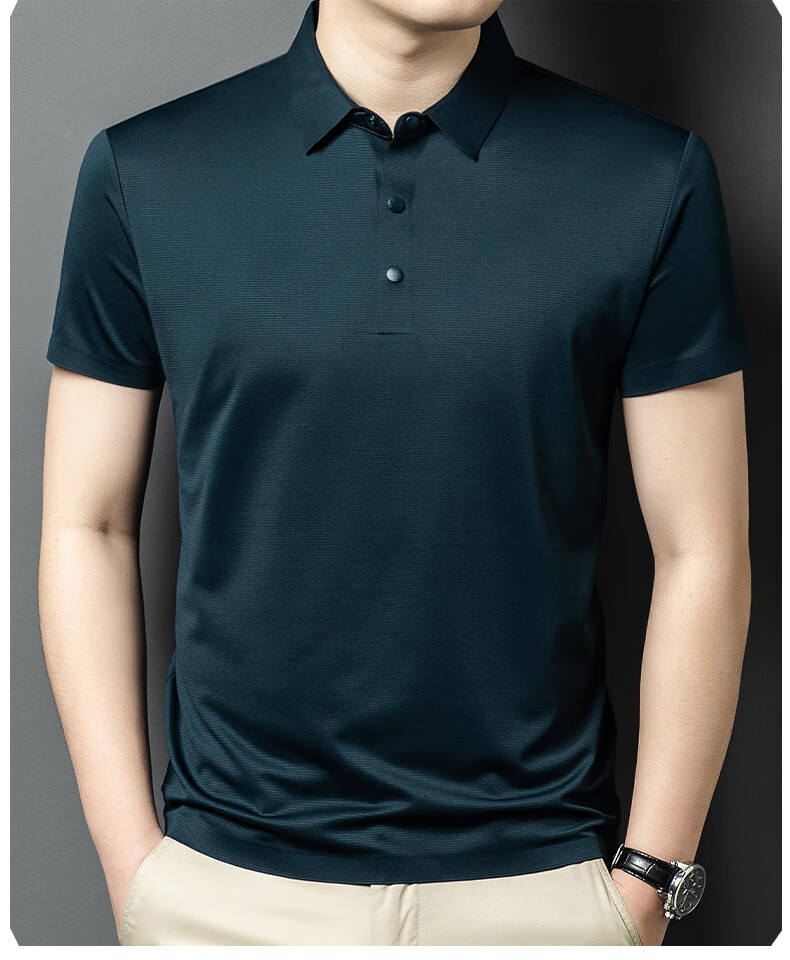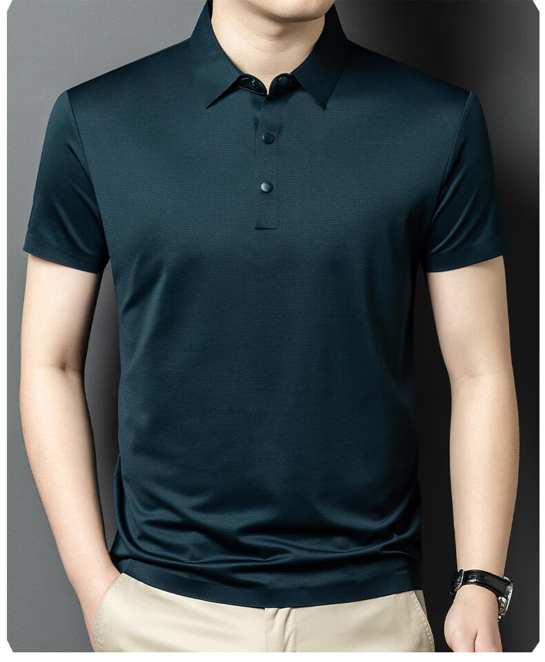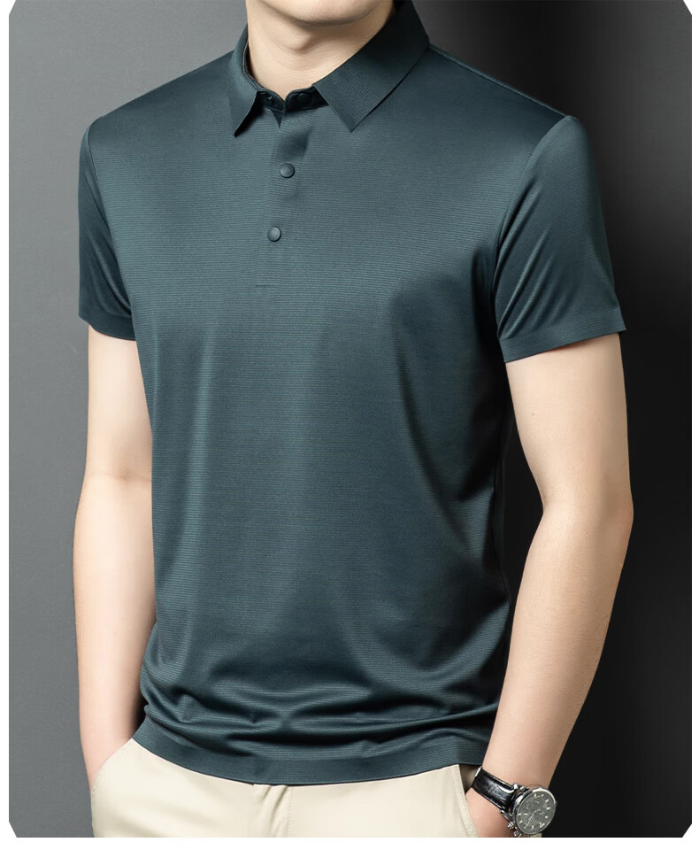 乔亚意大利轻奢男装夏季高档桑蚕丝短袖t恤衫 男士商务休闲纯色体恤衫 813墨绿色 【亲肤桑蚕丝免烫】 L 175【建议145-155斤】