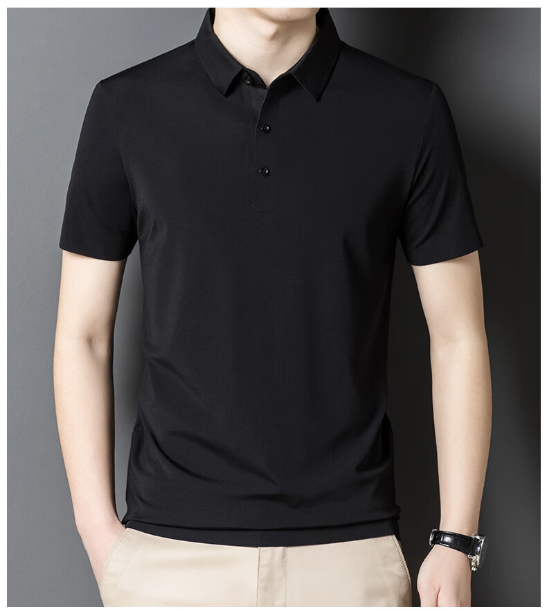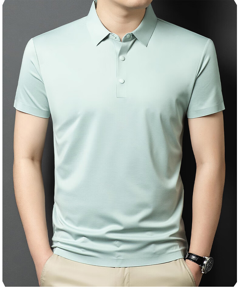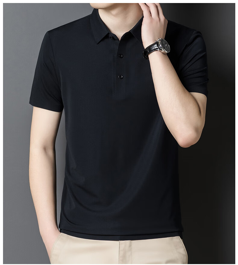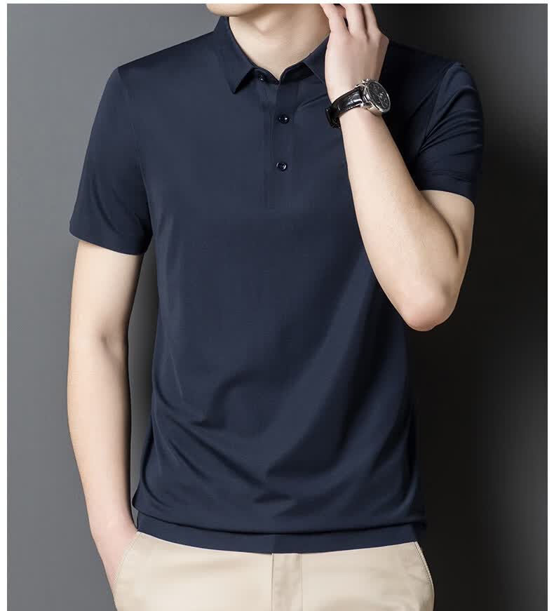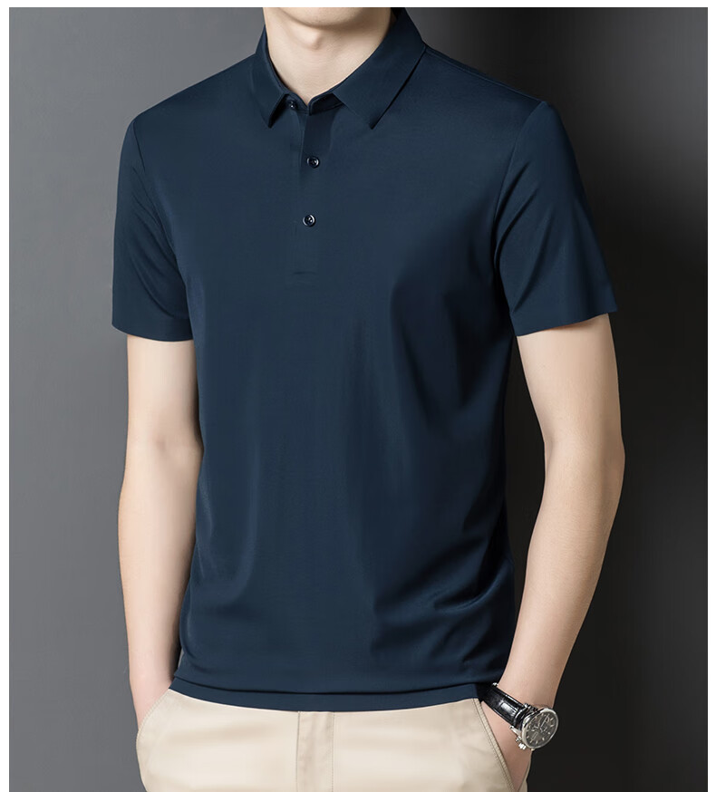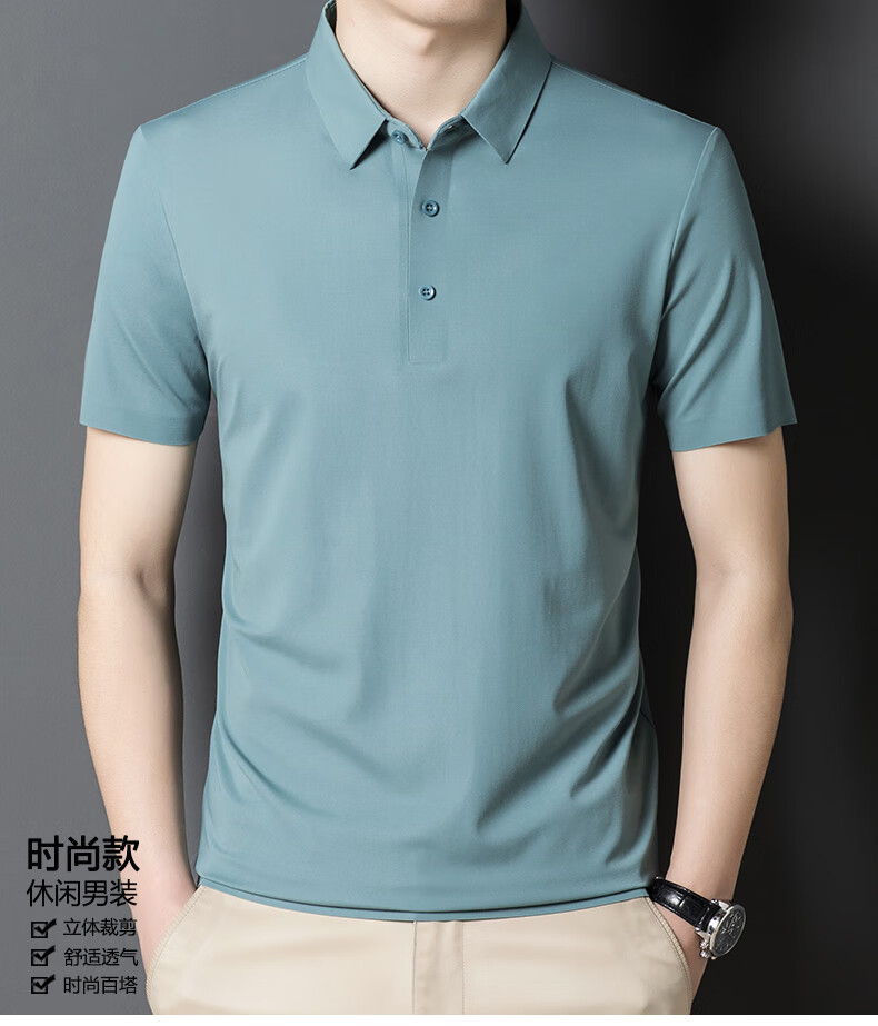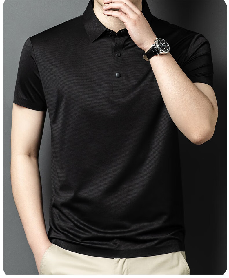 乔亚意大利轻奢男装夏季高档桑蚕丝短袖t恤衫 男士商务休闲纯色体恤衫 813墨绿色 【亲肤桑蚕丝免烫】 L 175【建议145-155斤】