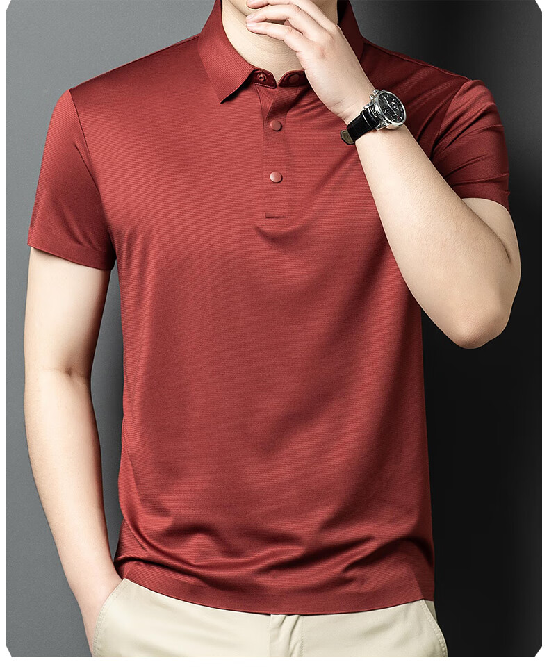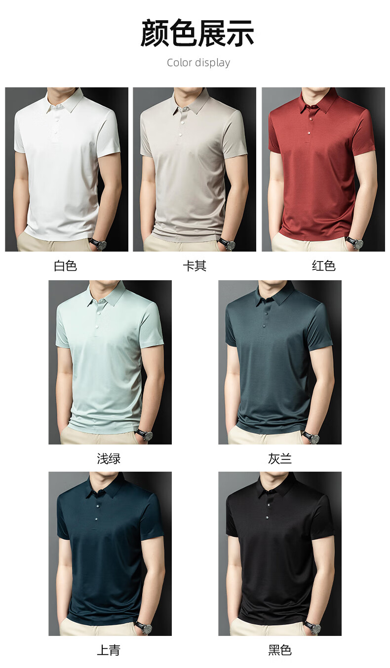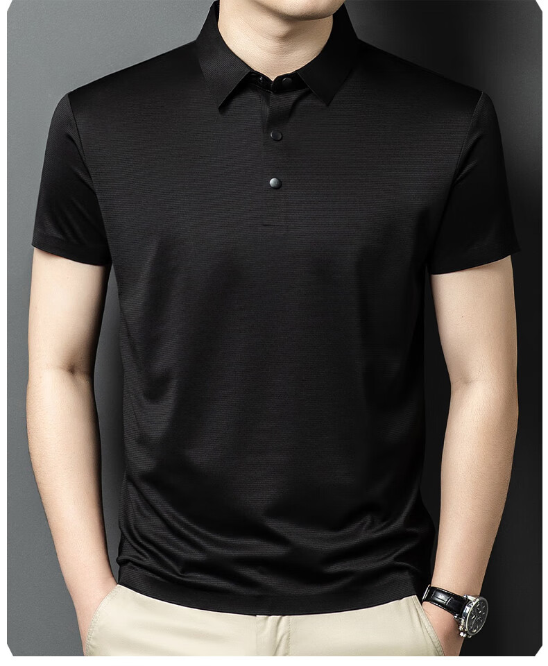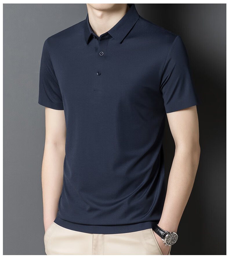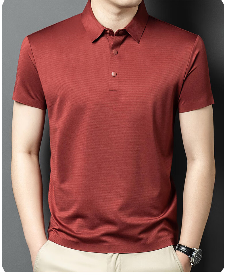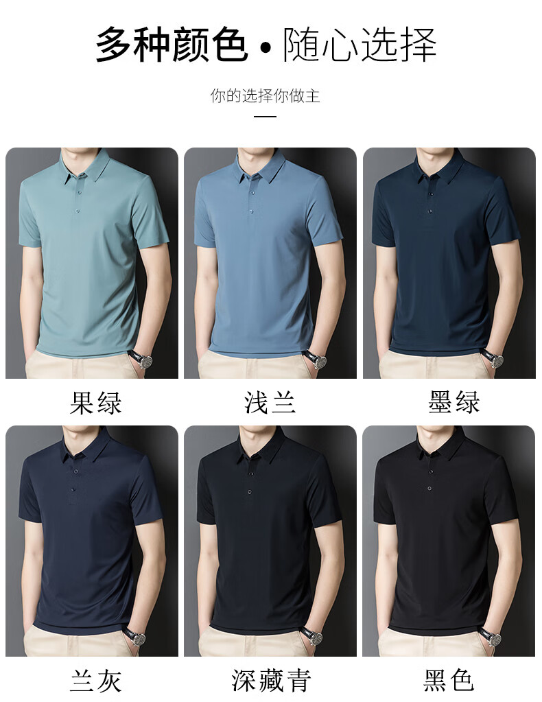 乔亚意大利轻奢男装夏季高档桑蚕丝短袖t恤衫 男士商务休闲纯色体恤衫 813墨绿色 【亲肤桑蚕丝免烫】 L 175【建议145-155斤】