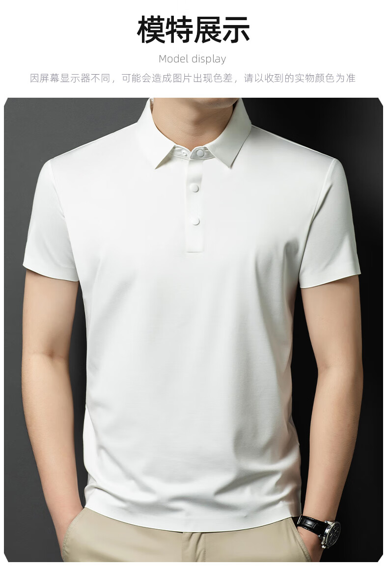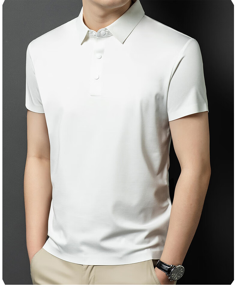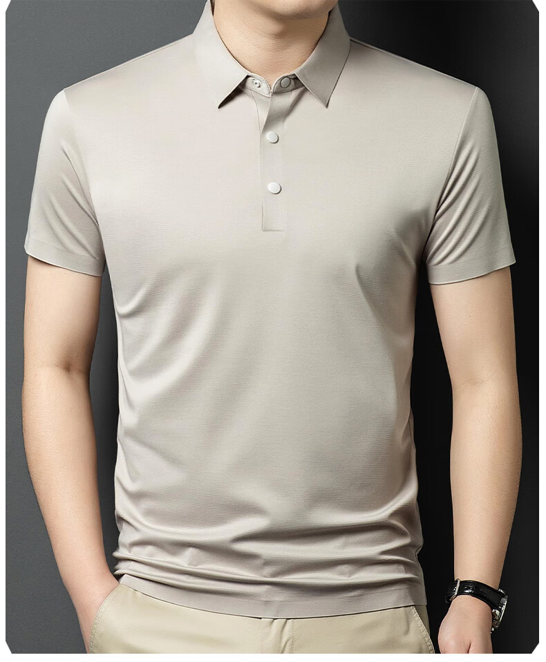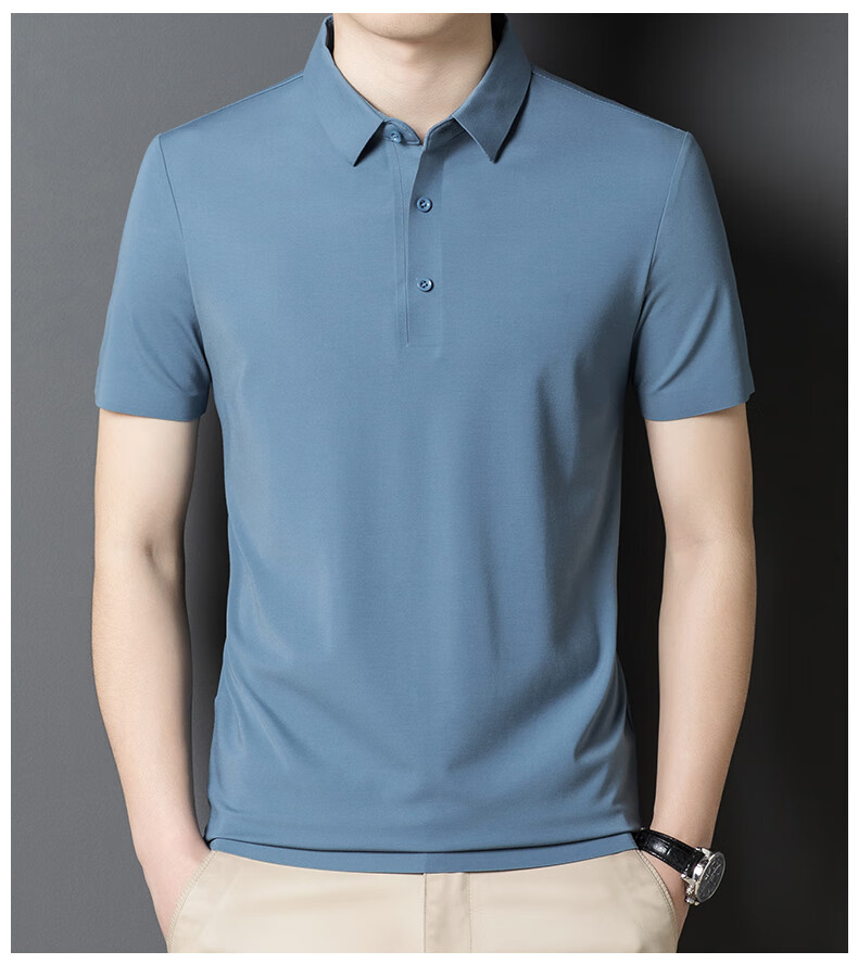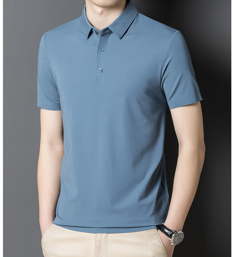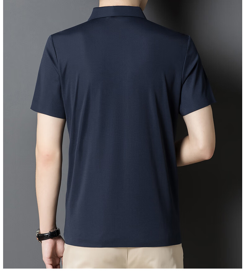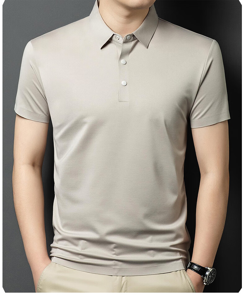乔亚意大利轻奢男装夏季高档桑蚕丝短袖t恤衫 男士商务休闲纯色体恤衫 813墨绿色 【亲肤桑蚕丝免烫】 L 175【建议145-155斤】