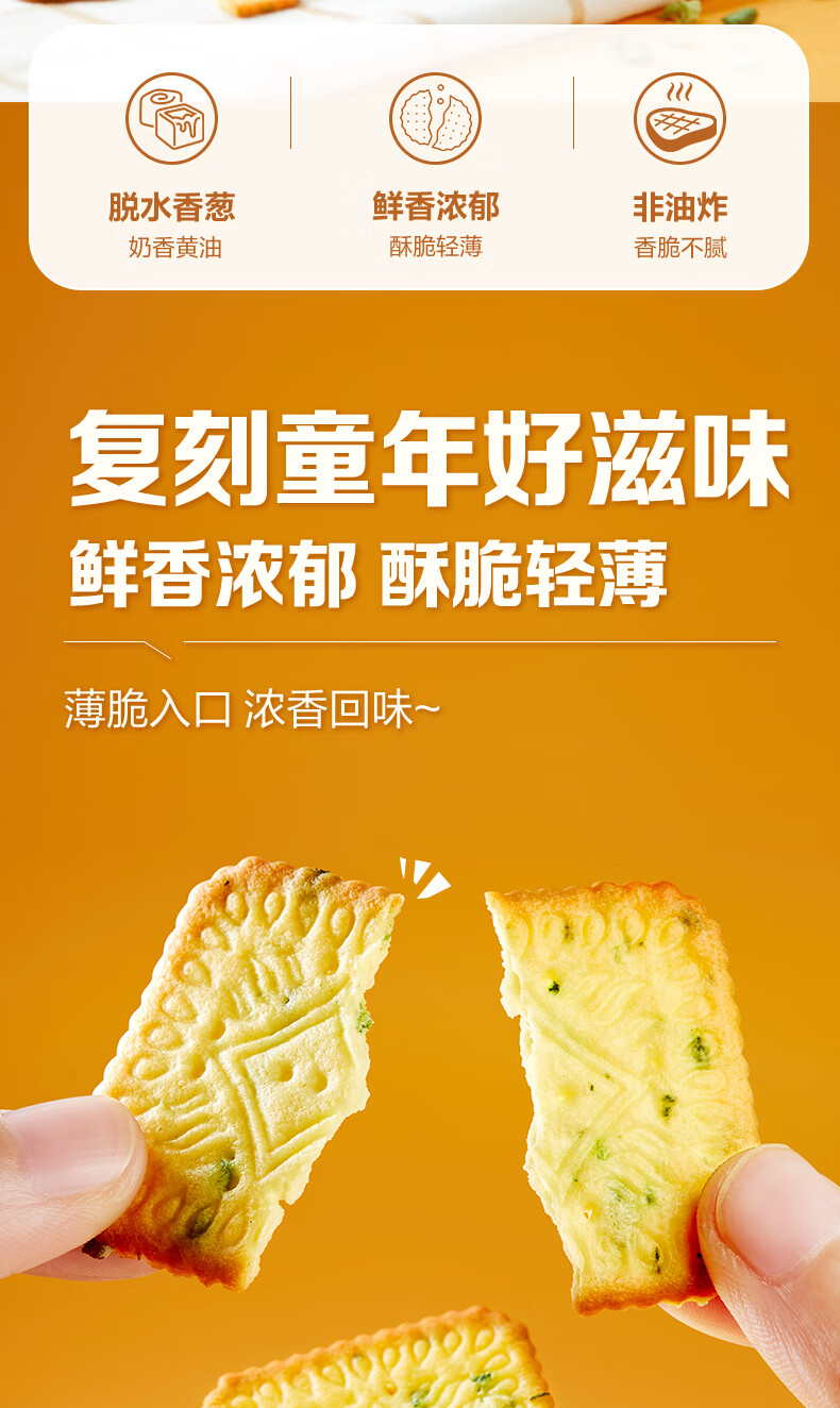 红允【饼干】薄脆饼干办公室零食休闲食品酥脆小吃 葱香薄饼300g*2袋 -