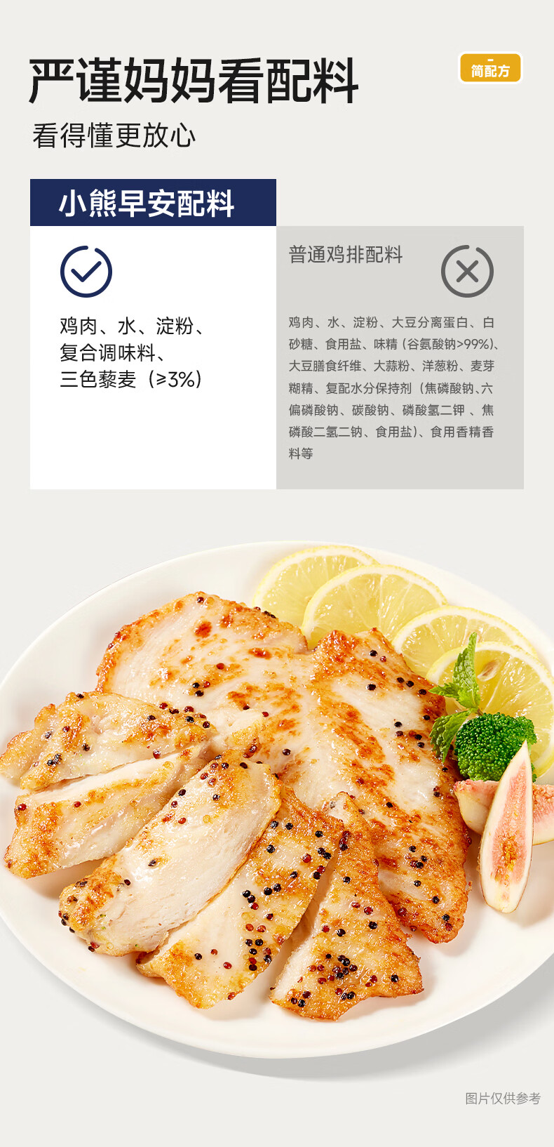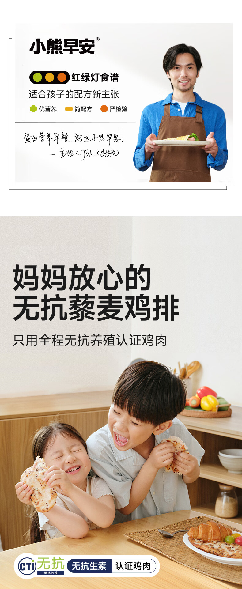 小熊早安无抗双蛋白藜麦鸡排100g 营养早餐 高蛋白升级健身儿童早餐 【爆款】无抗藜麦鸡排10袋+(赠A2牛奶手抓饼80g*3片)
