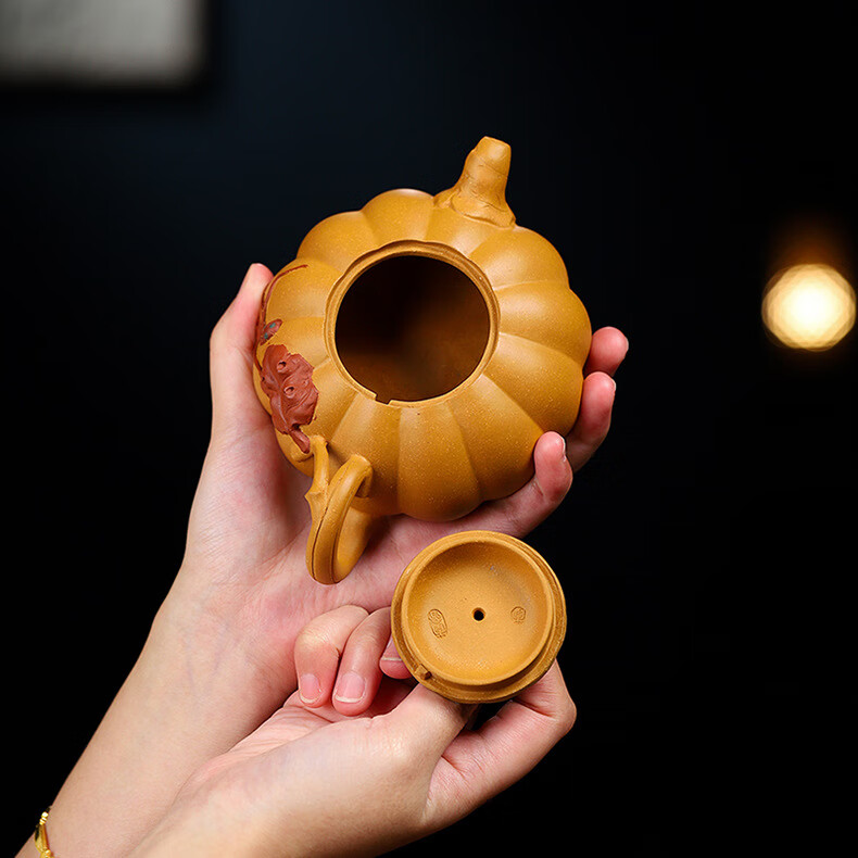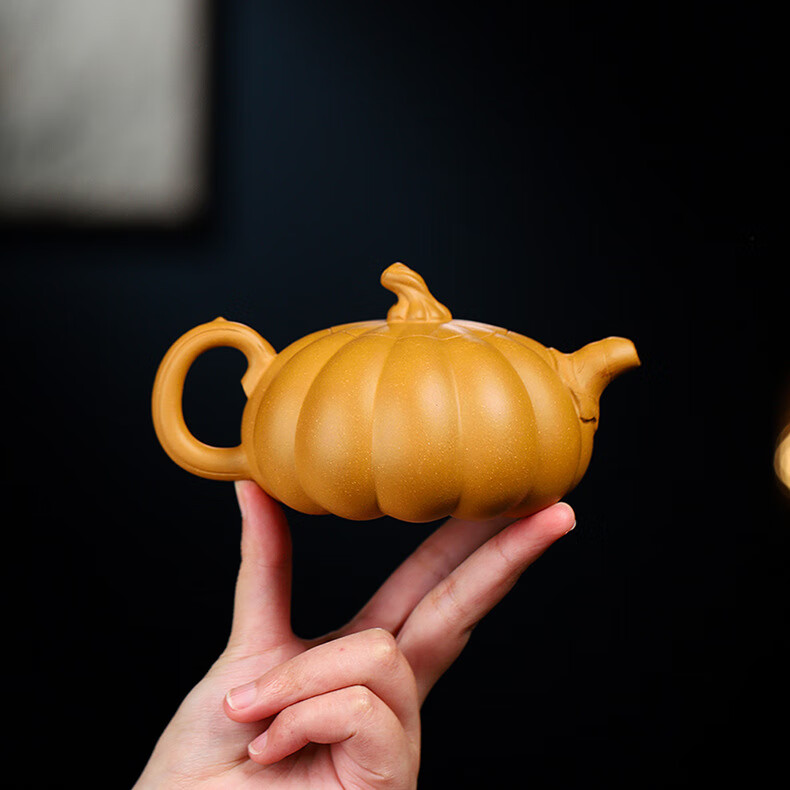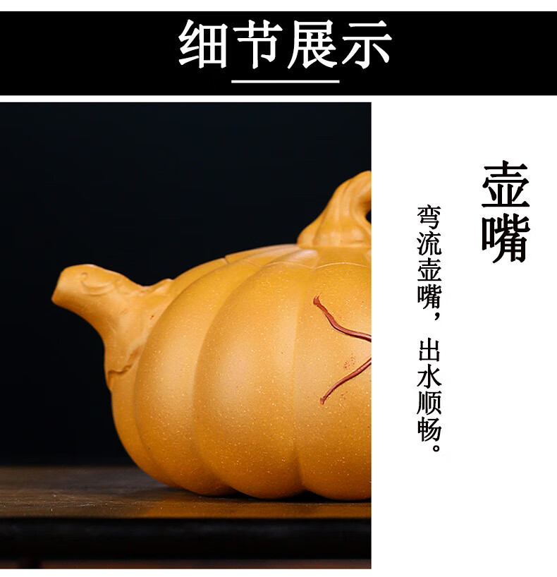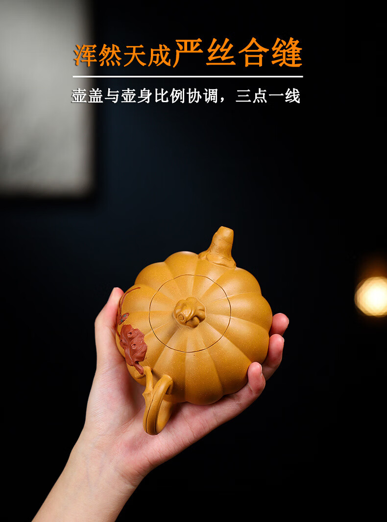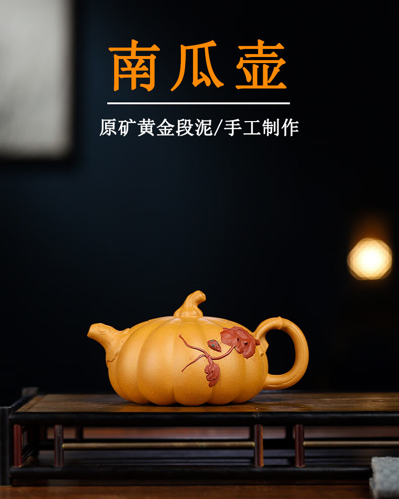 PJ工厂直发原矿黄金段泥手工南瓜壶宜兴紫砂壶茶具家用泡茶紫砂茶 壶黄金段泥