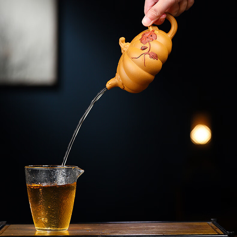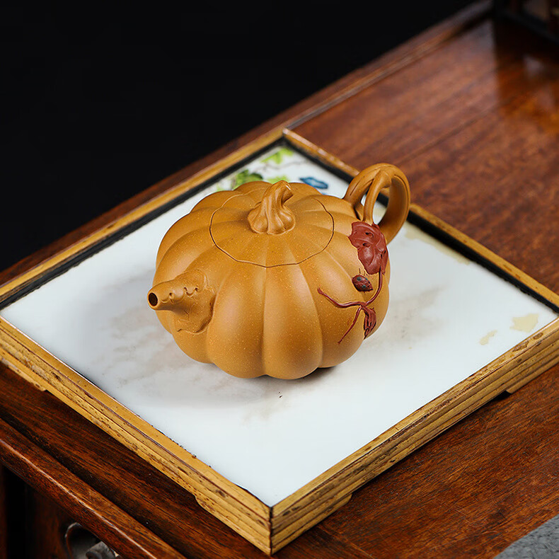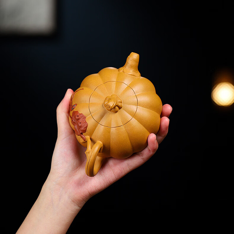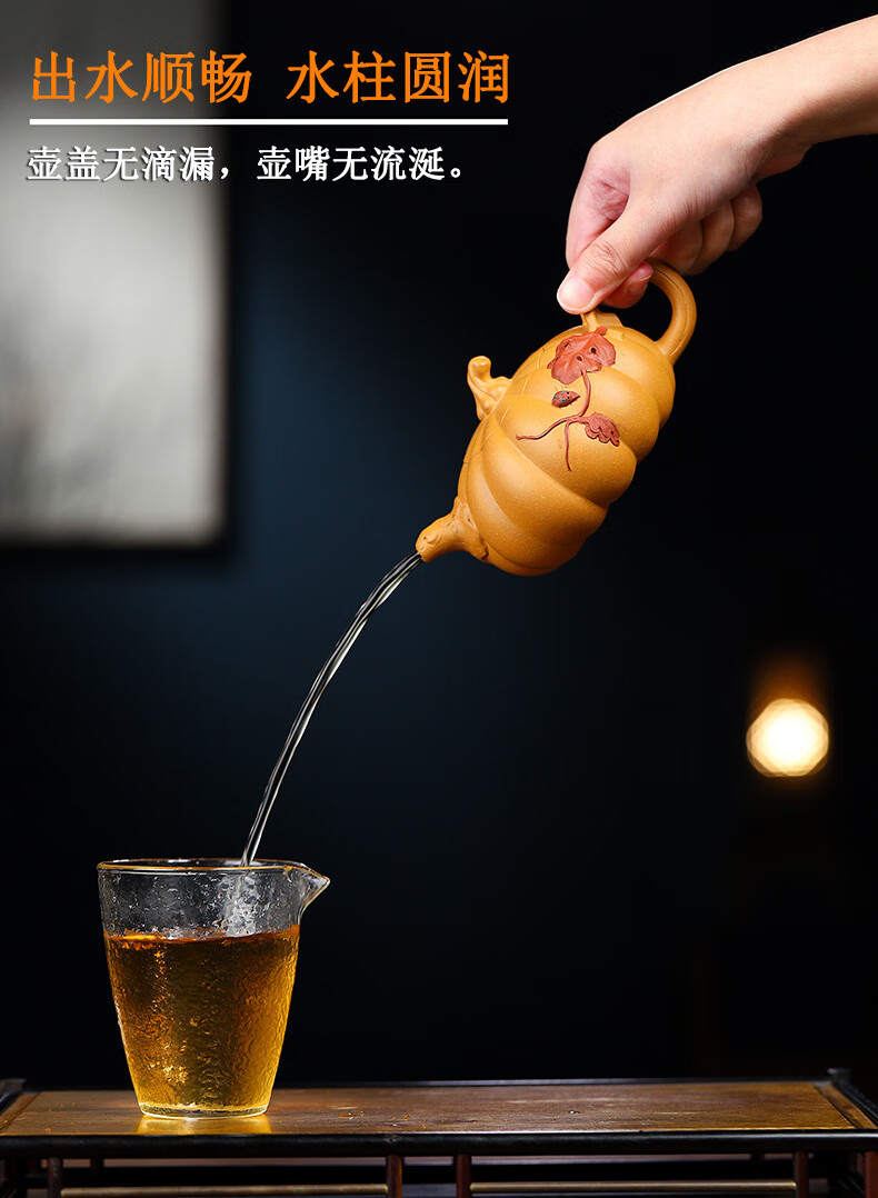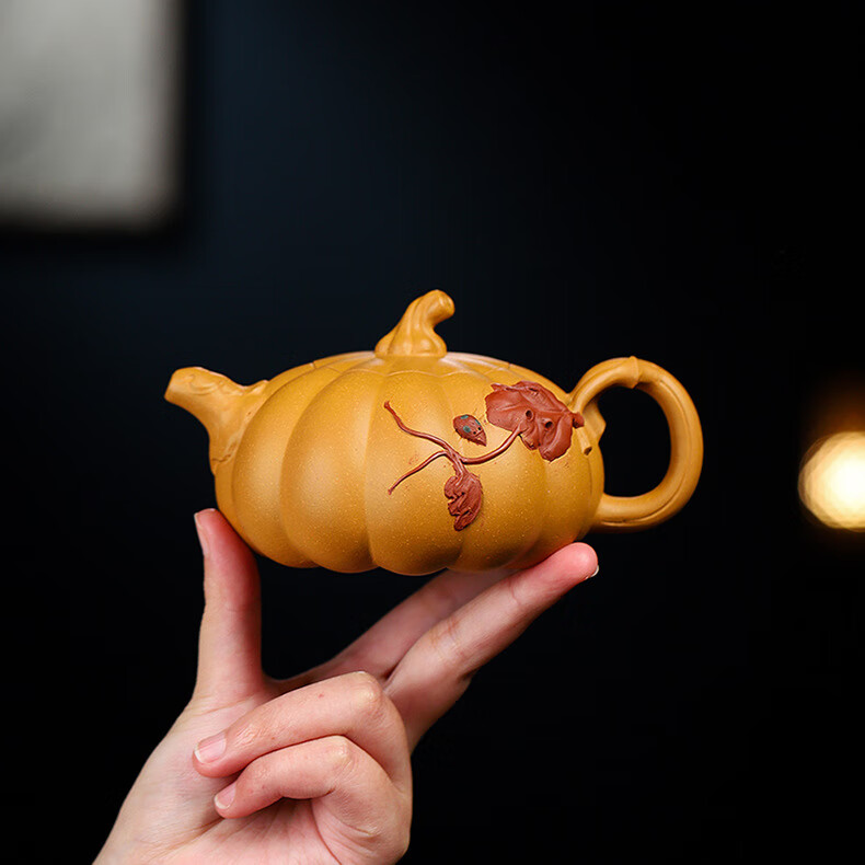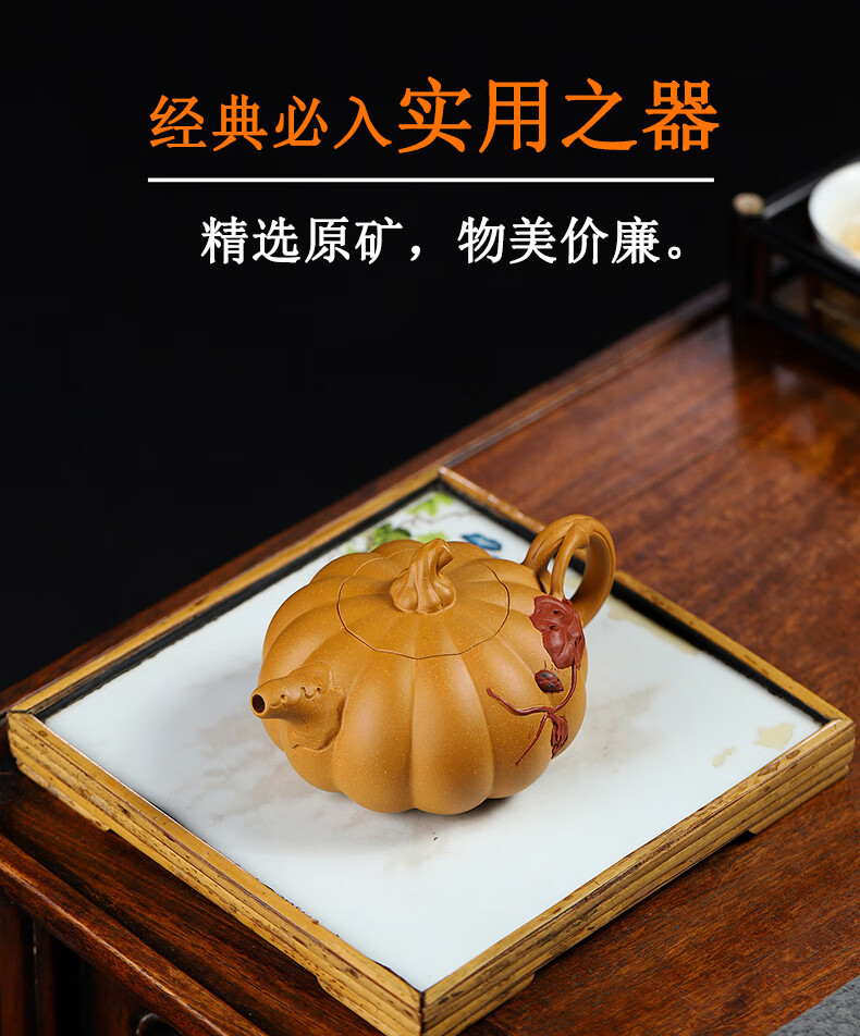 PJ工厂直发原矿黄金段泥手工南瓜壶宜兴紫砂壶茶具家用泡茶紫砂茶 壶黄金段泥