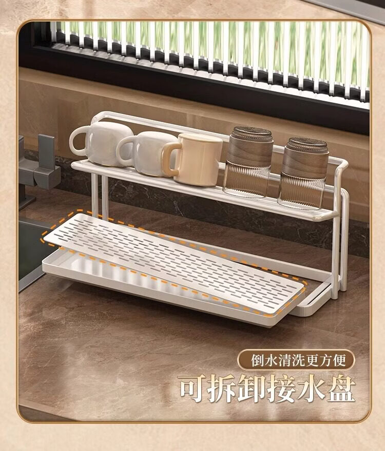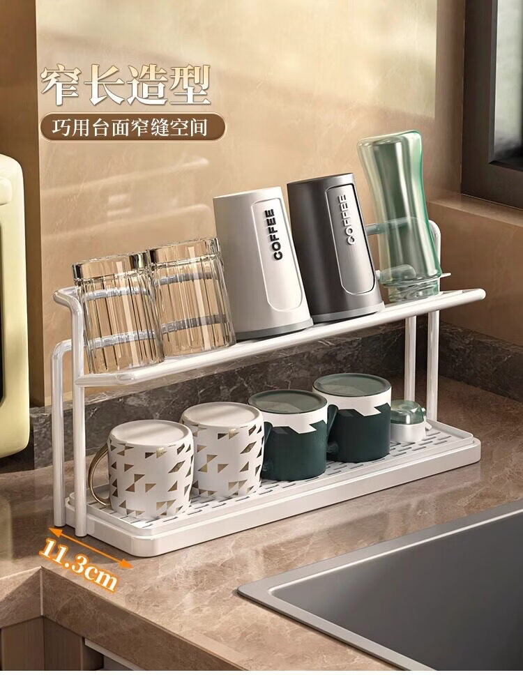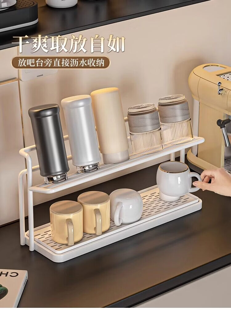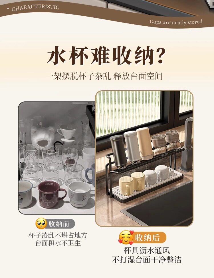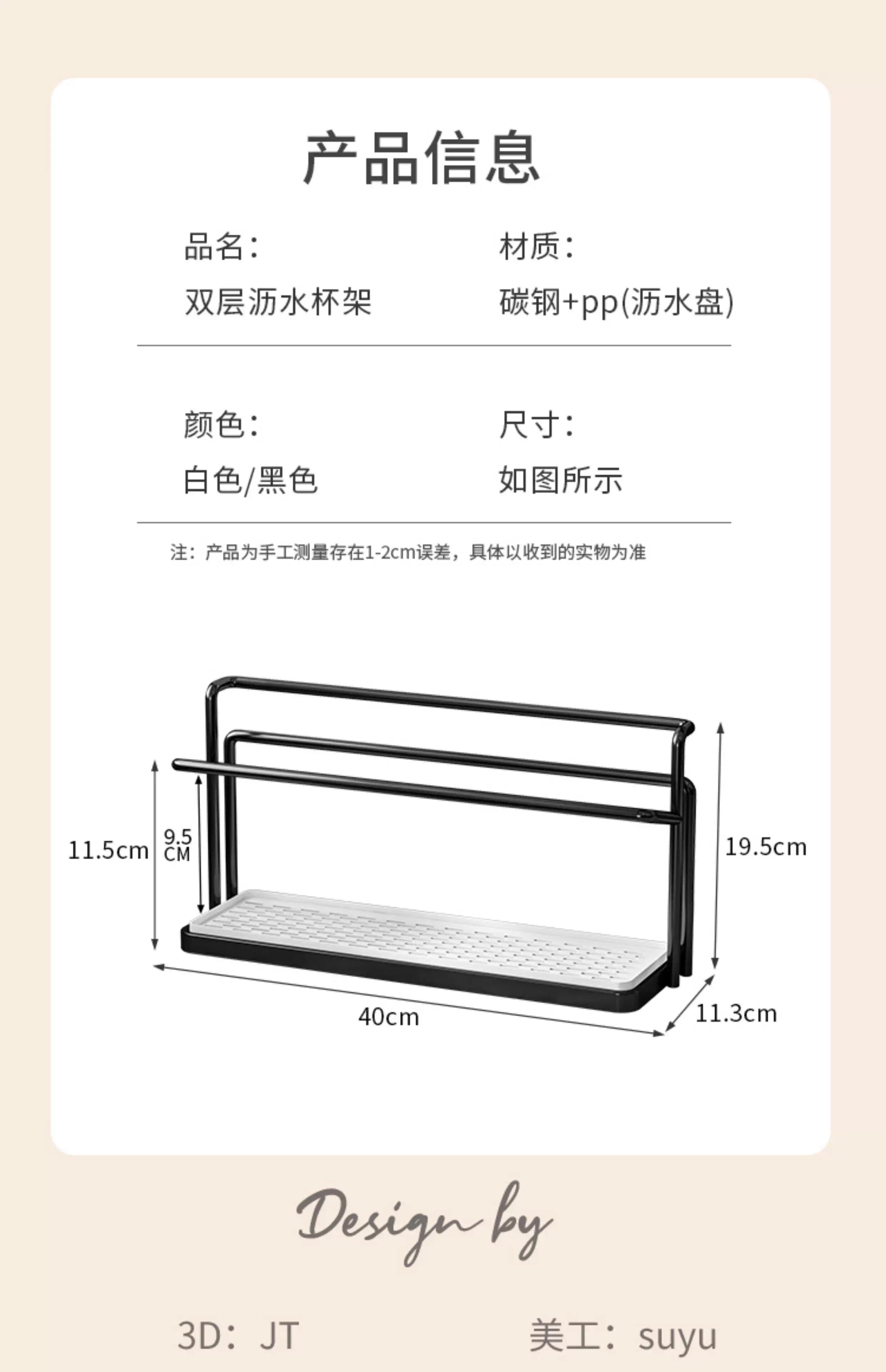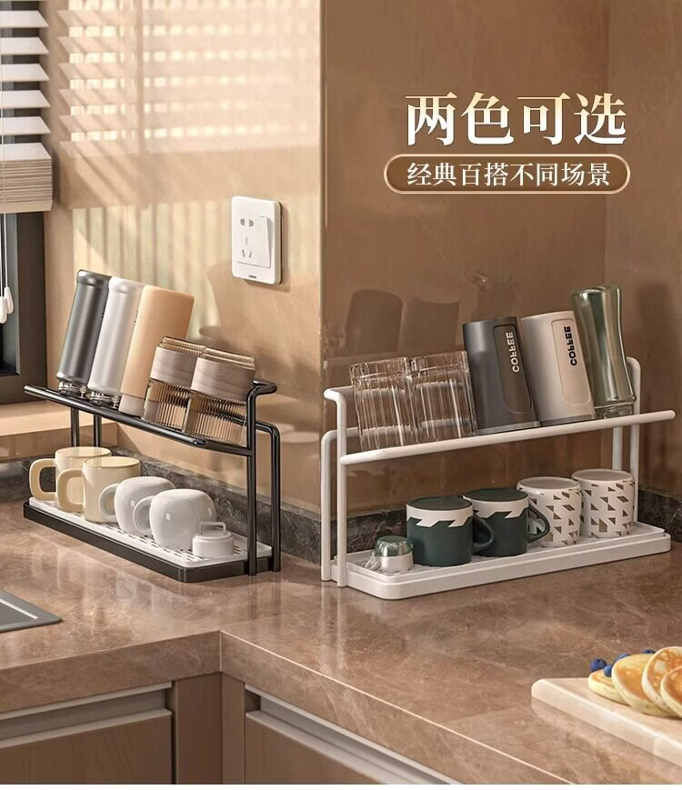 艾仕可(ASCOR)杯架双层沥水托盘架厨房餐桌台面玻璃杯子茶杯咖啡杯子收纳置物架 【黑色】双层沥水杯架