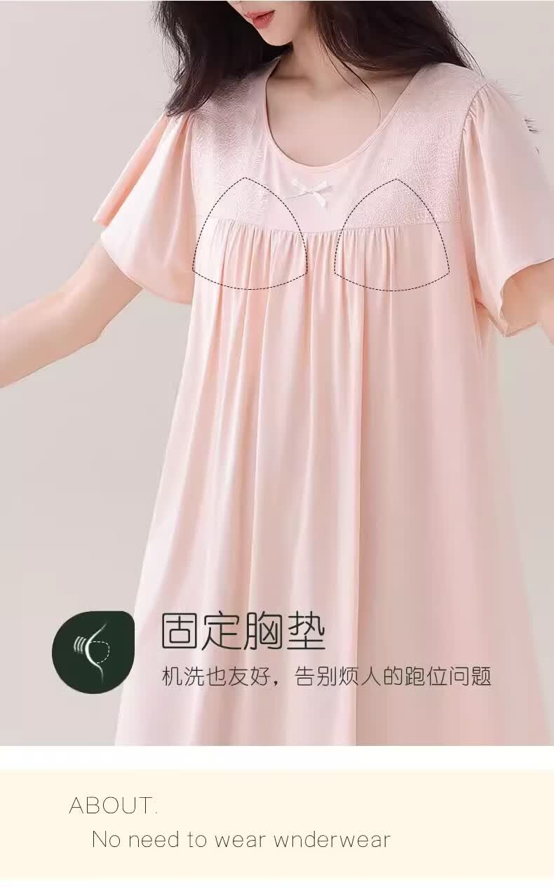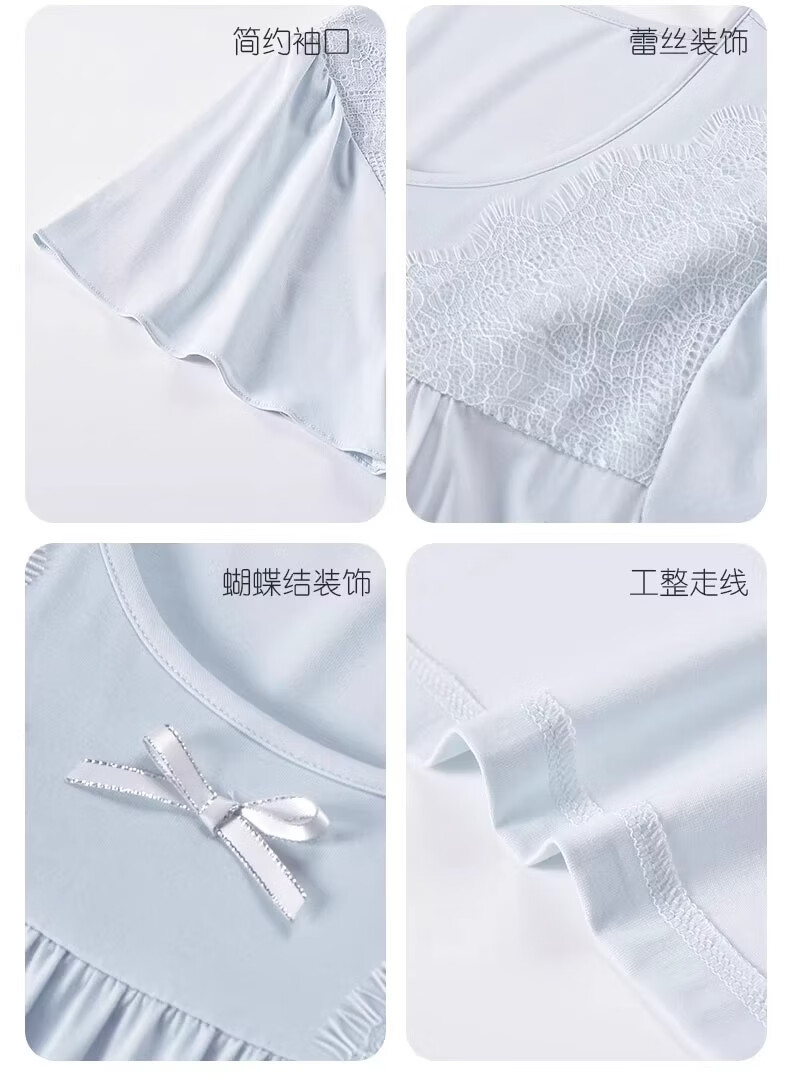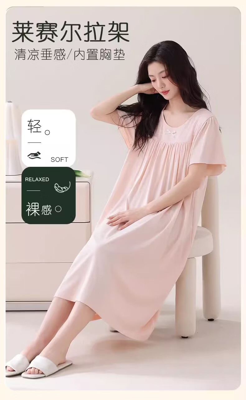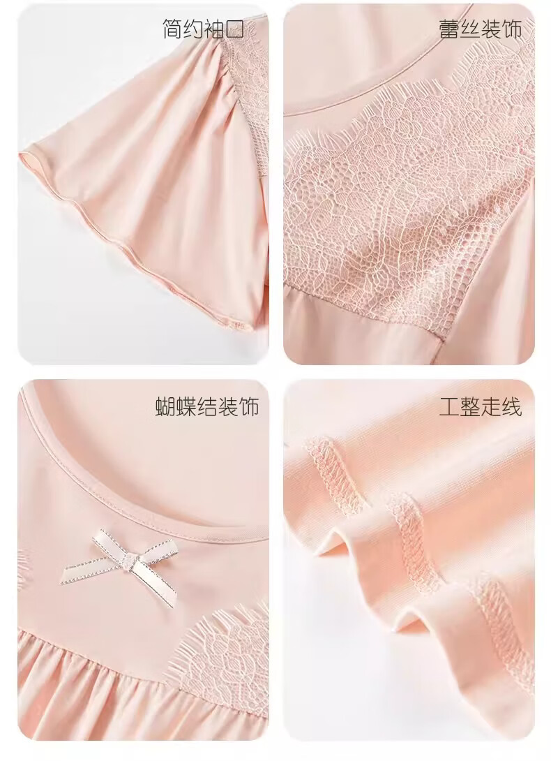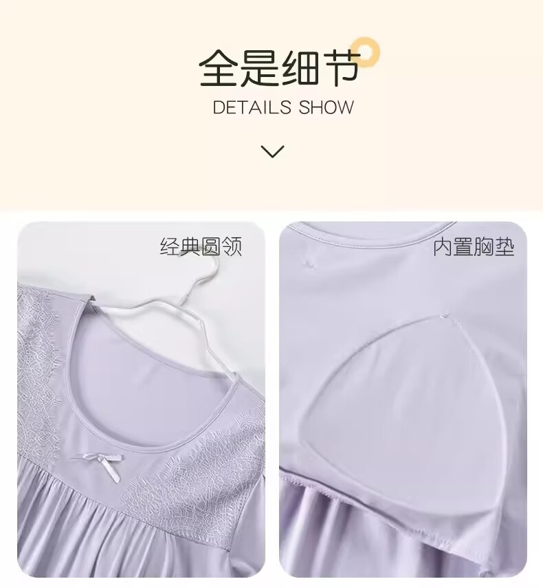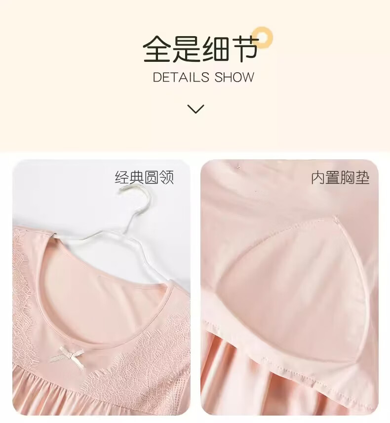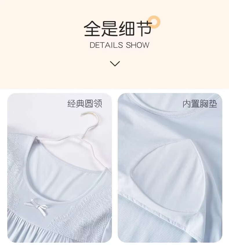 莫代尔莱赛尔睡裙女春夏季圆领蕾丝2026新款带胸垫甜美风家居服 39M26108 L (建议100-120斤)