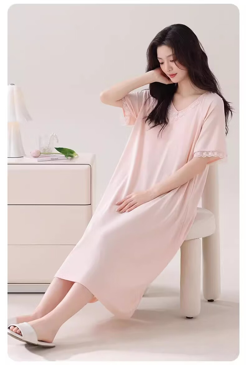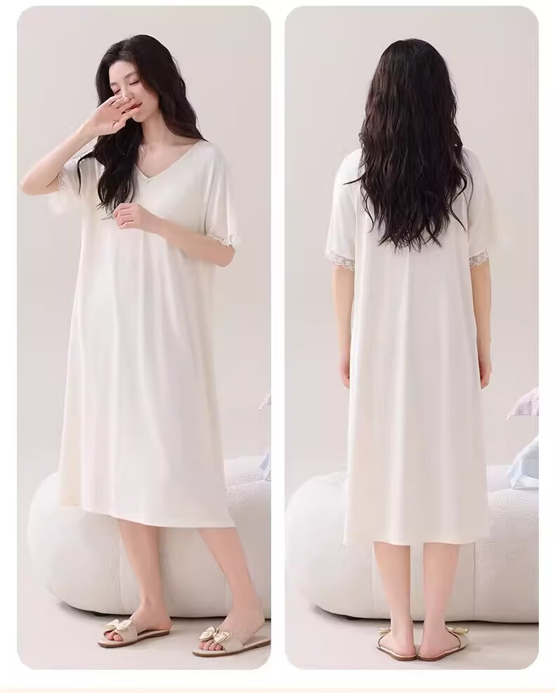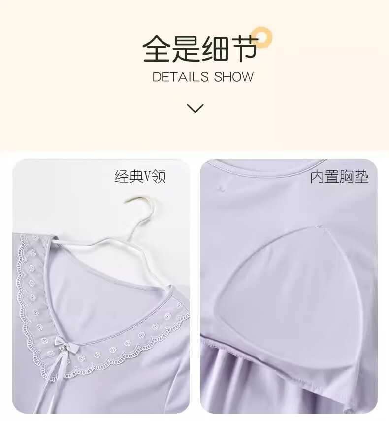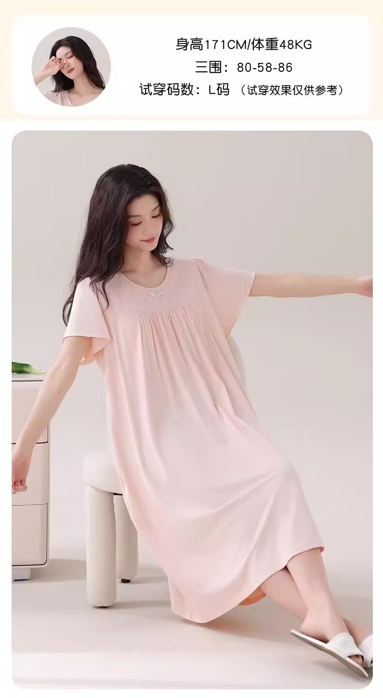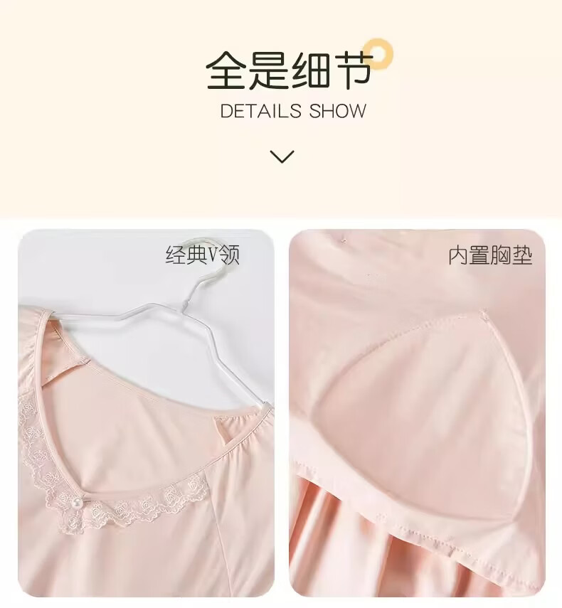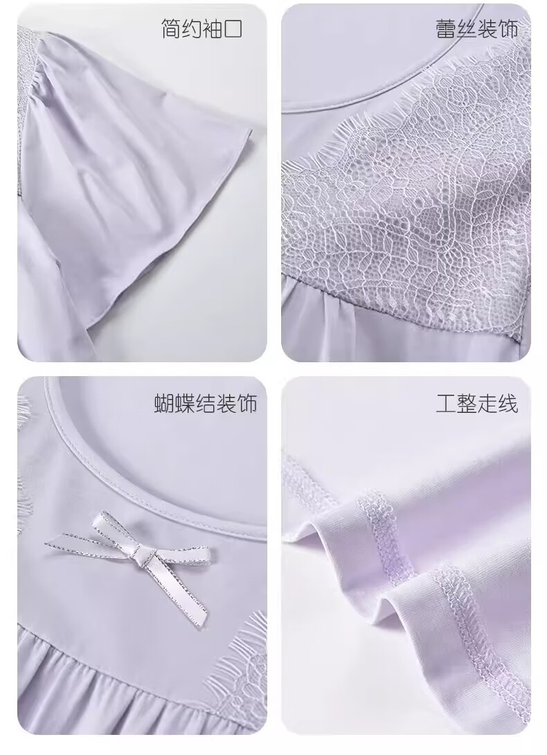 莫代尔莱赛尔睡裙女春夏季圆领蕾丝2026新款带胸垫甜美风家居服 39M26108 L (建议100-120斤)