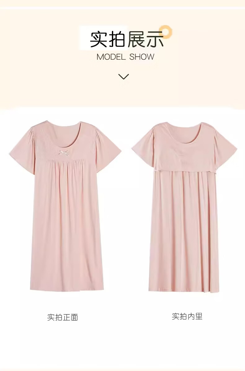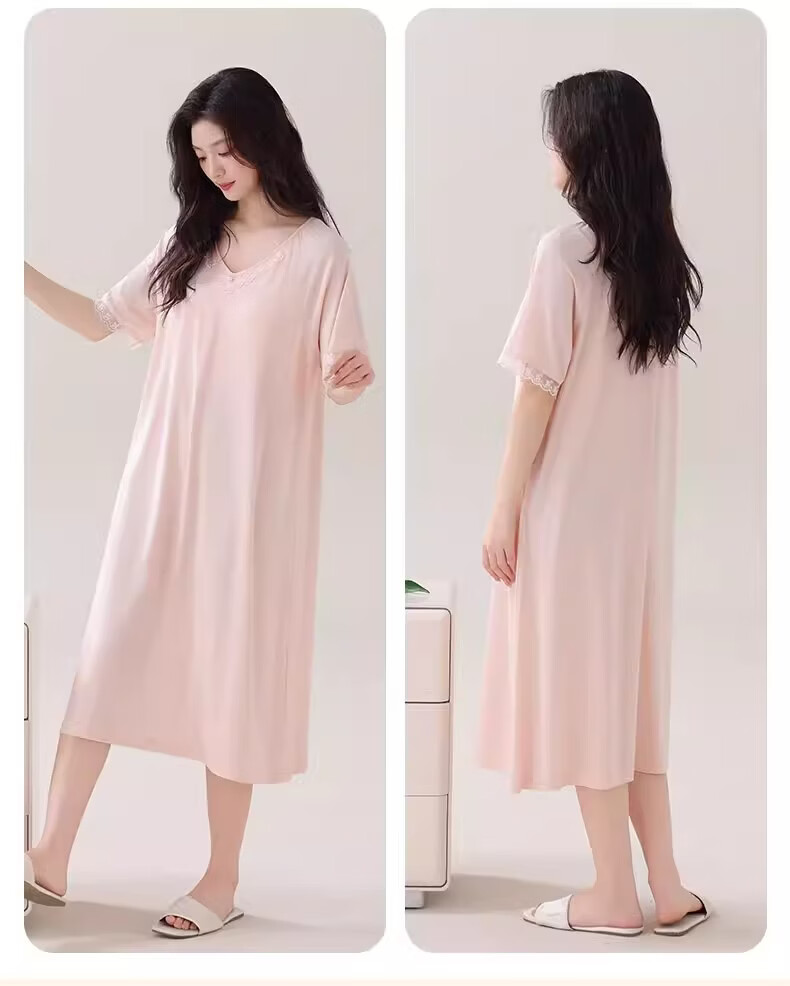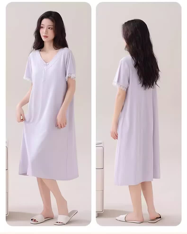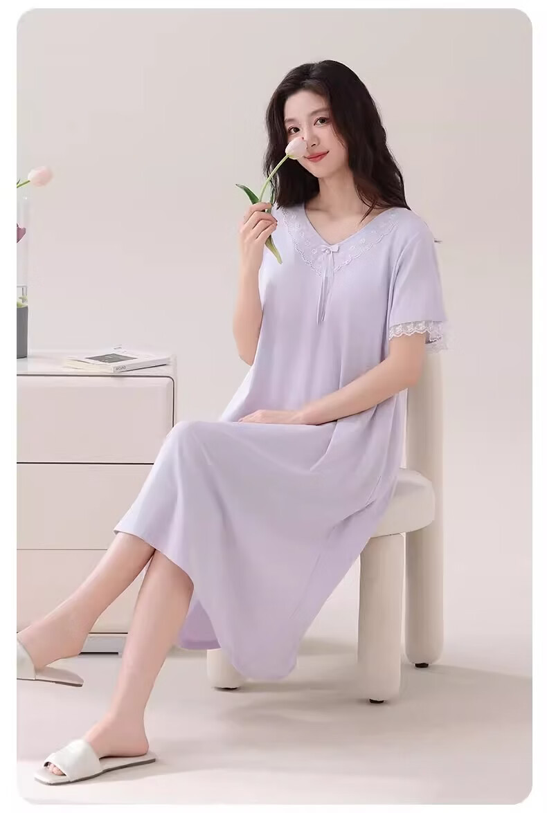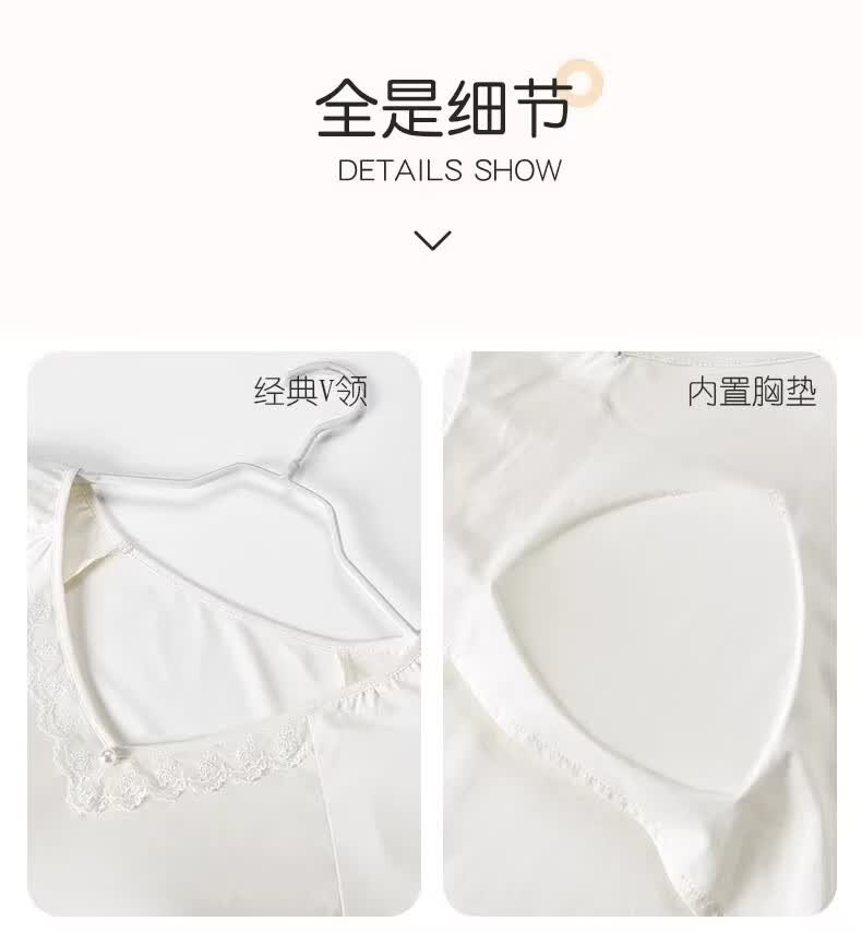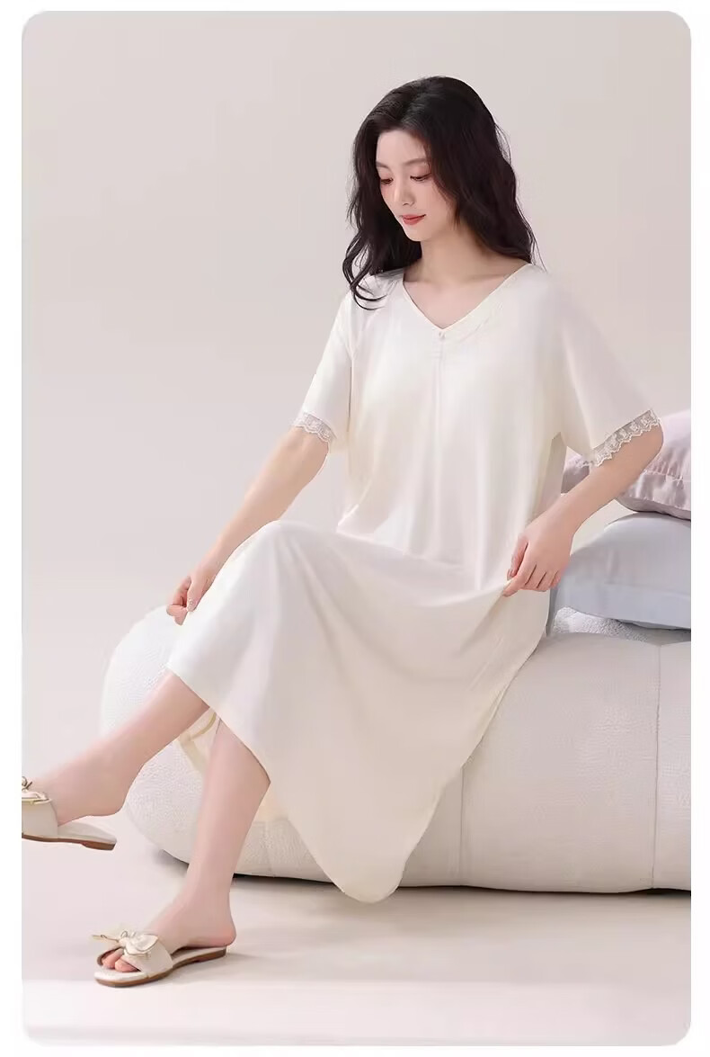 莫代尔莱赛尔睡裙女春夏季圆领蕾丝2026新款带胸垫甜美风家居服 39M26108 L (建议100-120斤)