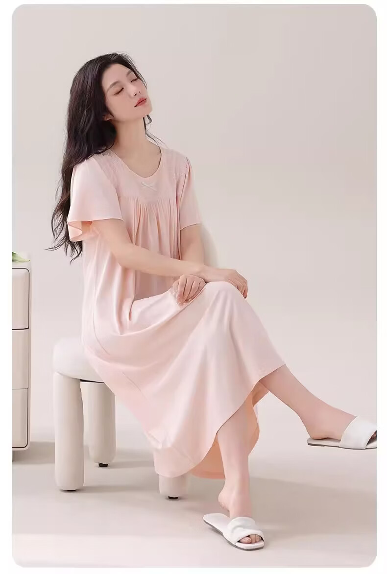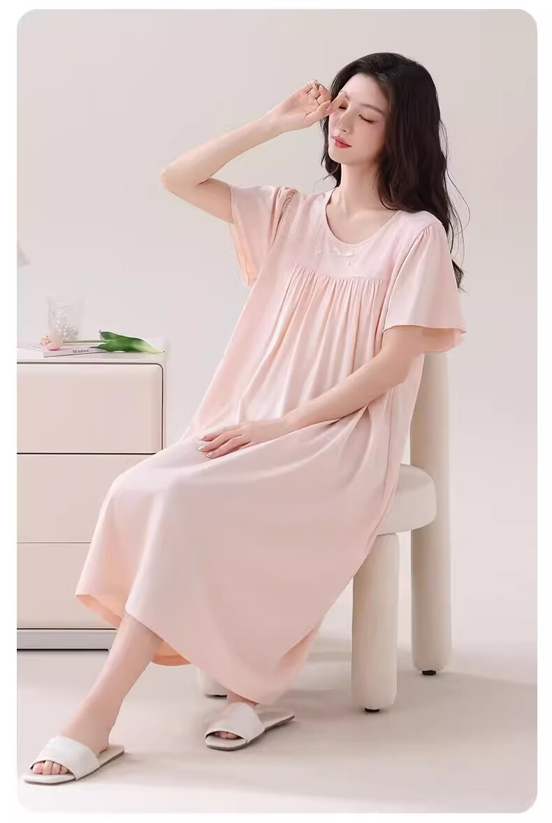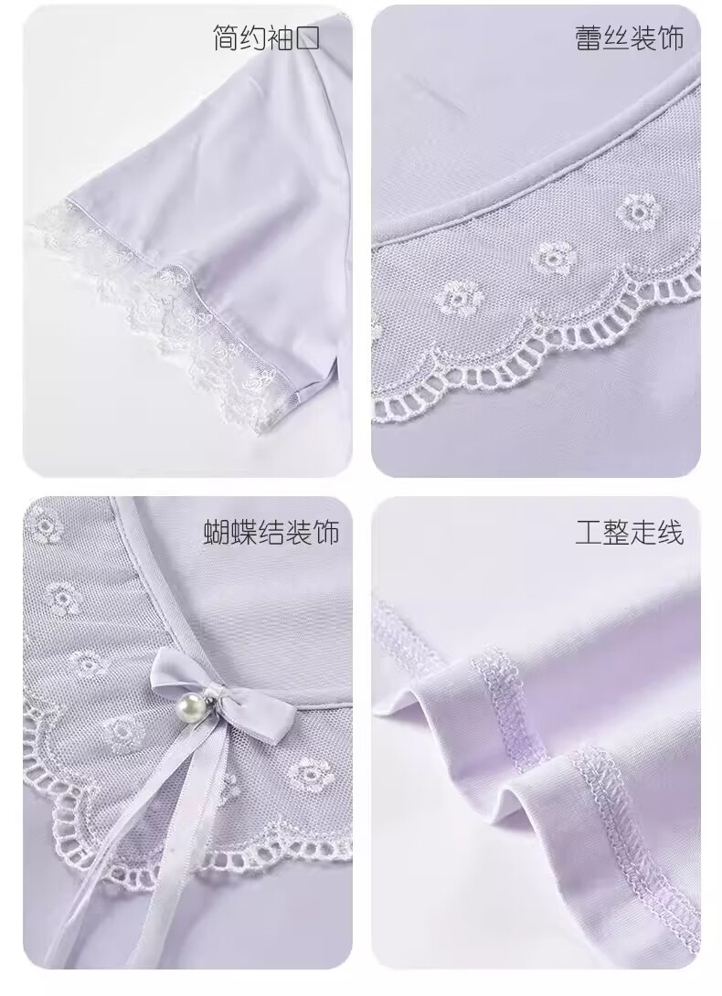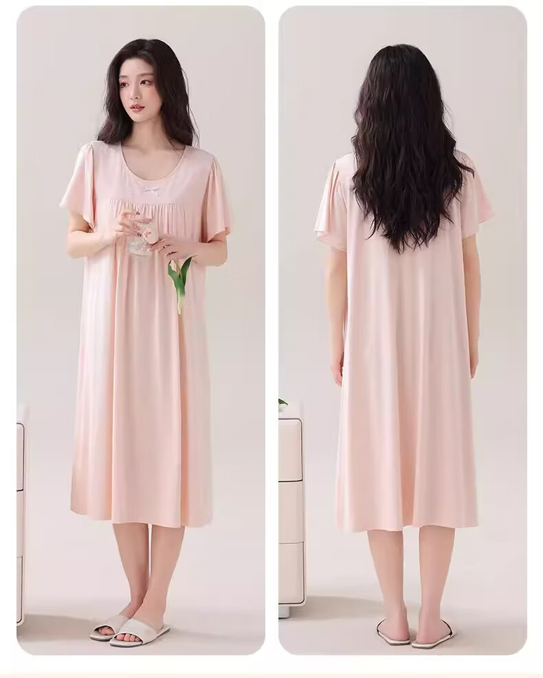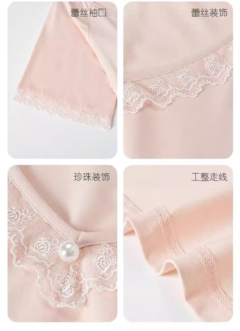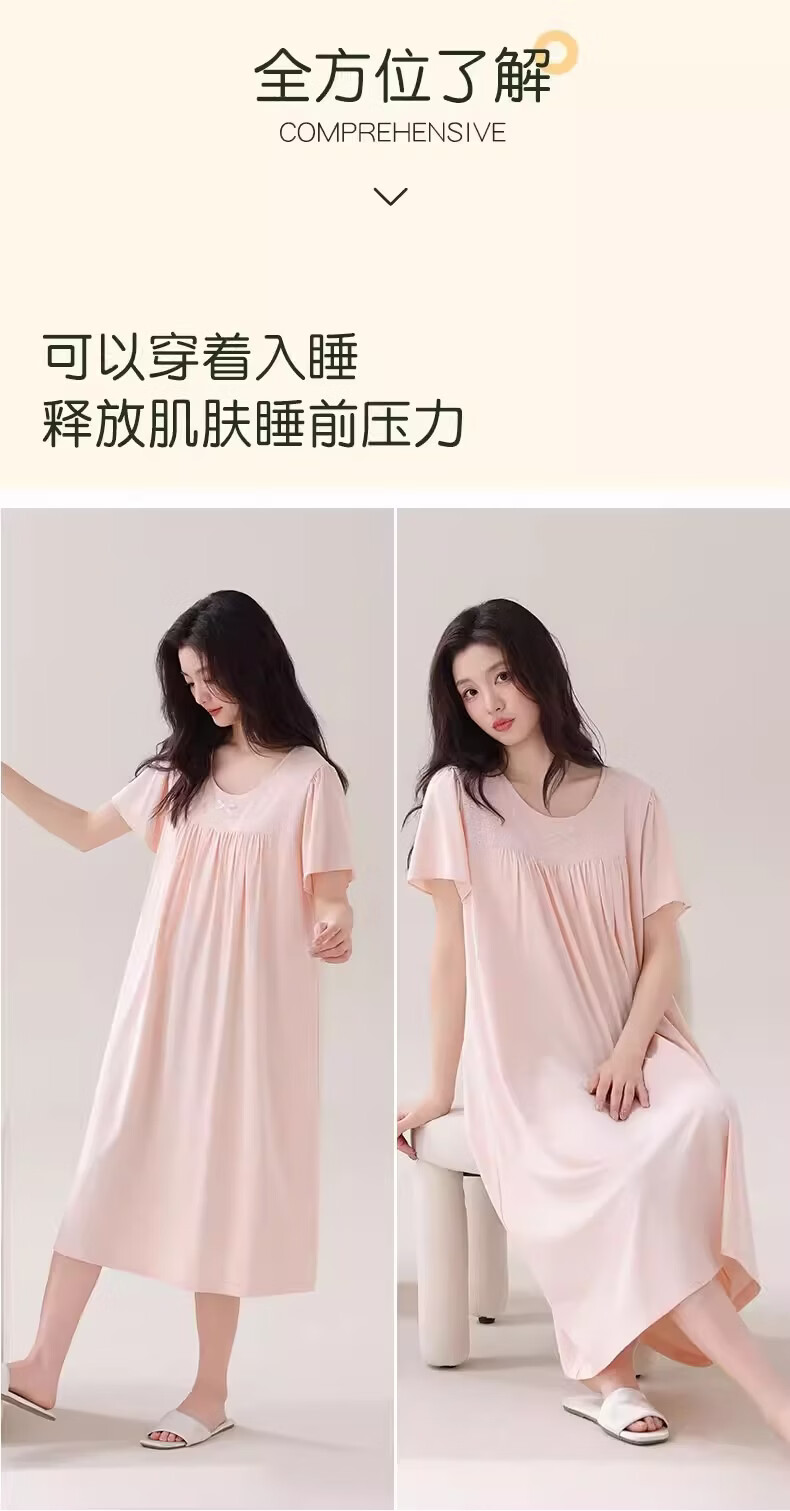 莫代尔莱赛尔睡裙女春夏季圆领蕾丝2026新款带胸垫甜美风家居服 39M26108 L (建议100-120斤)
