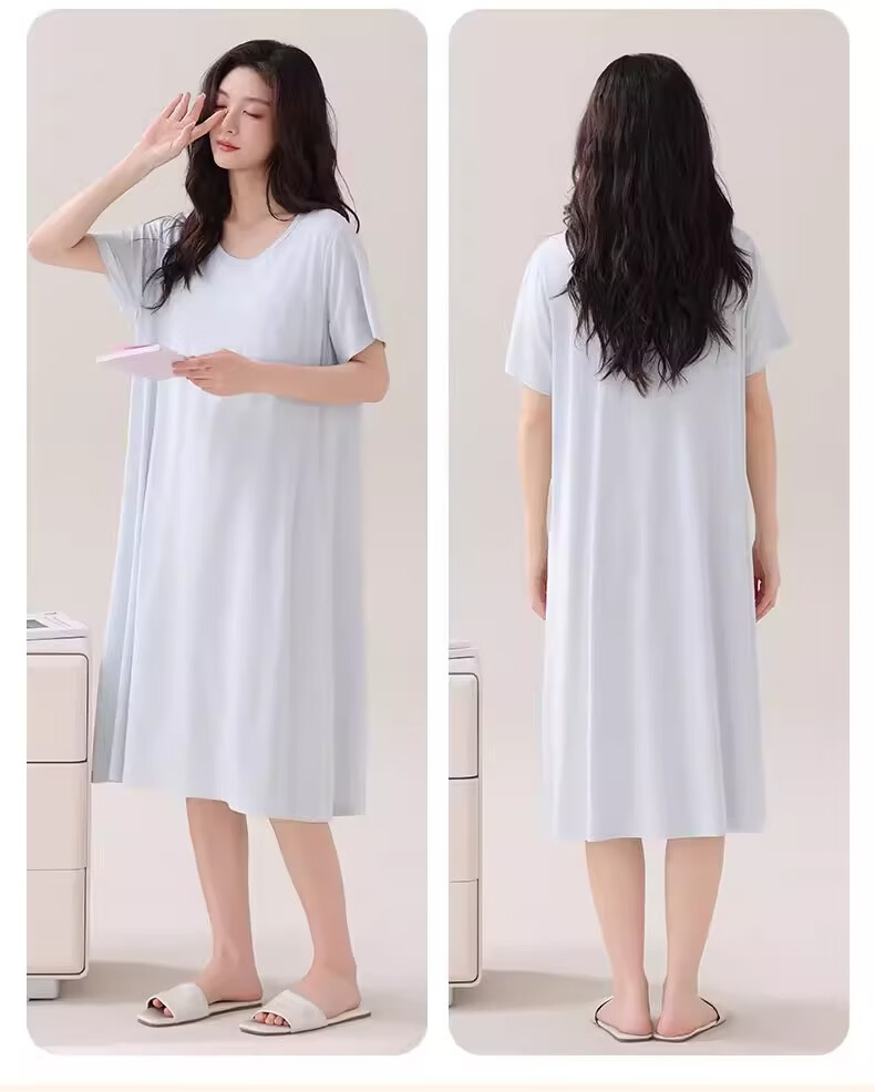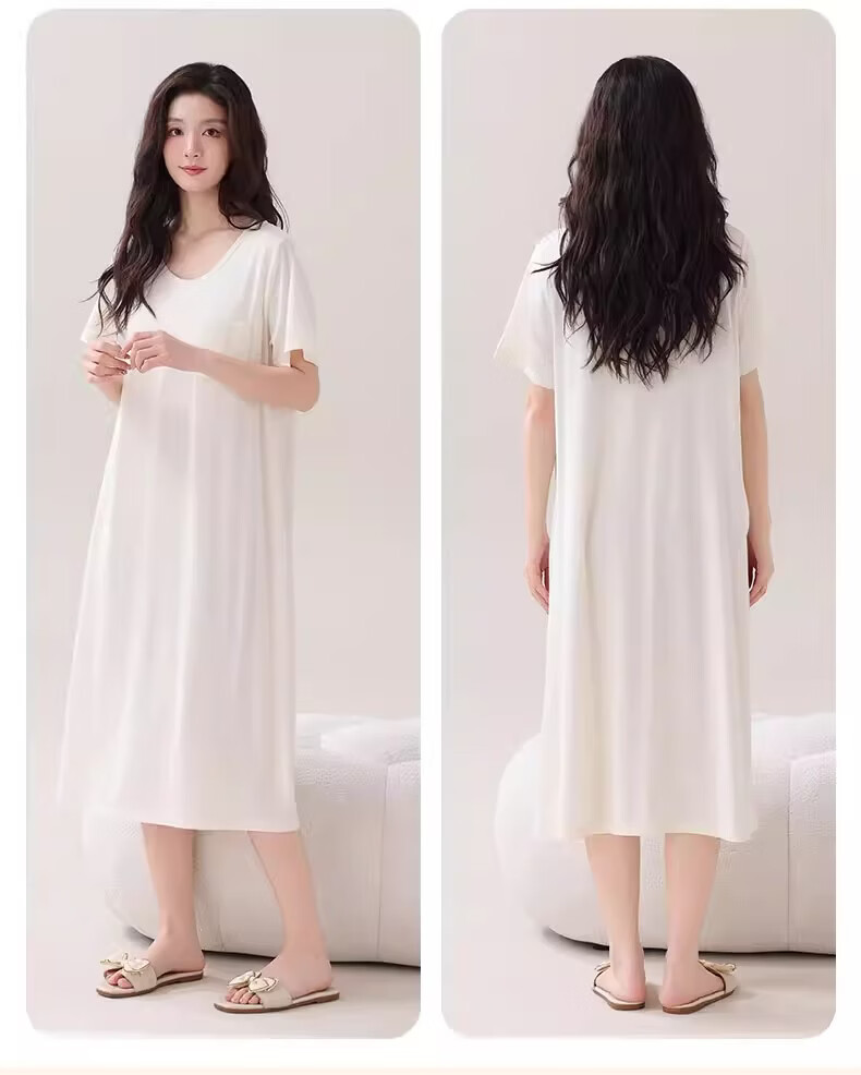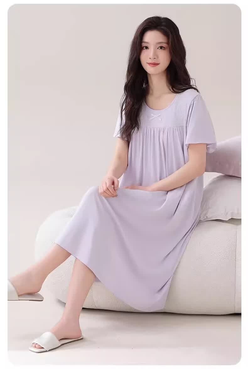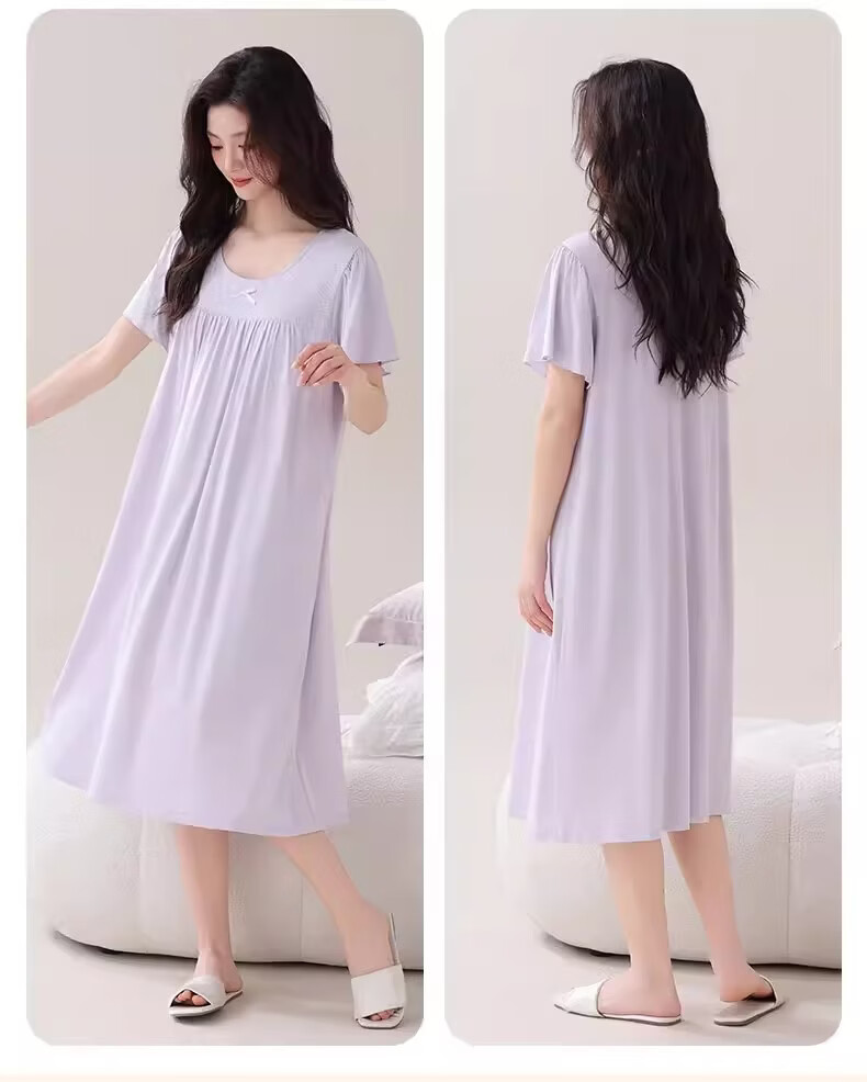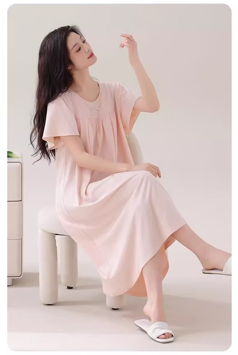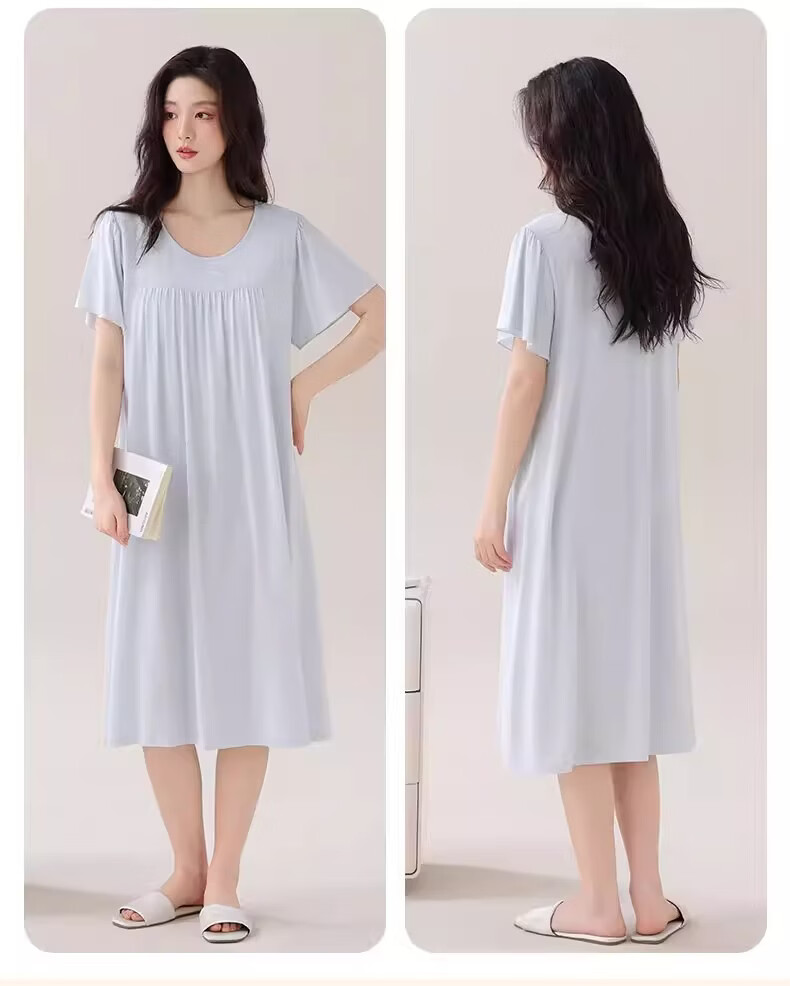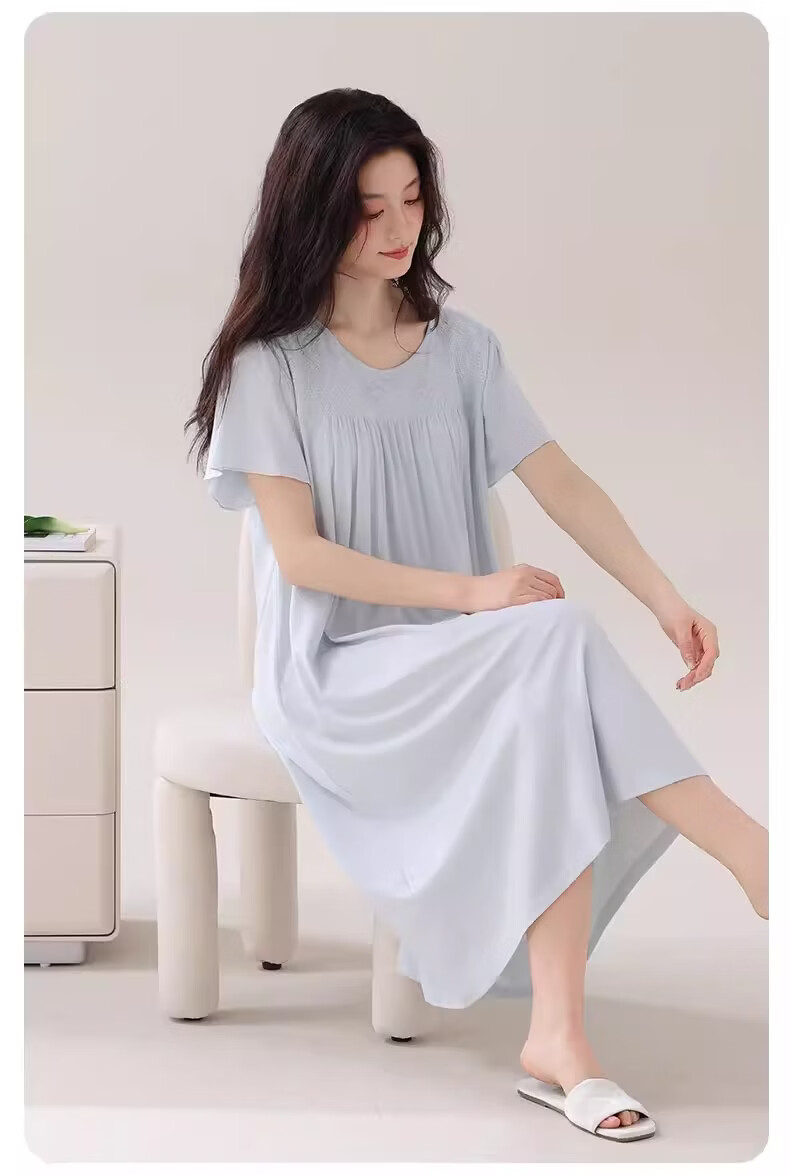 莫代尔莱赛尔睡裙女春夏季圆领蕾丝2026新款带胸垫甜美风家居服 39M26108 L (建议100-120斤)