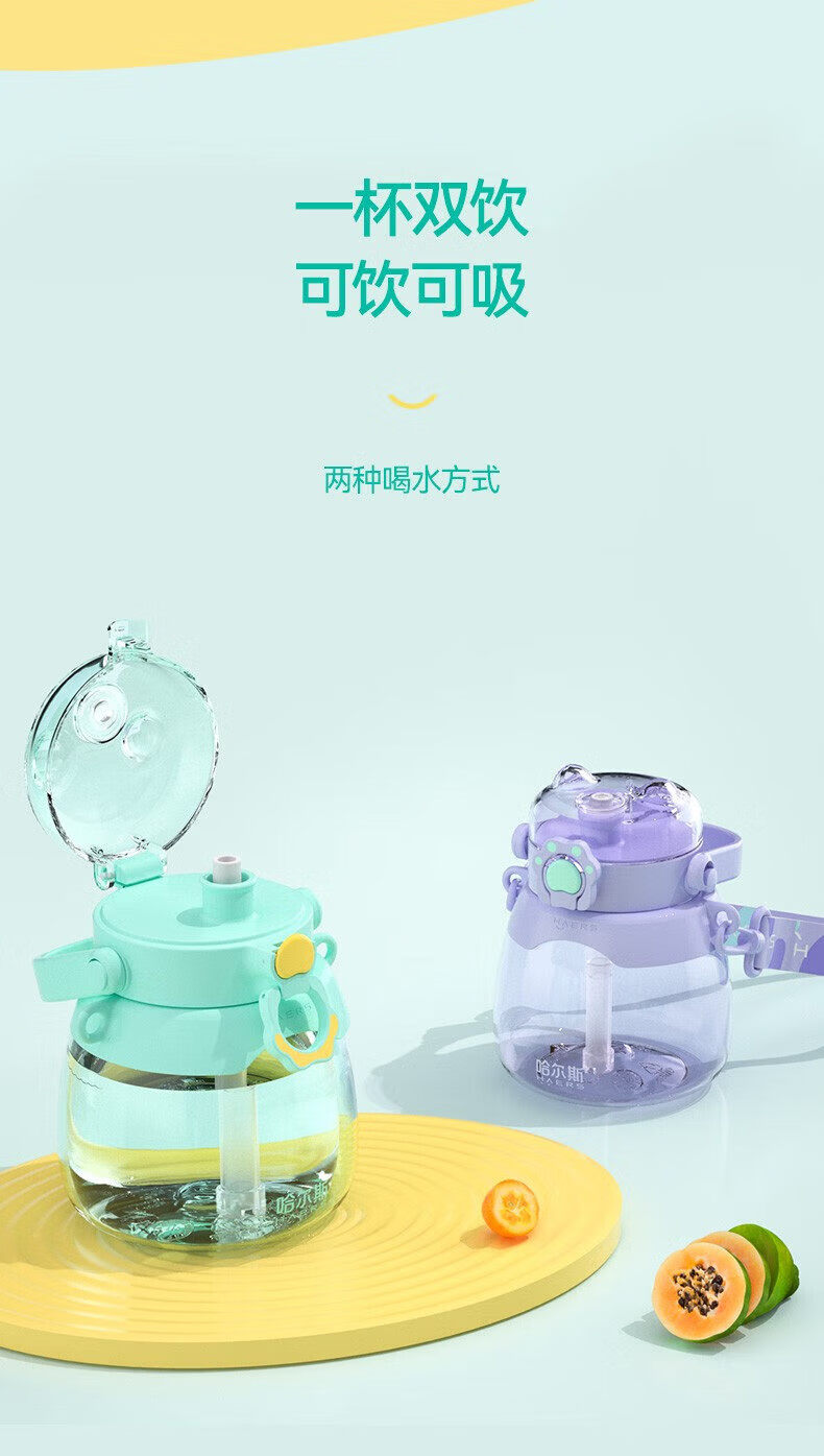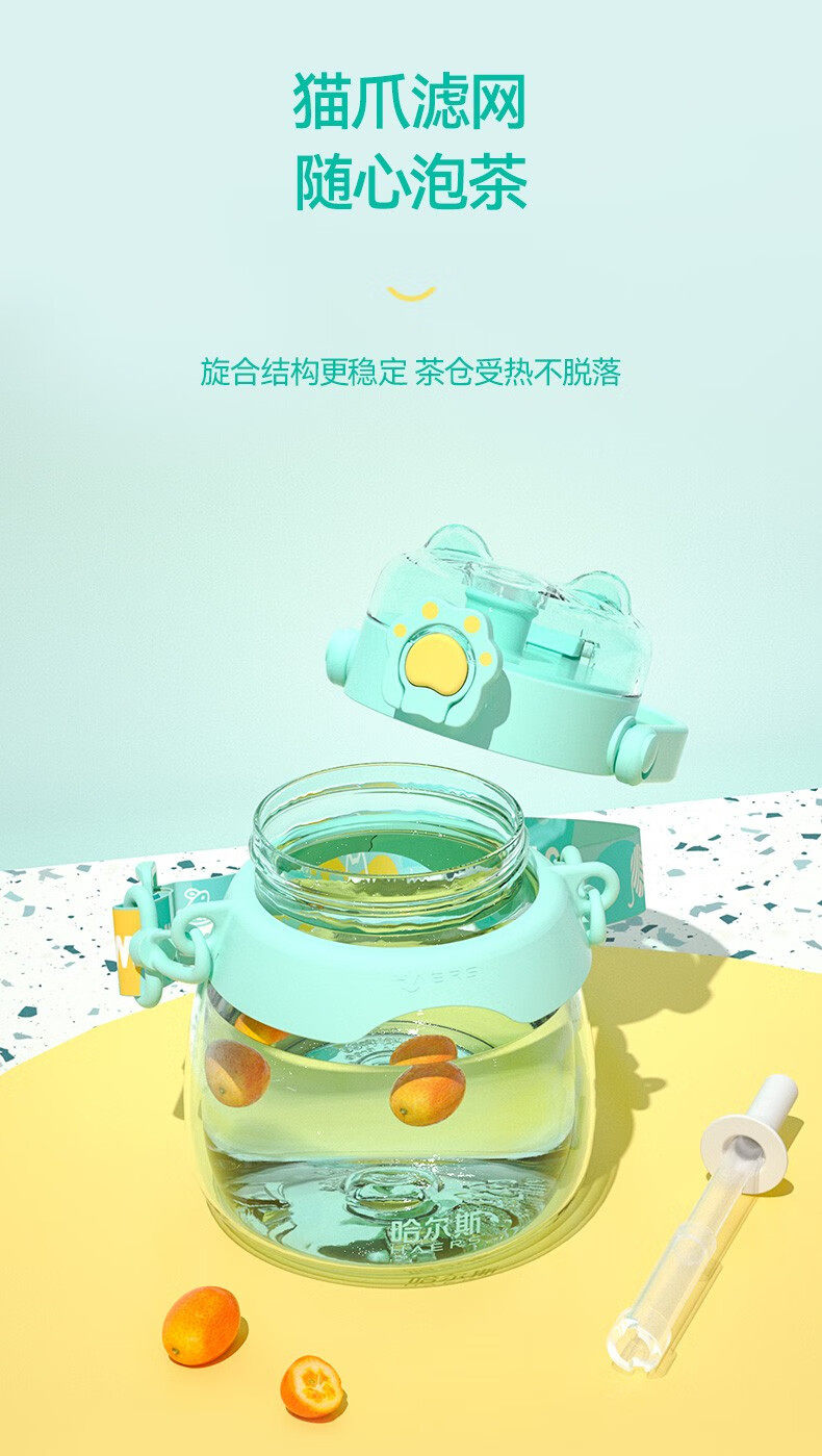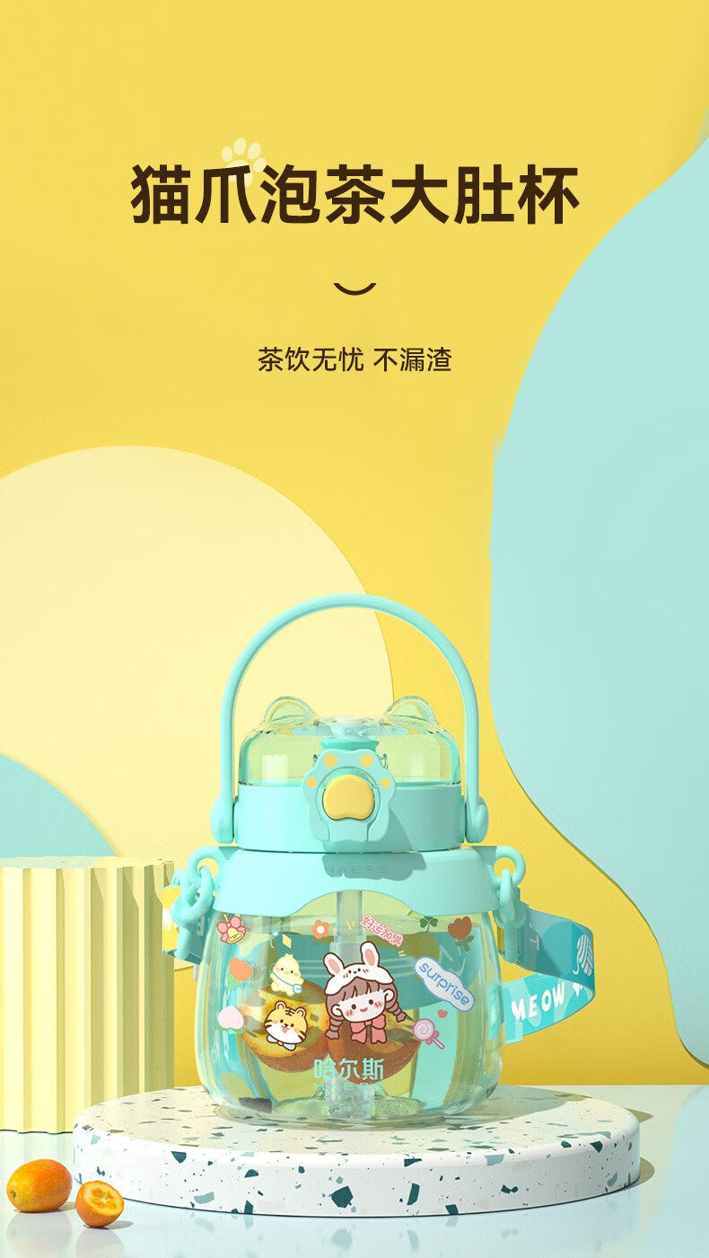 哈尔斯(HAERS)大肚杯女生容量吸管儿童太空耐高温tritan塑料水杯子 水绿950ML【进口tritan材质】
