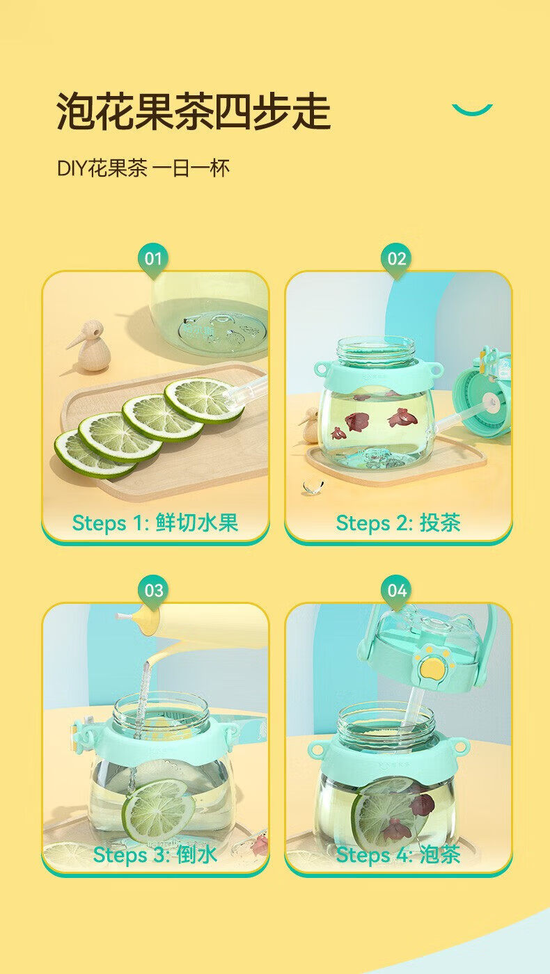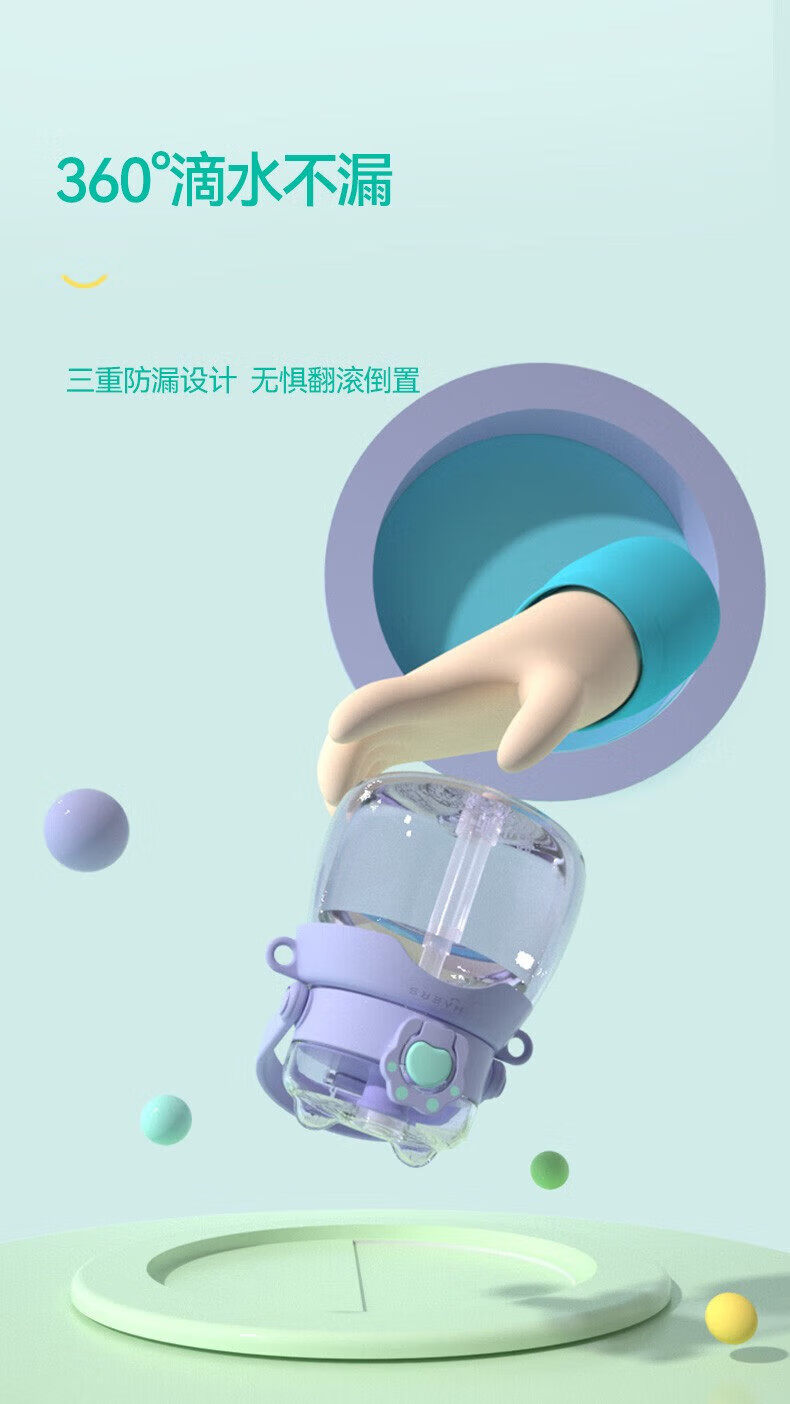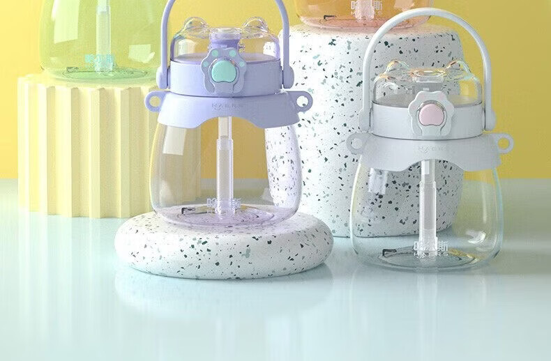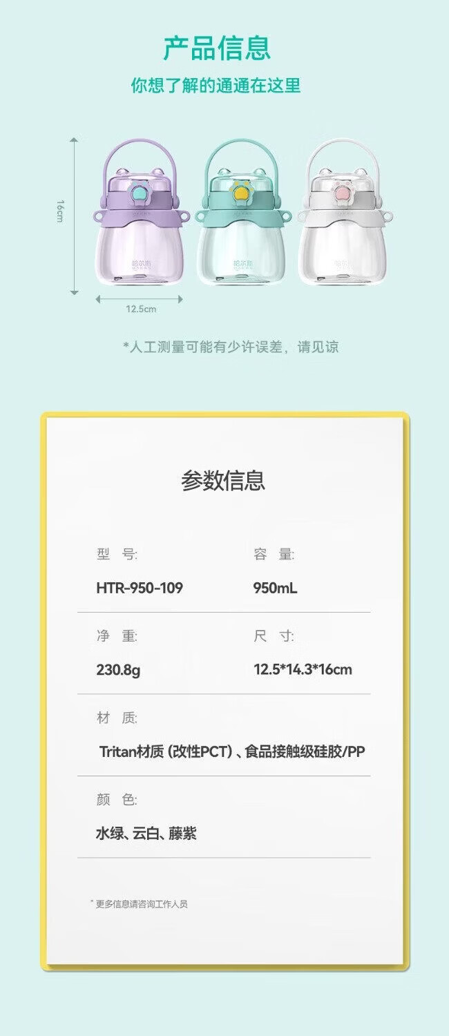 哈尔斯(HAERS)大肚杯女生容量吸管儿童太空耐高温tritan塑料水杯子 水绿950ML【进口tritan材质】