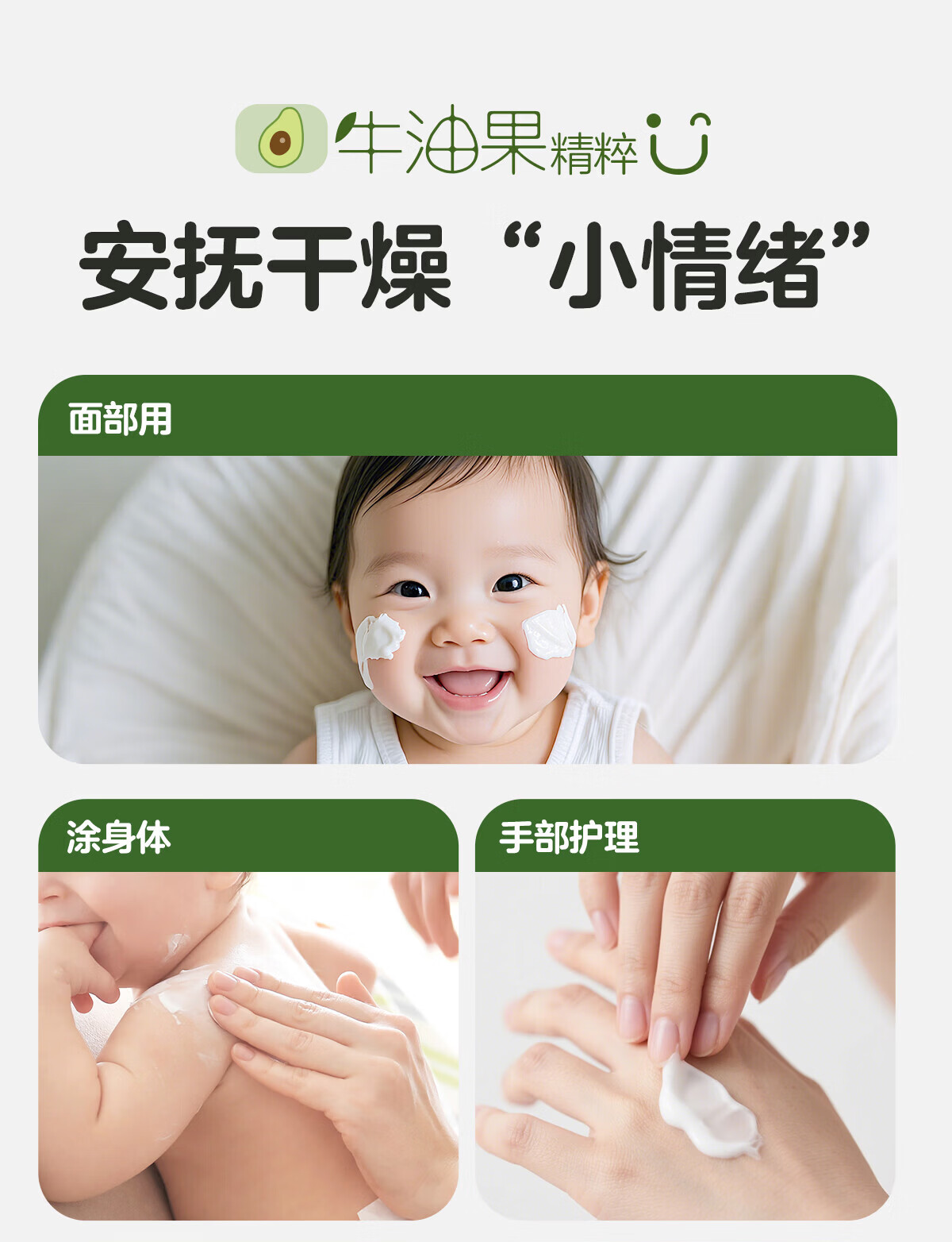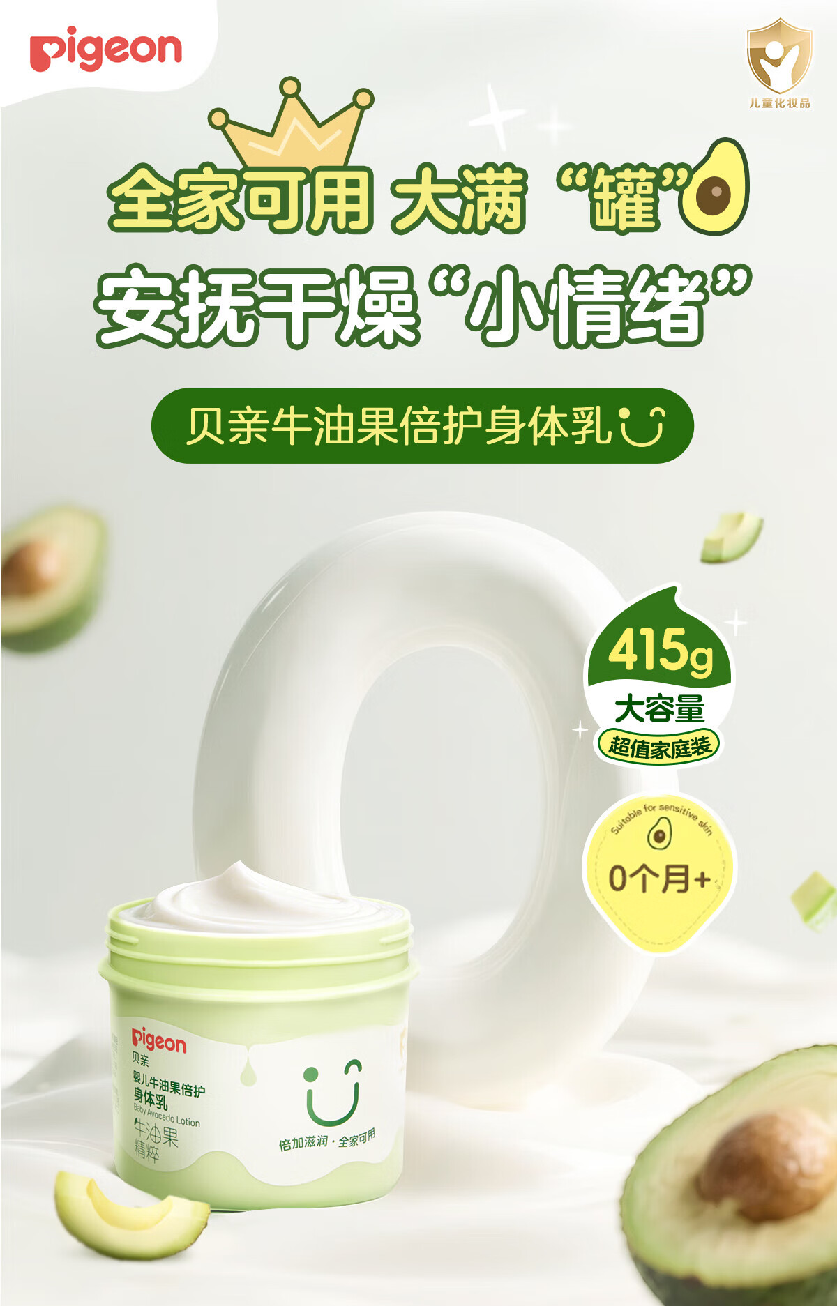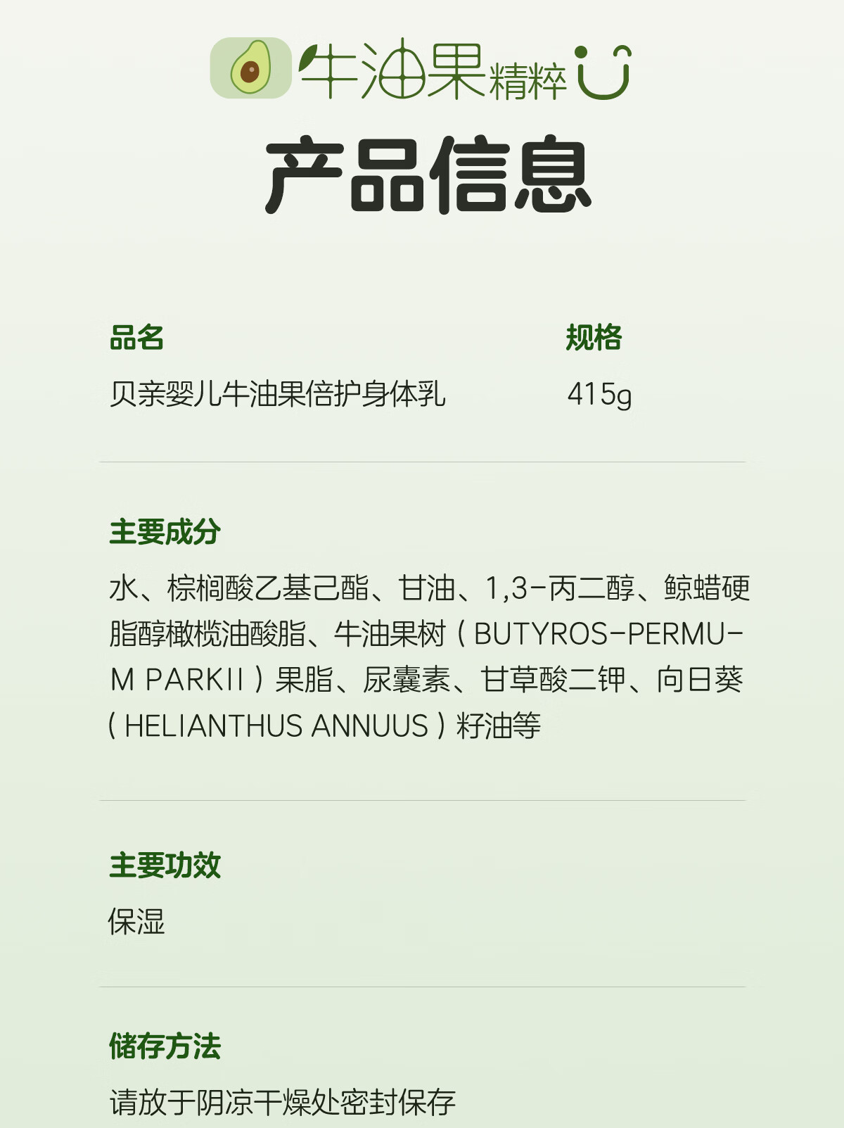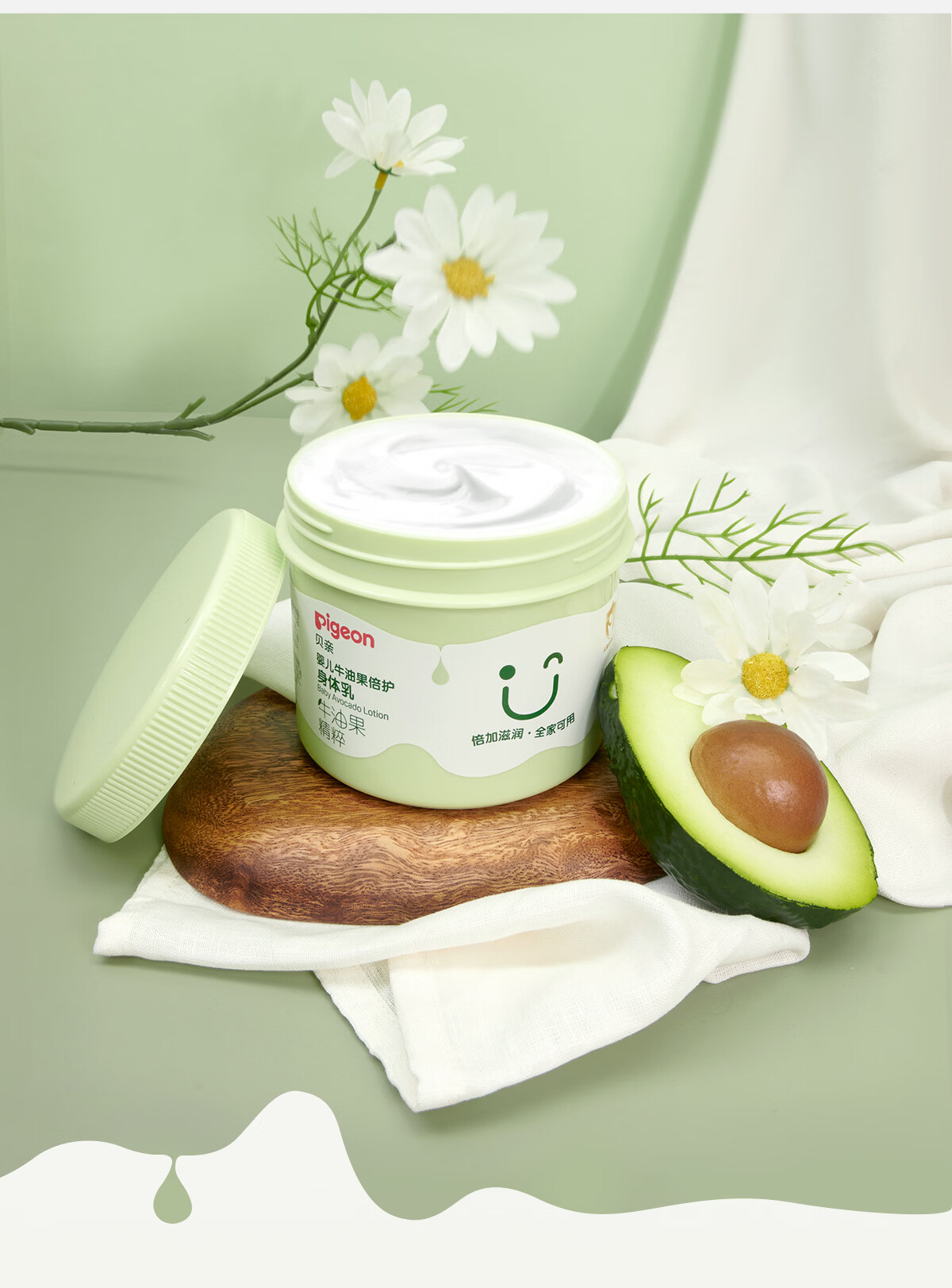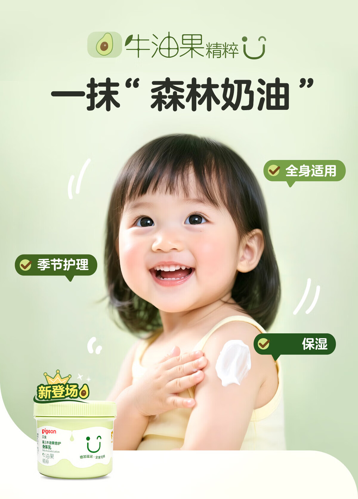 贝亲大绿罐牛油果保湿霜 婴儿润肤乳 儿童润肤露 宝宝润肤霜 大容量 50g 1瓶 润肤霜