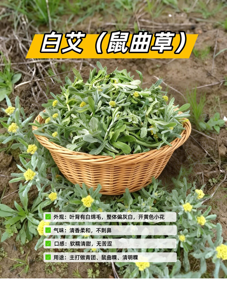 炎之梦®湖南鼠曲草清明菜鼠耳草黄花白艾田艾草糍粑青团原料新鲜现摘 白艾(鼠曲草) 500g