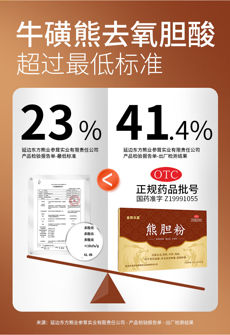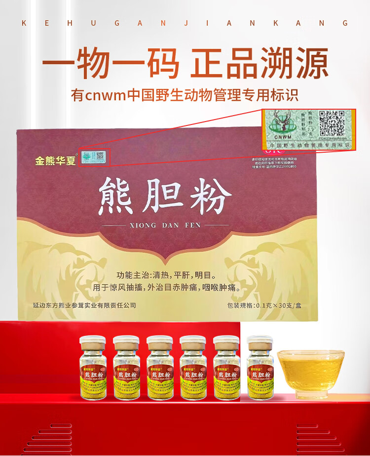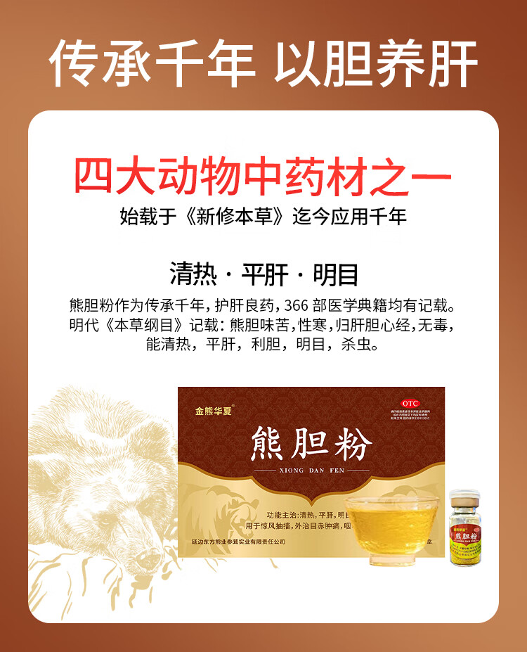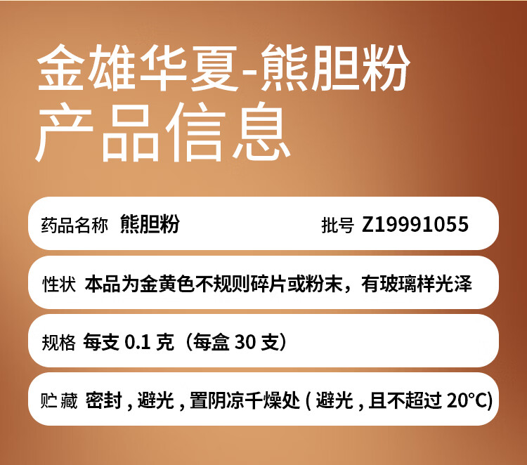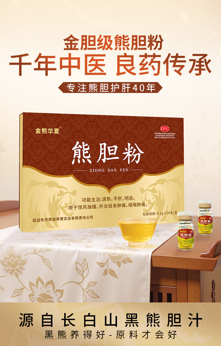 [金熊华夏]熊胆粉 0.1g*30支 3盒装 礼盒装金胆粉清肝明目养肝护胆咽喉肿痛口干口苦口臭吉林延边道地原料厂家直售正品保障 健康送礼好物
