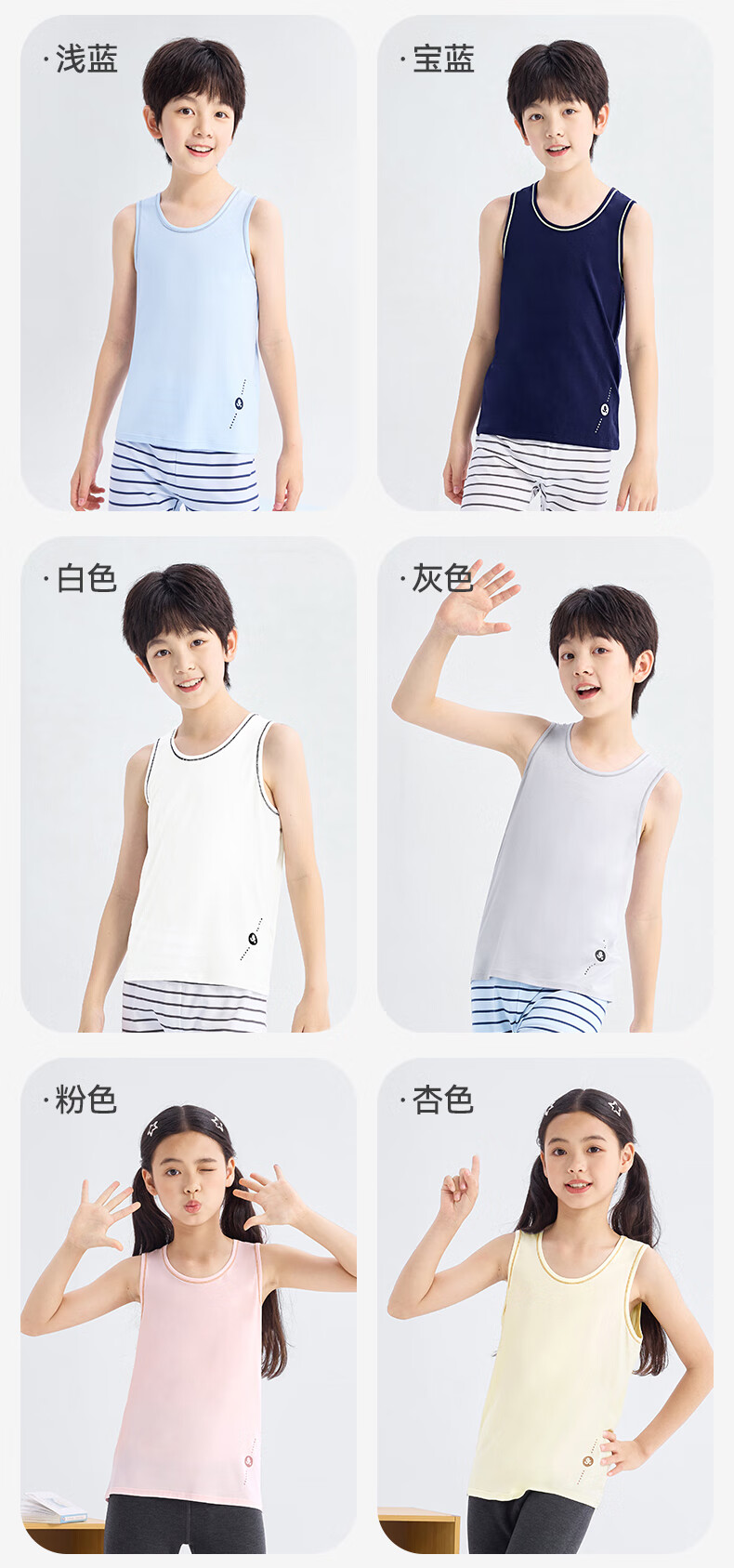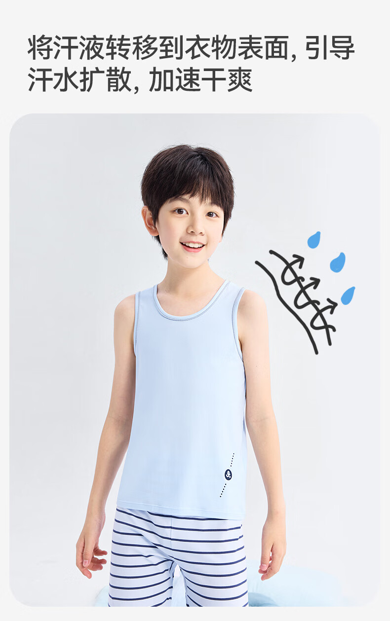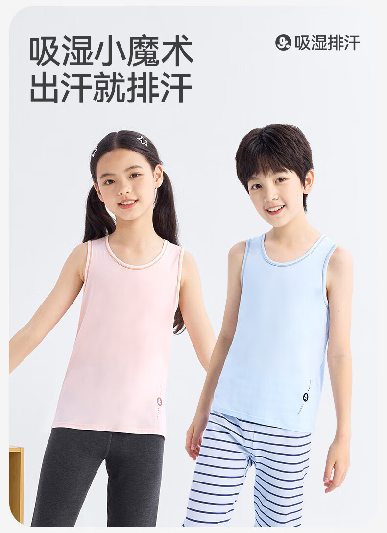久岁伴【秒秒吸】儿童排汗背心男女童春季打底上衣大童A类薄款校服内穿 白色 150 /身高140-152体重75-90斤