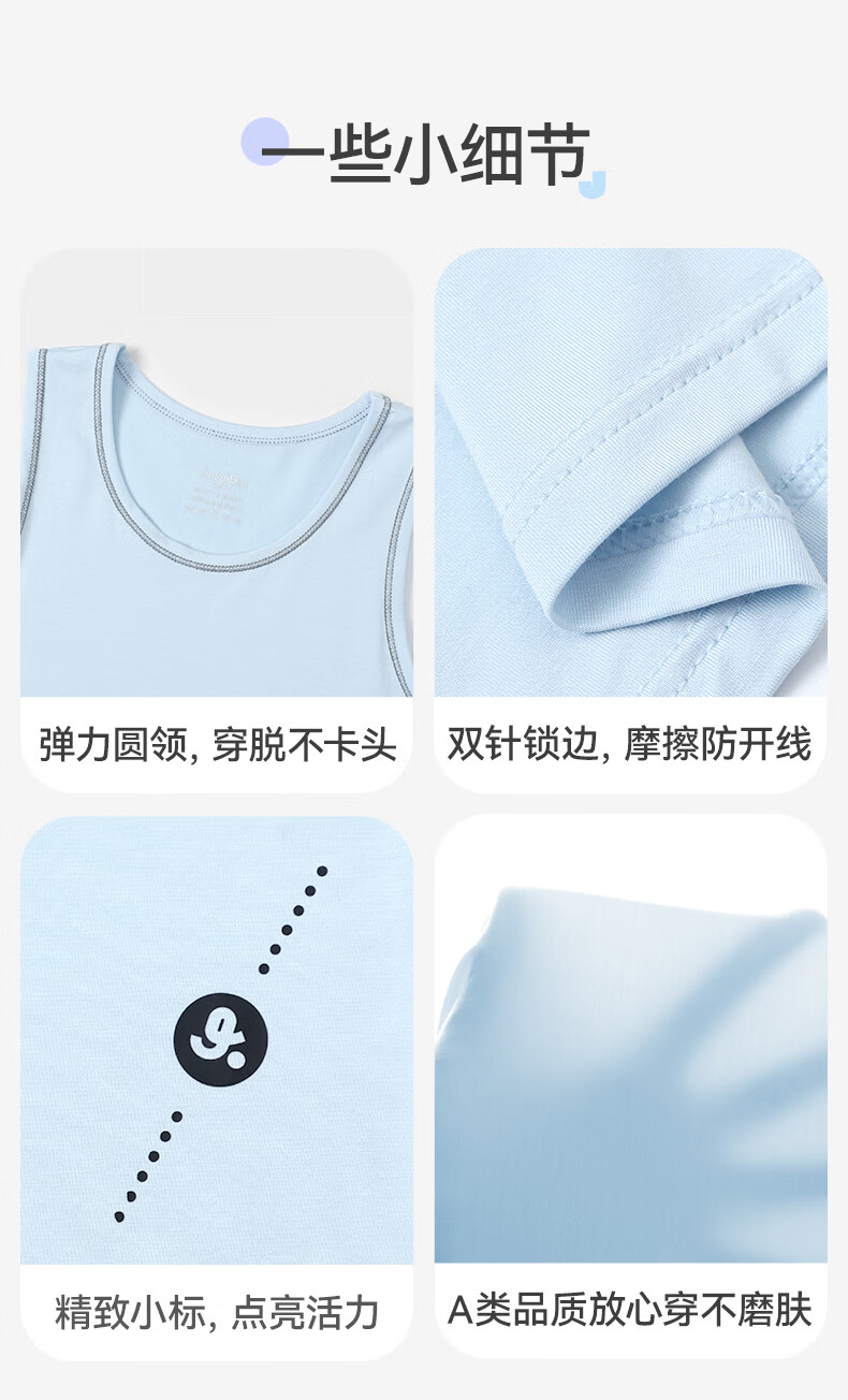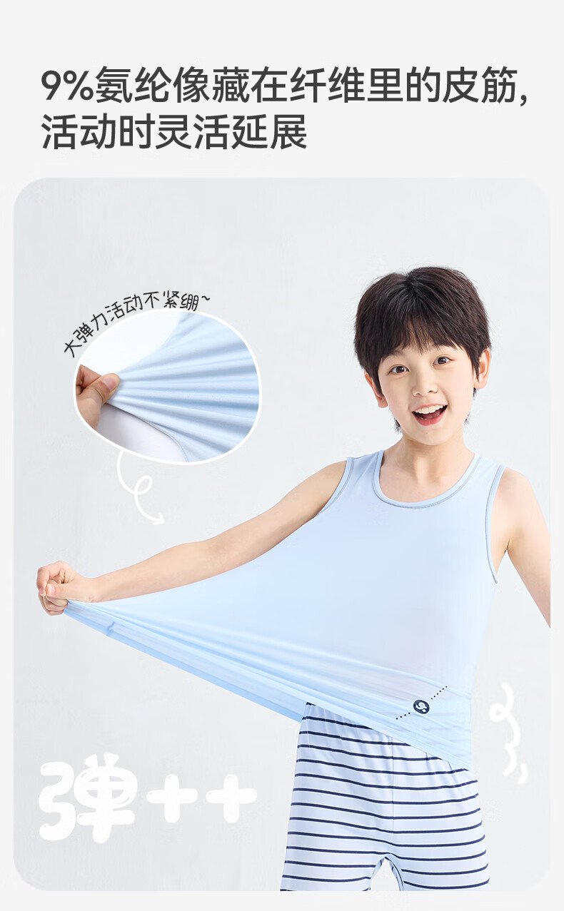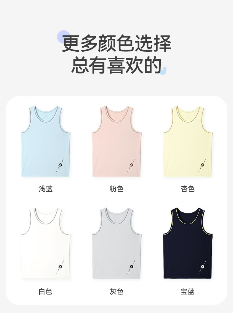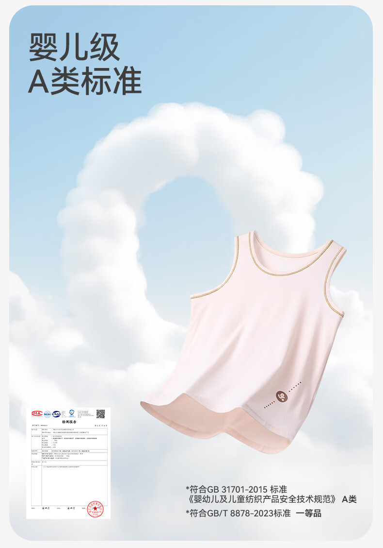 久岁伴【秒秒吸】儿童排汗背心男女童春季打底上衣大童A类薄款校服内穿 白色 150 /身高140-152体重75-90斤
