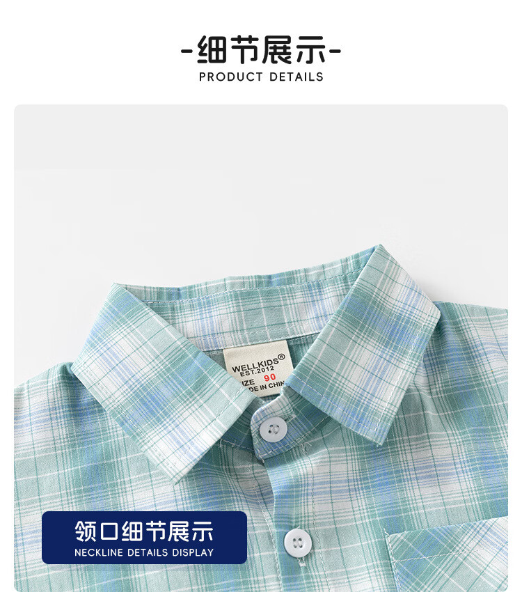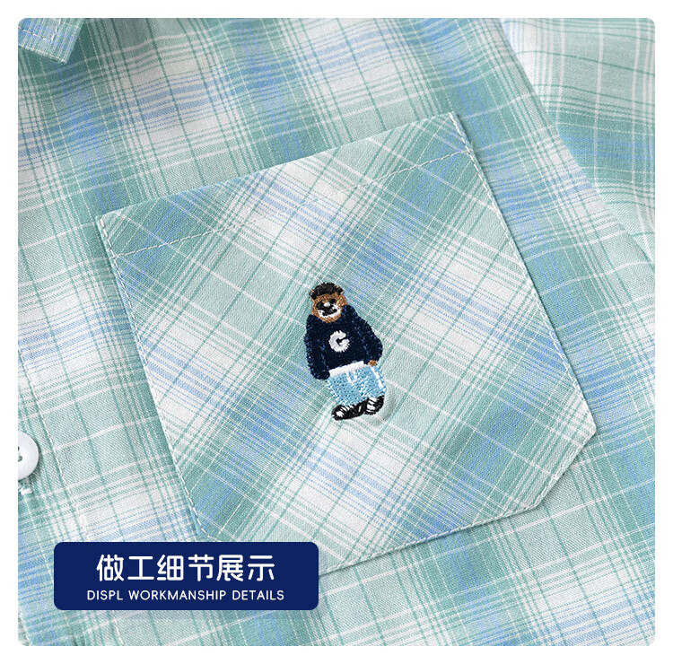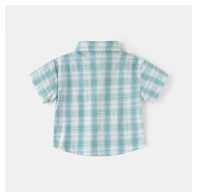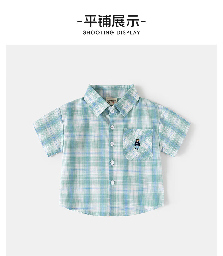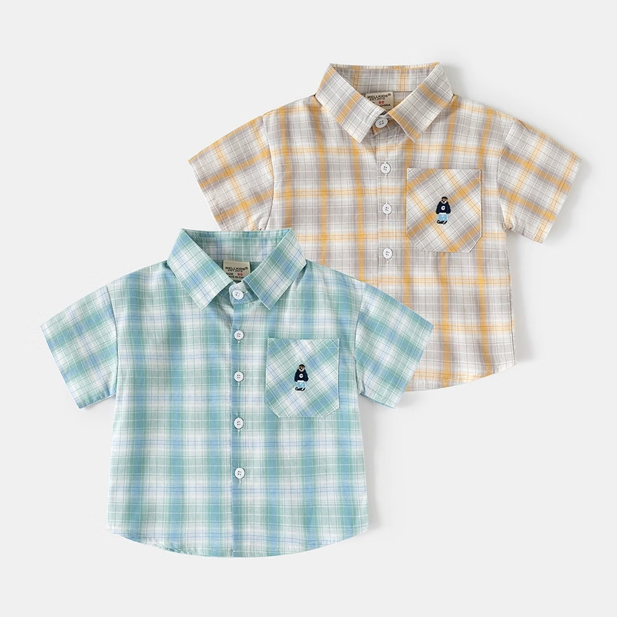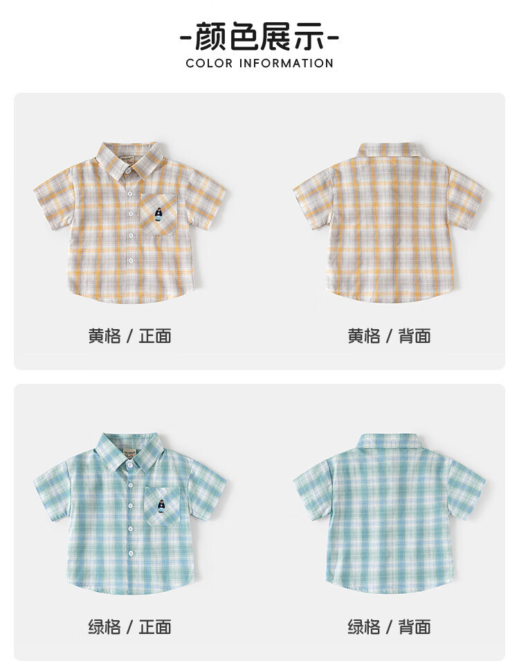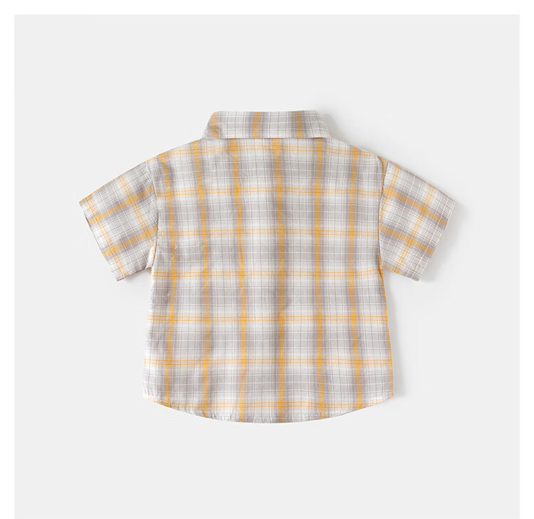 男童短袖衬衫2026夏装儿童半袖衬衣宝宝格子卡通刺绣上 黄格 90 cm