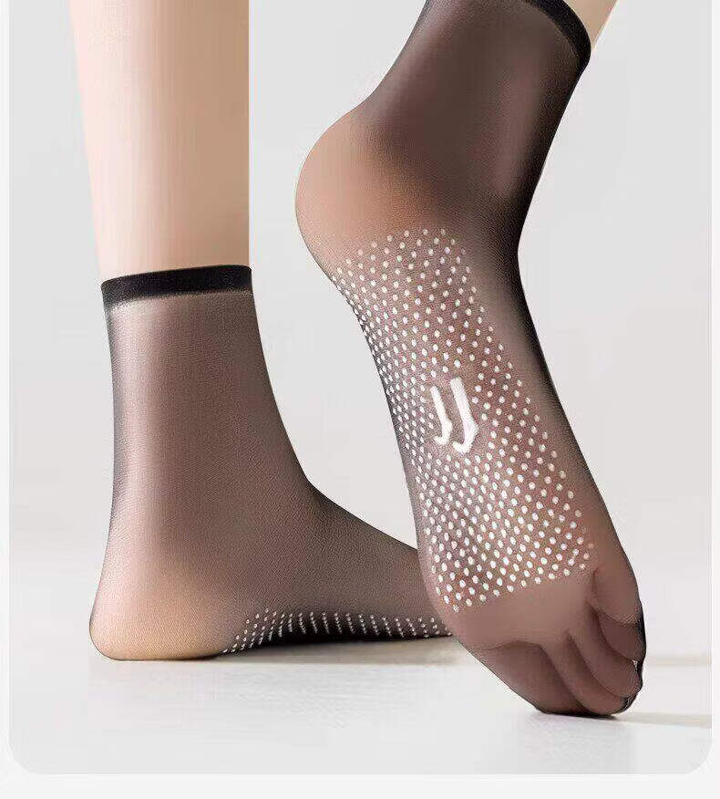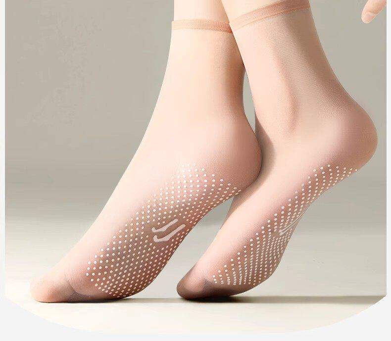 防滑丝袜女短款夏季薄款防勾丝透明耐磨中筒无痕肉色隐形水晶短袜 混色20双【超薄隐形点胶防滑】 均码 无规格