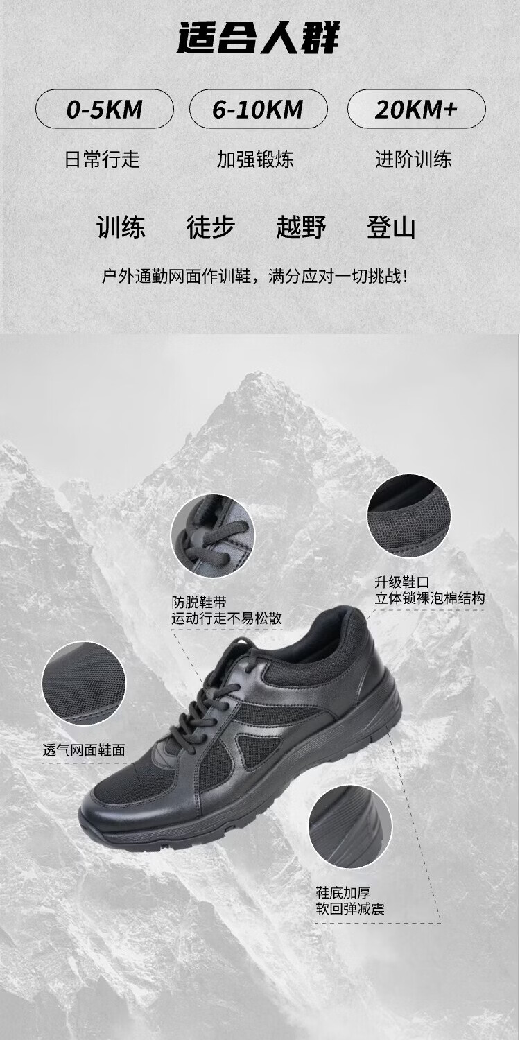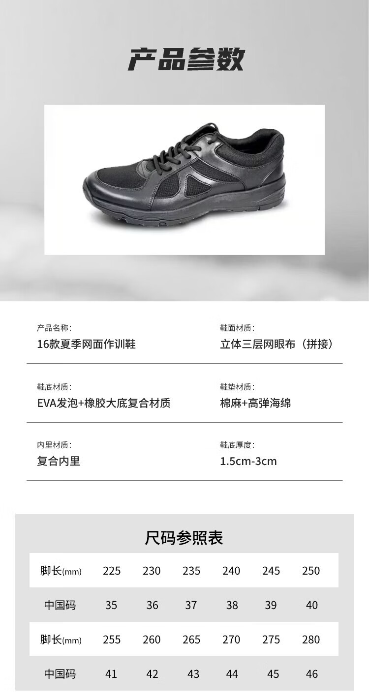 JWCP警网优选16款夏季网面男女作训鞋体能训练鞋户外徒步运动通勤鞋 黑色 36 (230mm)
