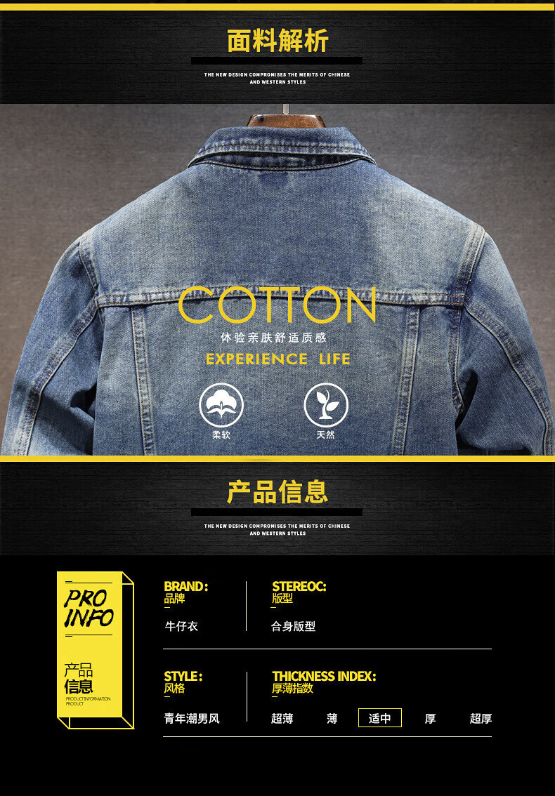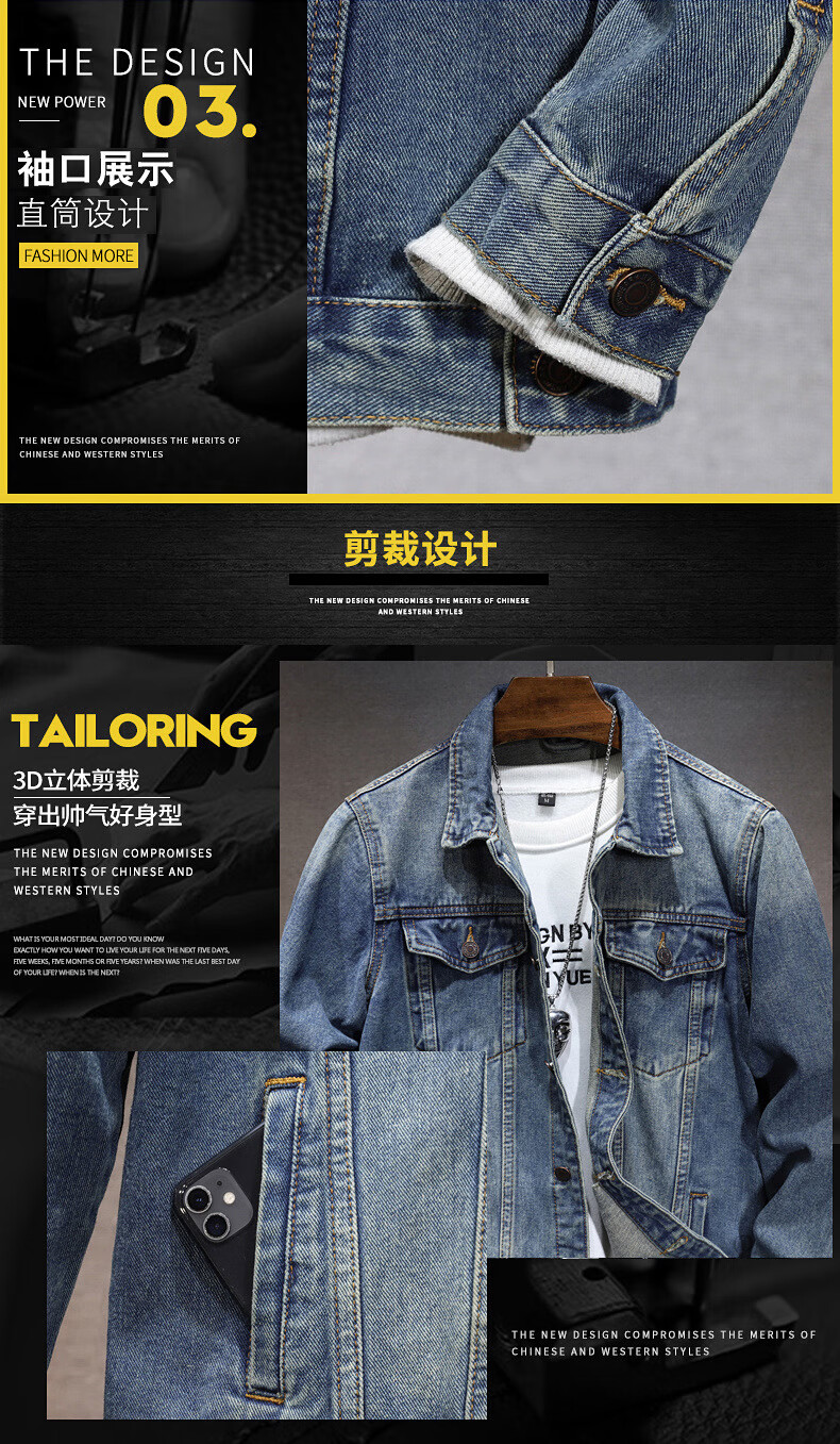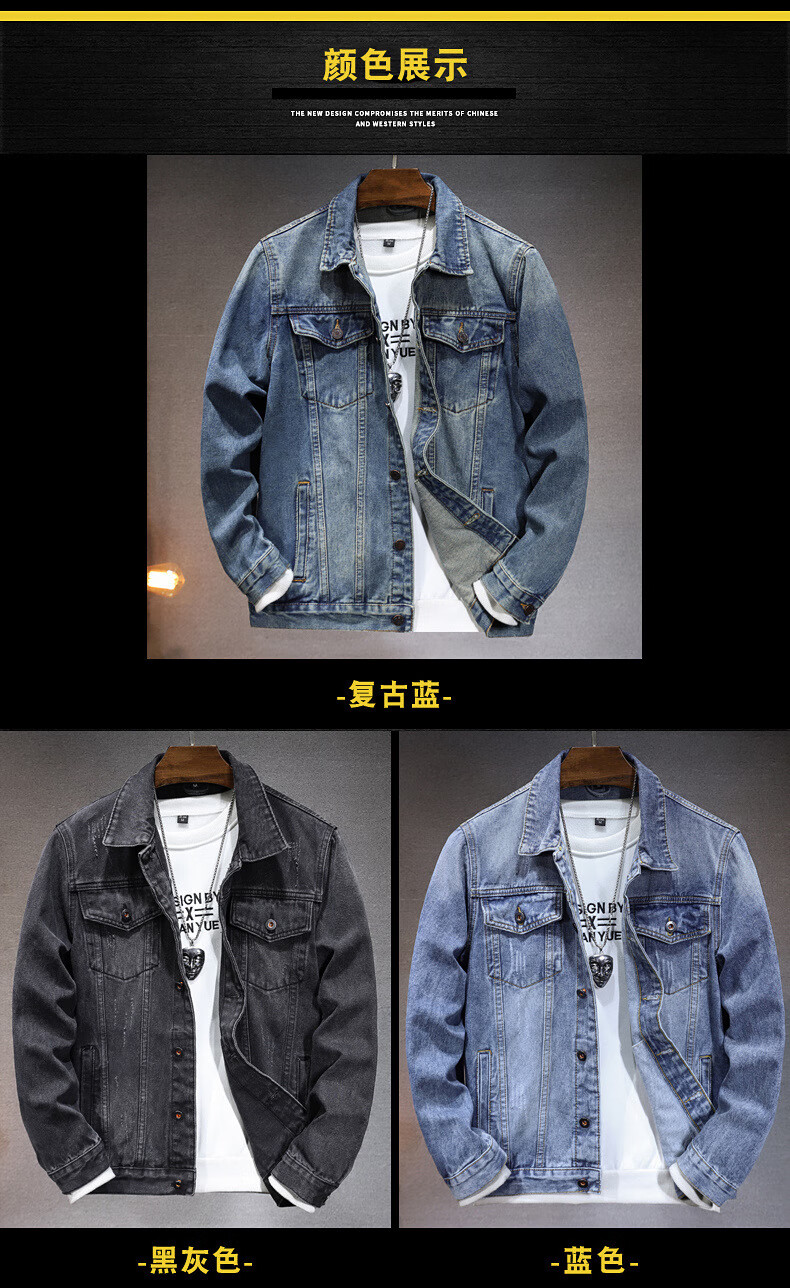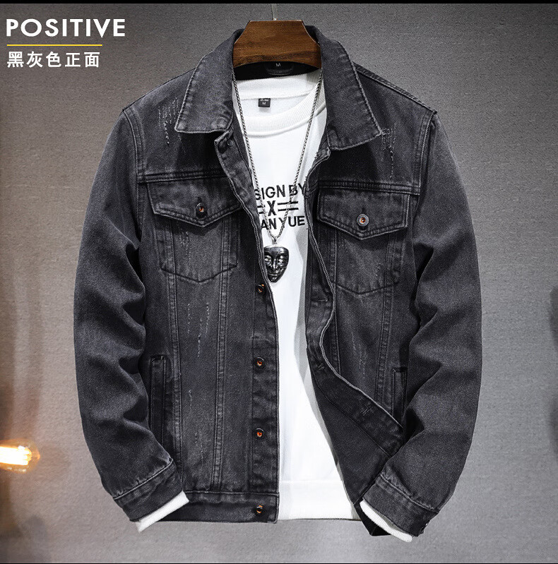 Prato Lee男士牛仔外套男春秋款牛仔夹克男秋季男装潮流秋装男休闲上衣男款 黑色 XL
