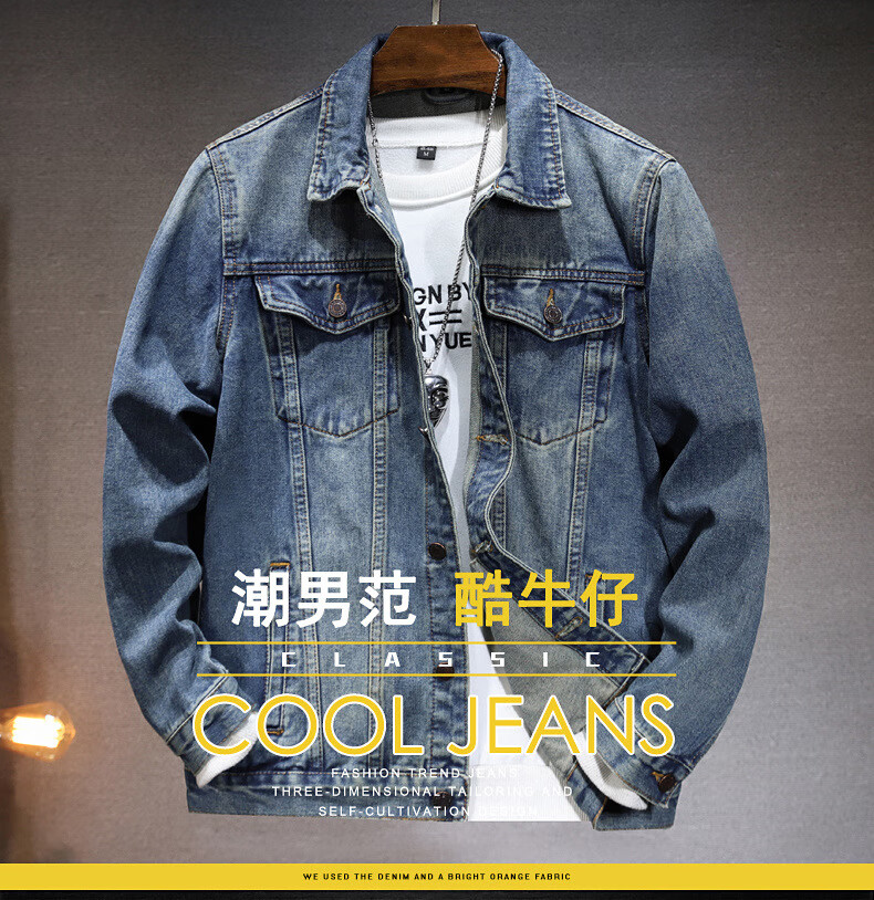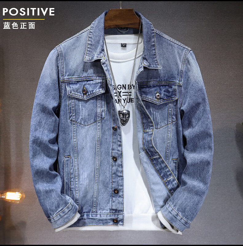 极路客新款秋冬美式复古多巴胺男女款情侣 牛仔外套工装 休闲夹克 月白 XL