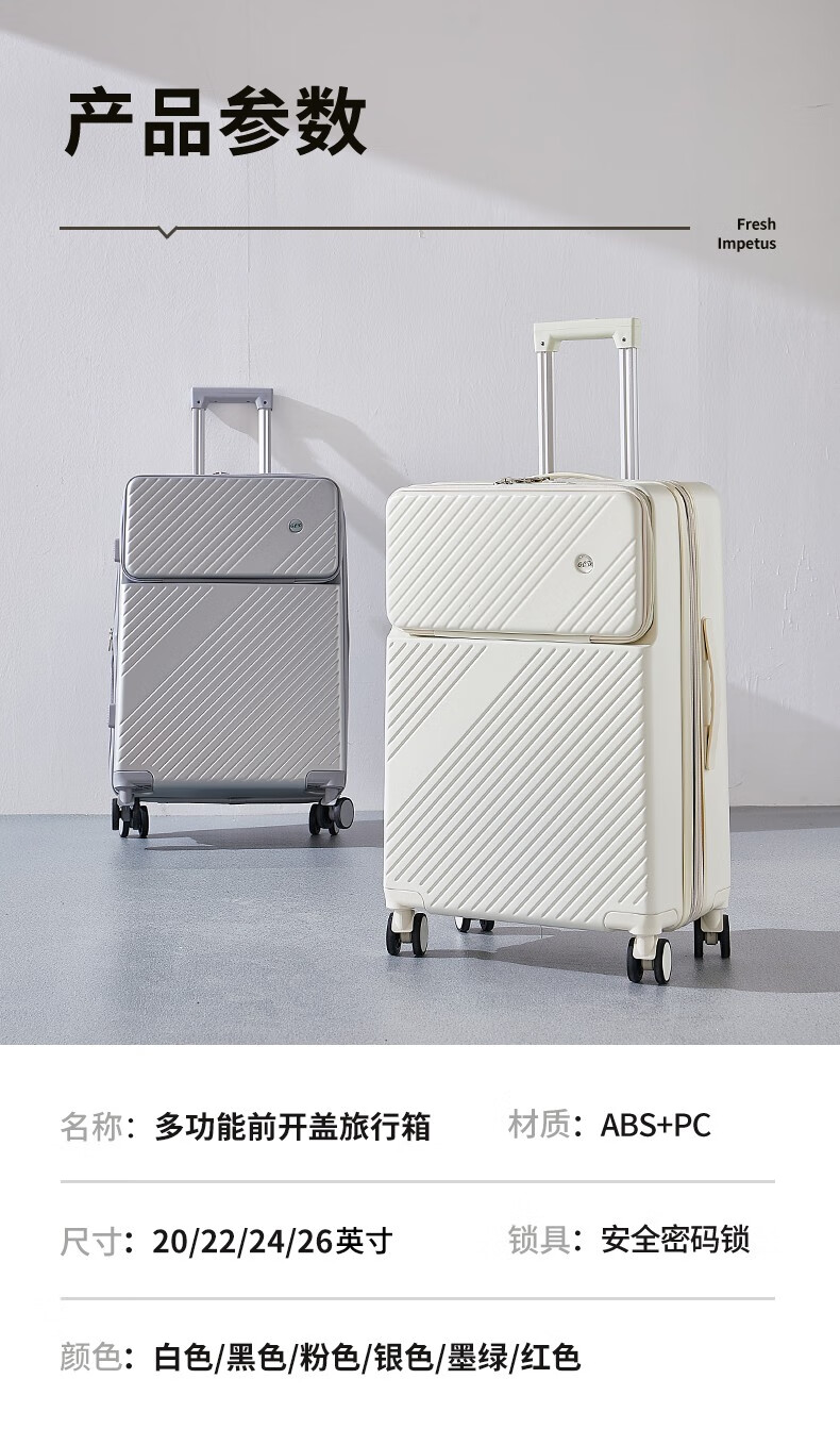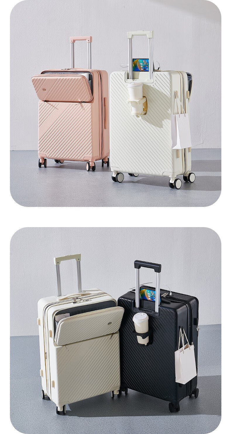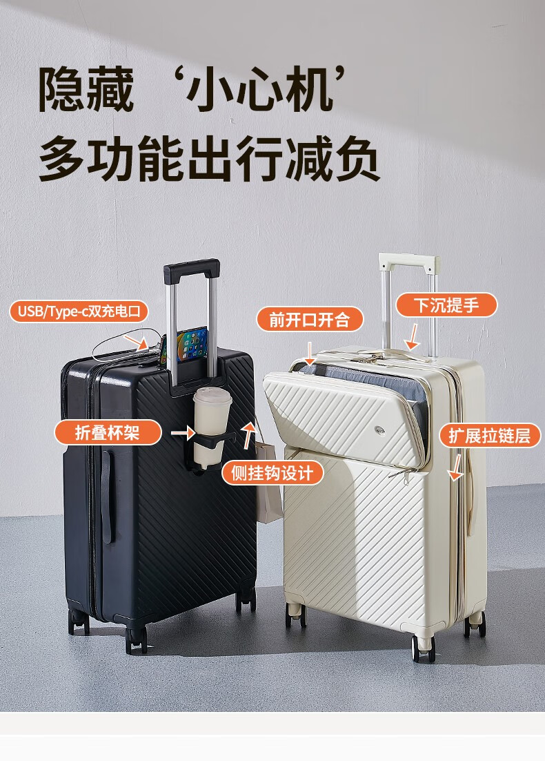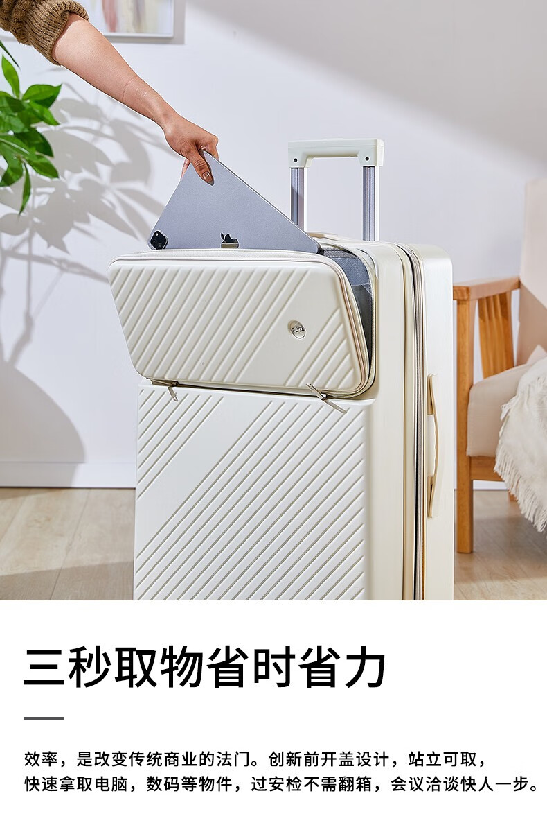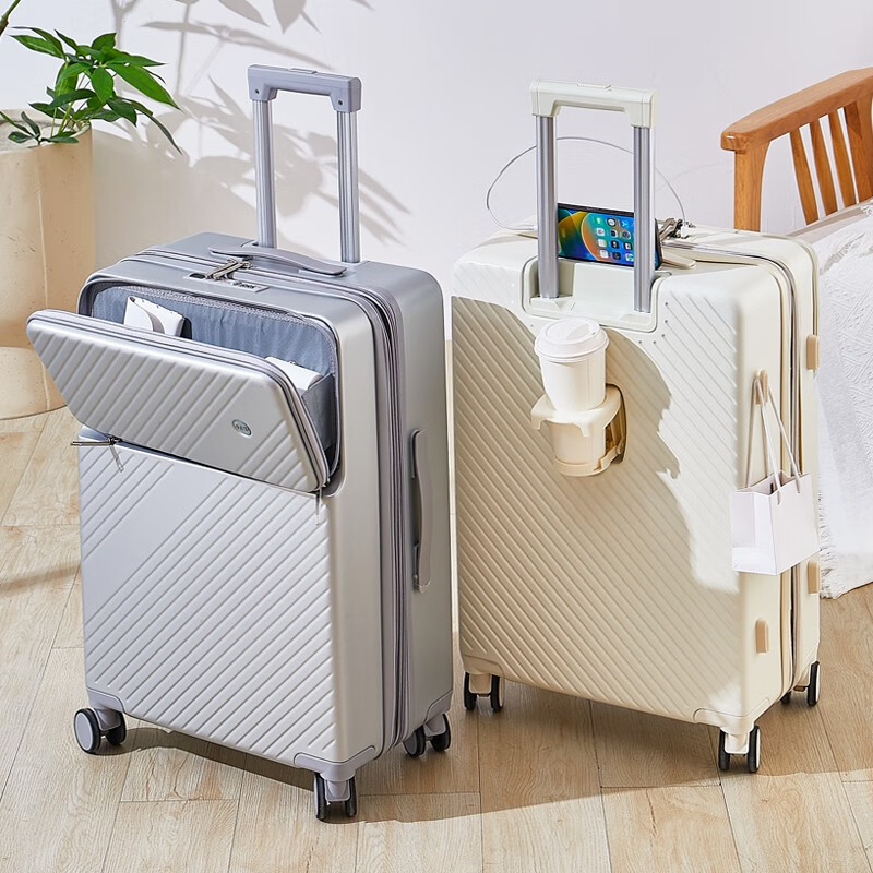 广璐迪可扩展前开盖学生行李箱拉杆箱男大容量密码旅行箱女小登机皮箱包 前置开口 拉链箱 /奢华银+干湿分离 26英寸 大容量+双充电口+可扩展