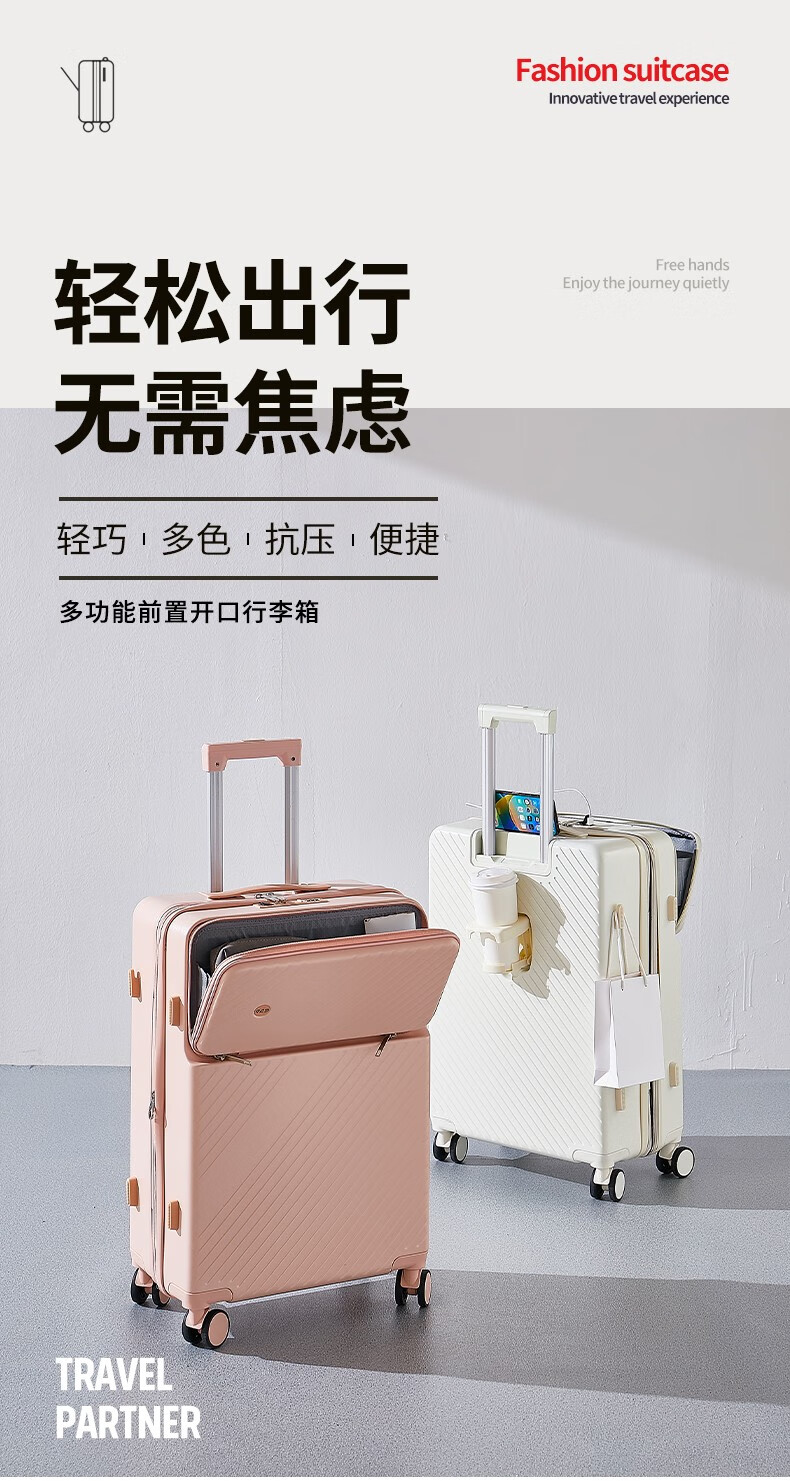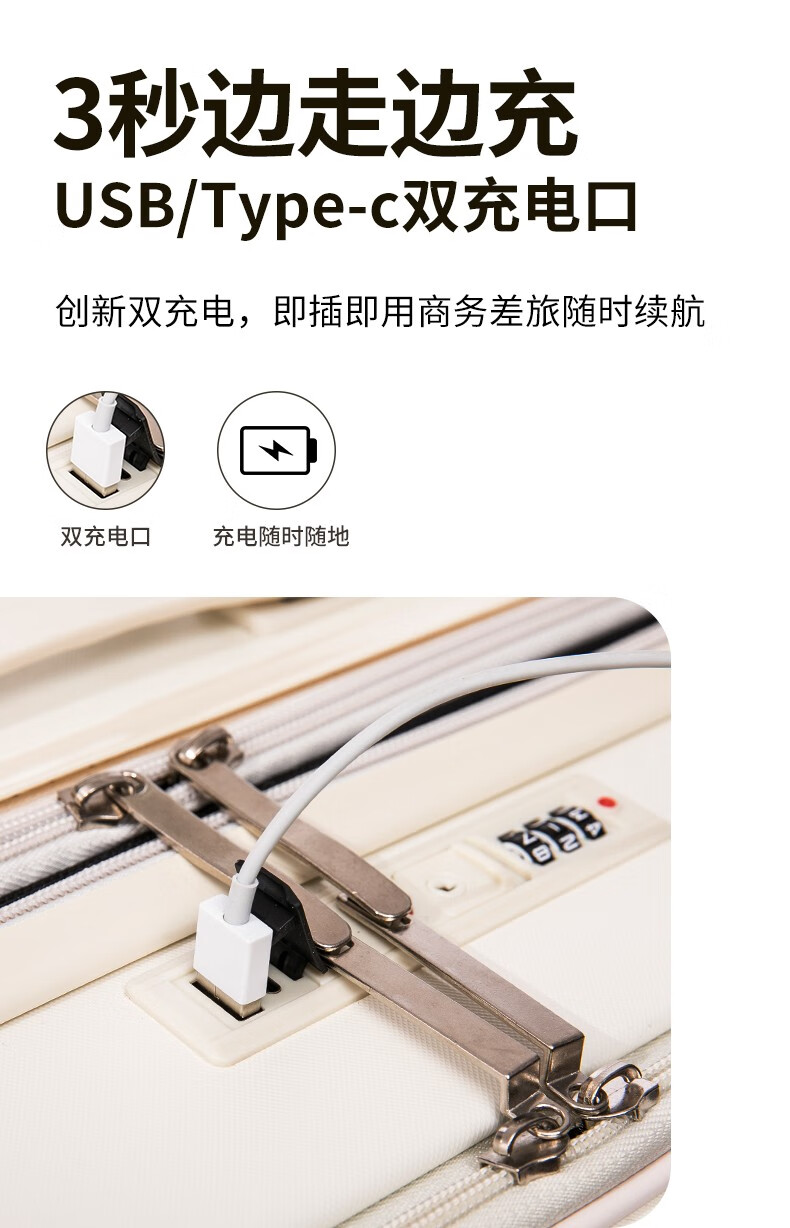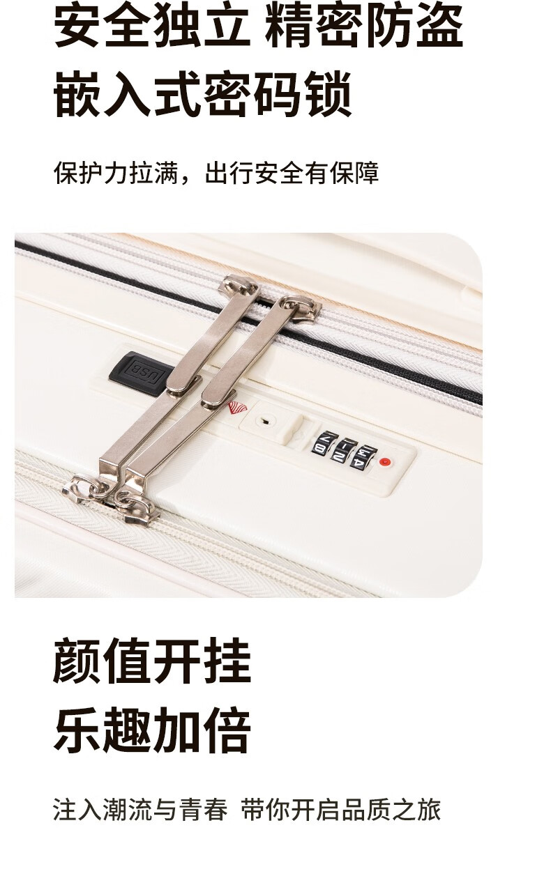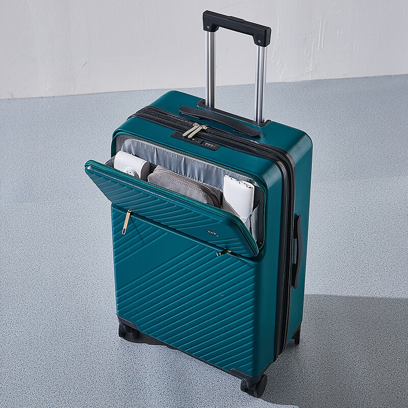 广璐迪可扩展前开盖学生行李箱拉杆箱男大容量密码旅行箱女小登机皮箱包 前置开口 拉链箱 /奢华银+干湿分离 26英寸 大容量+双充电口+可扩展