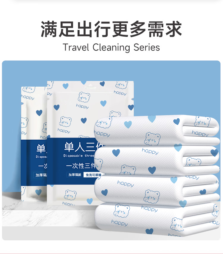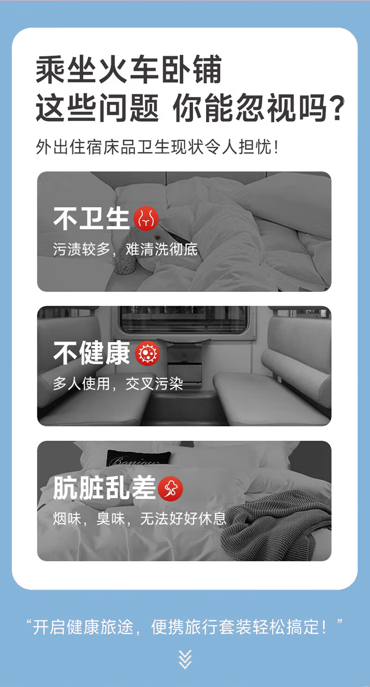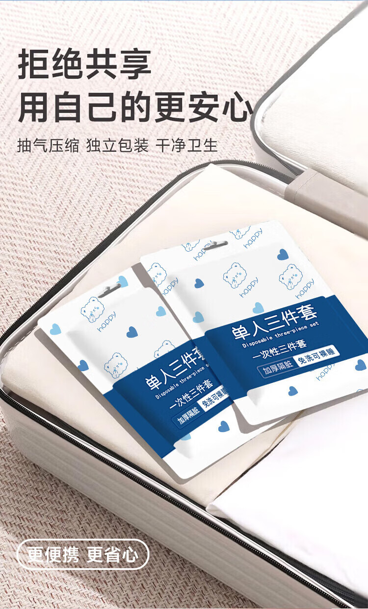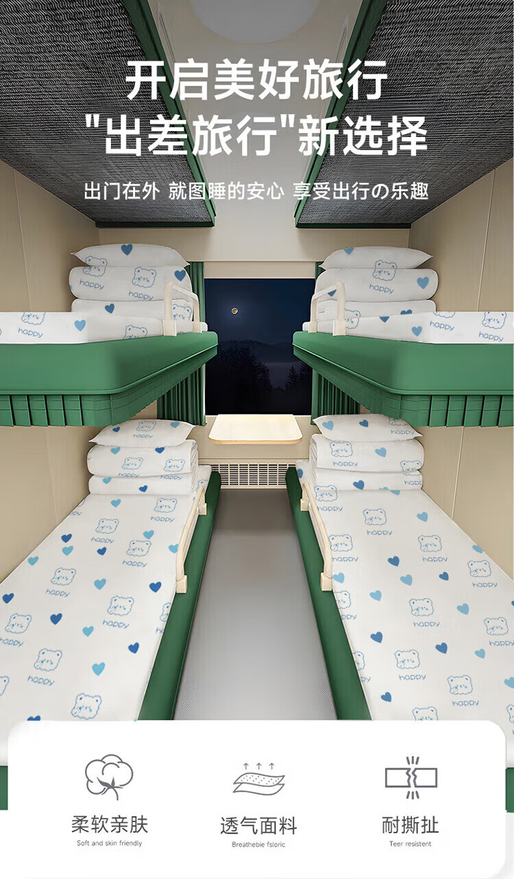 七海秋火车卧铺三件套一次性床单床品被罩枕套软卧硬卧旅游酒店隔脏旅行