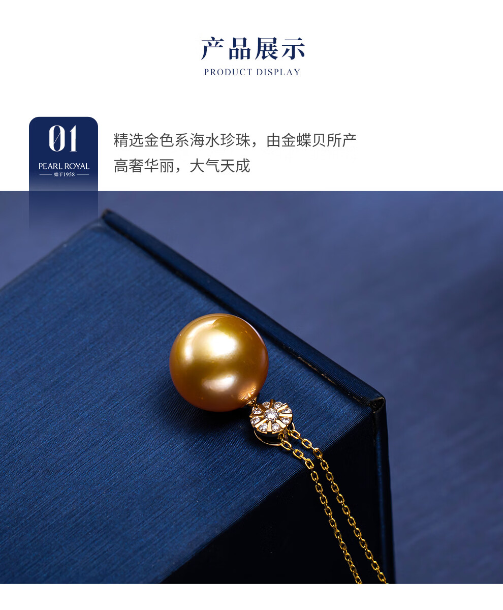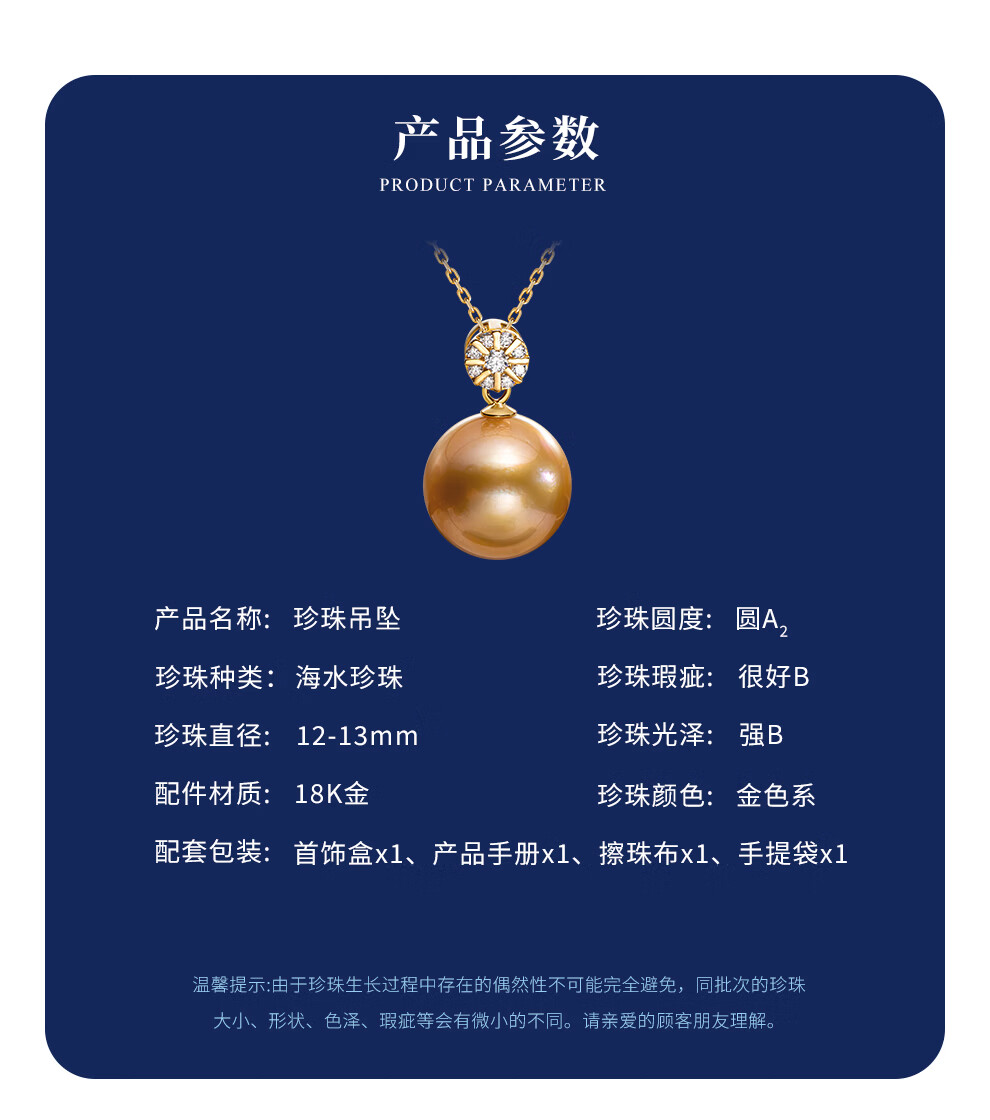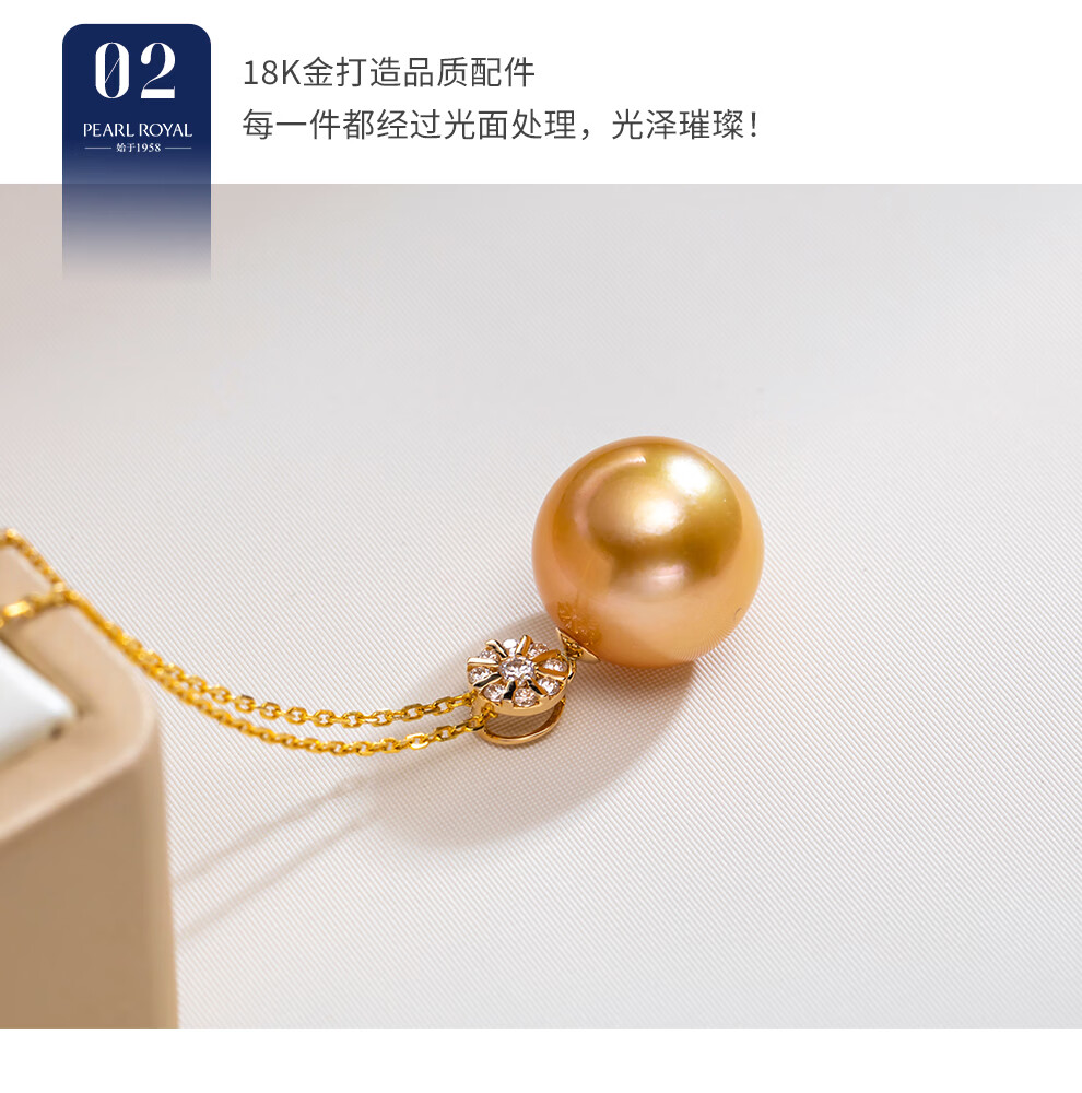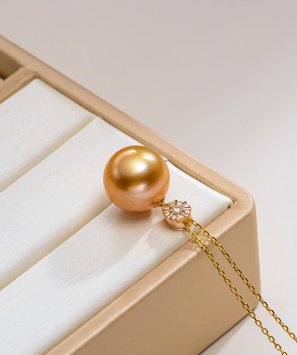 南珠宫暖阳18K金海水珍珠吊坠单颗金珠项链轻奢高级感生日礼物送老婆 12.0-13.0mm 赠S925银链