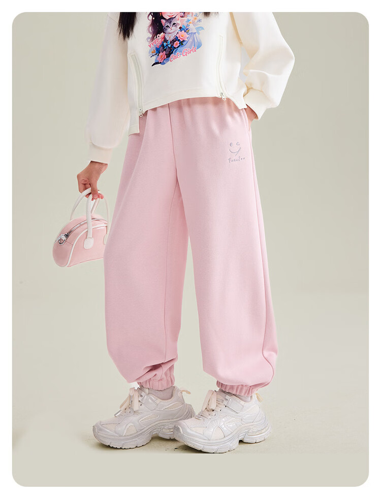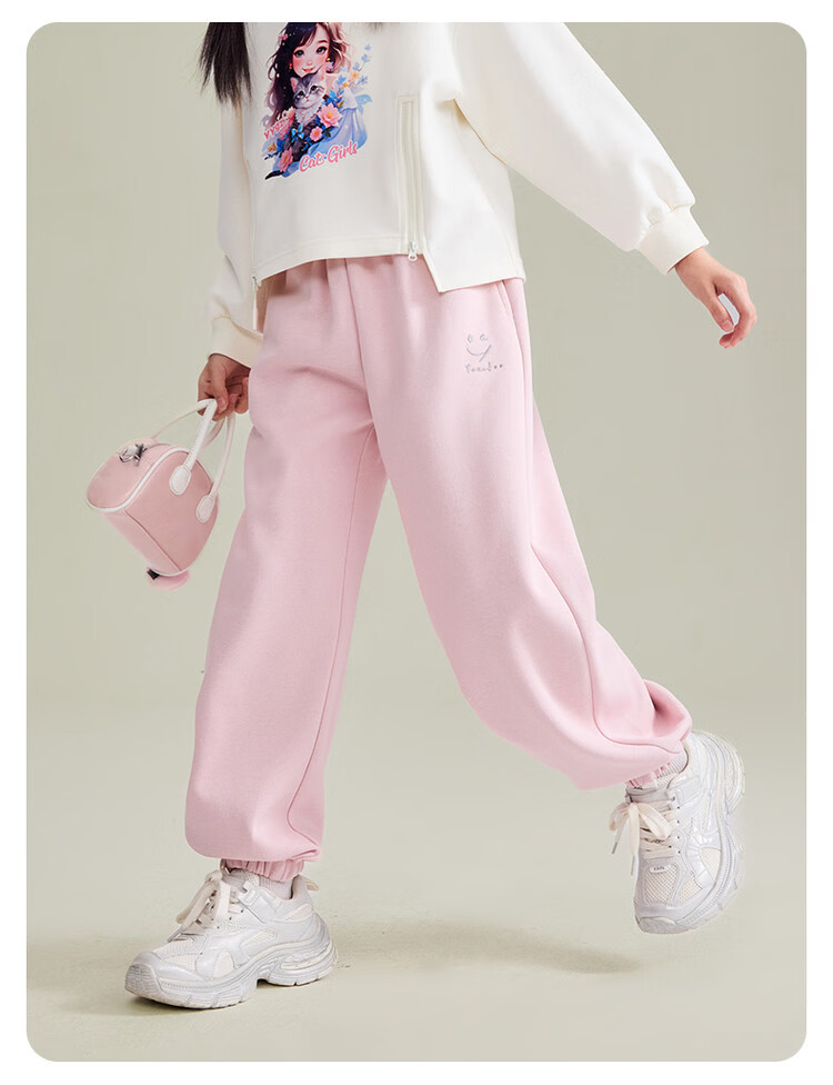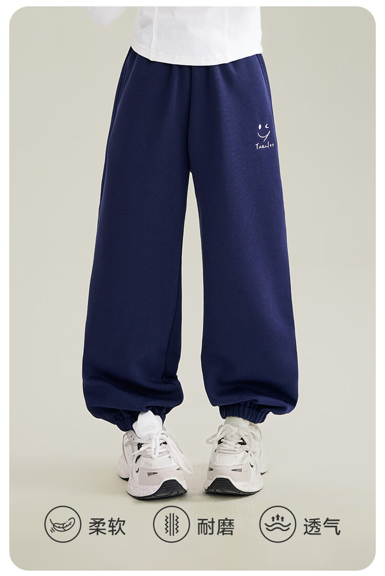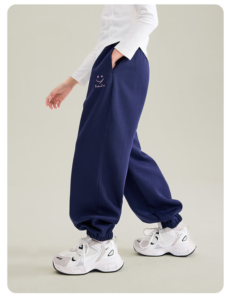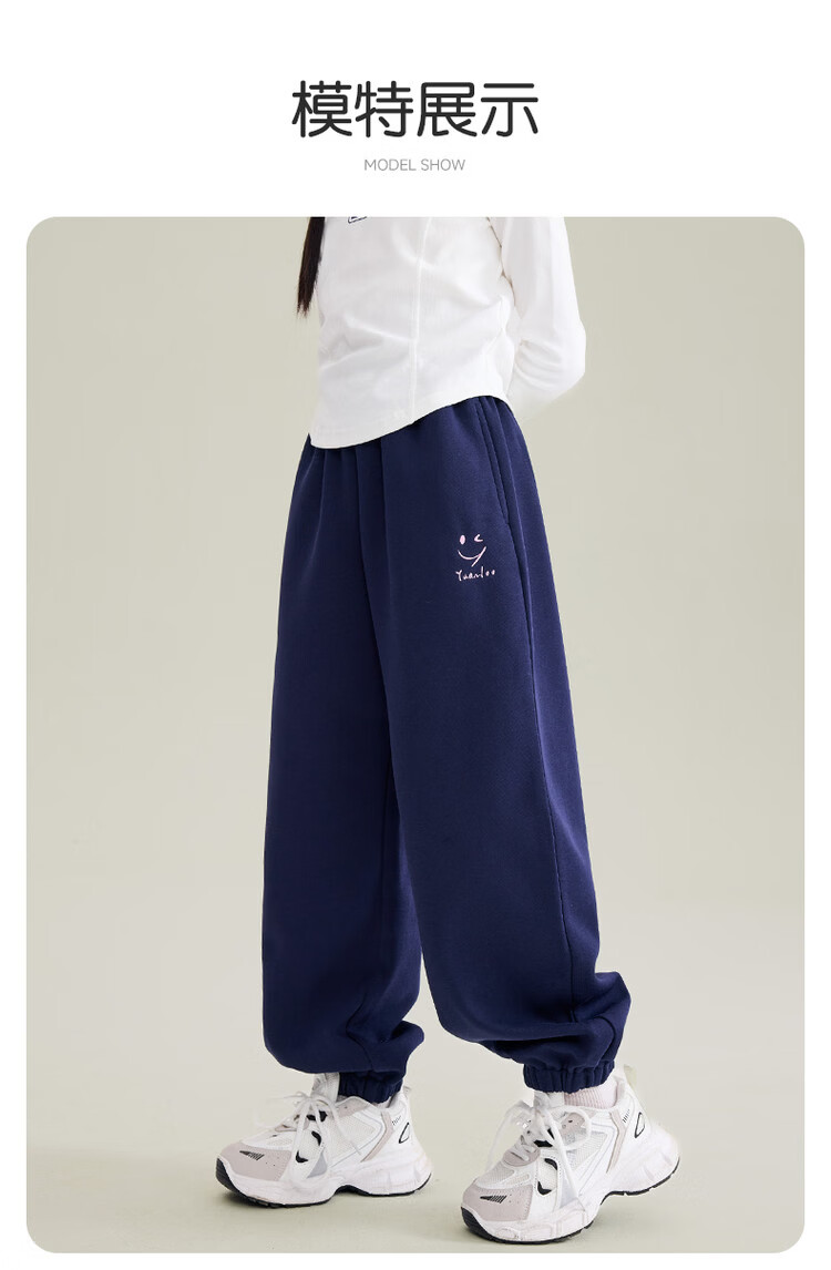 媛媛公主儿童运动裤秋冬季女童绣花束脚长裤中大童加绒加厚百搭休闲裤潮 藏青色(加绒加厚款) 110