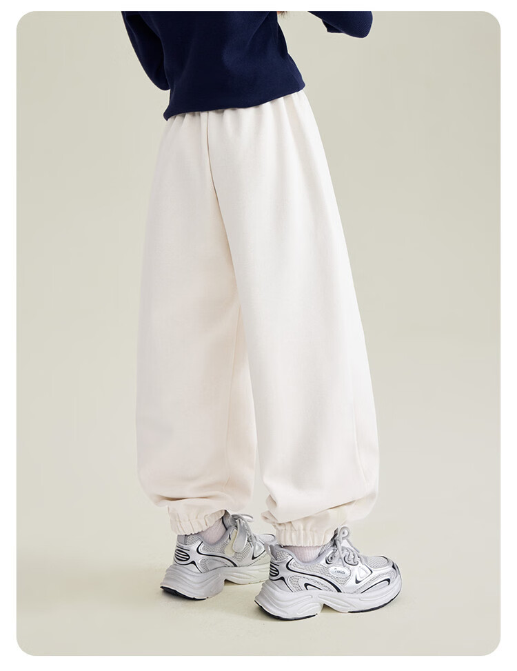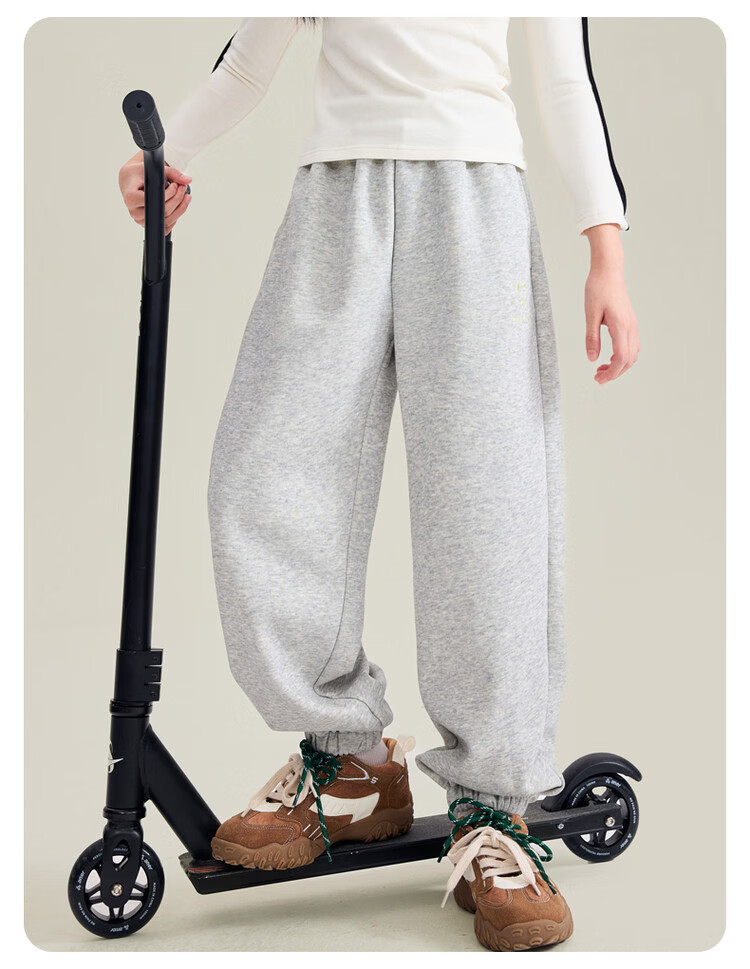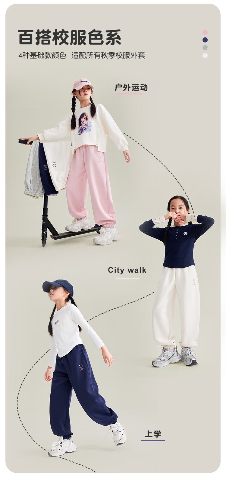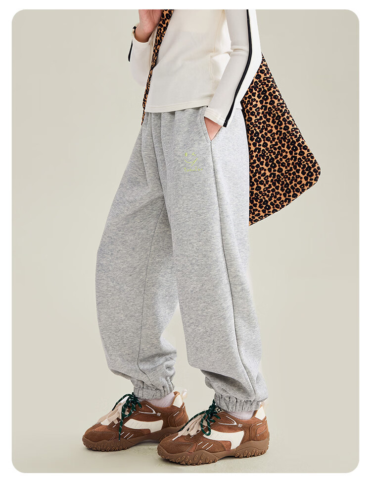 媛媛公主儿童运动裤秋冬季女童绣花束脚长裤中大童加绒加厚百搭休闲裤潮 藏青色(加绒加厚款) 110