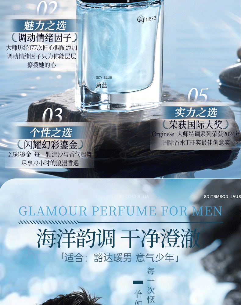 ORGINESE男士香水蔚蓝持久留香72小时淡香木质香氛古龙送男友礼盒套装新年