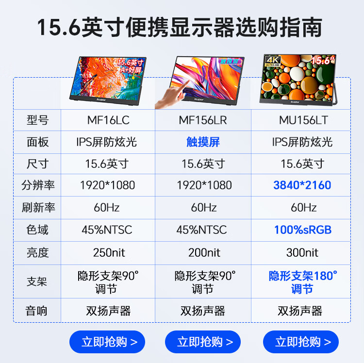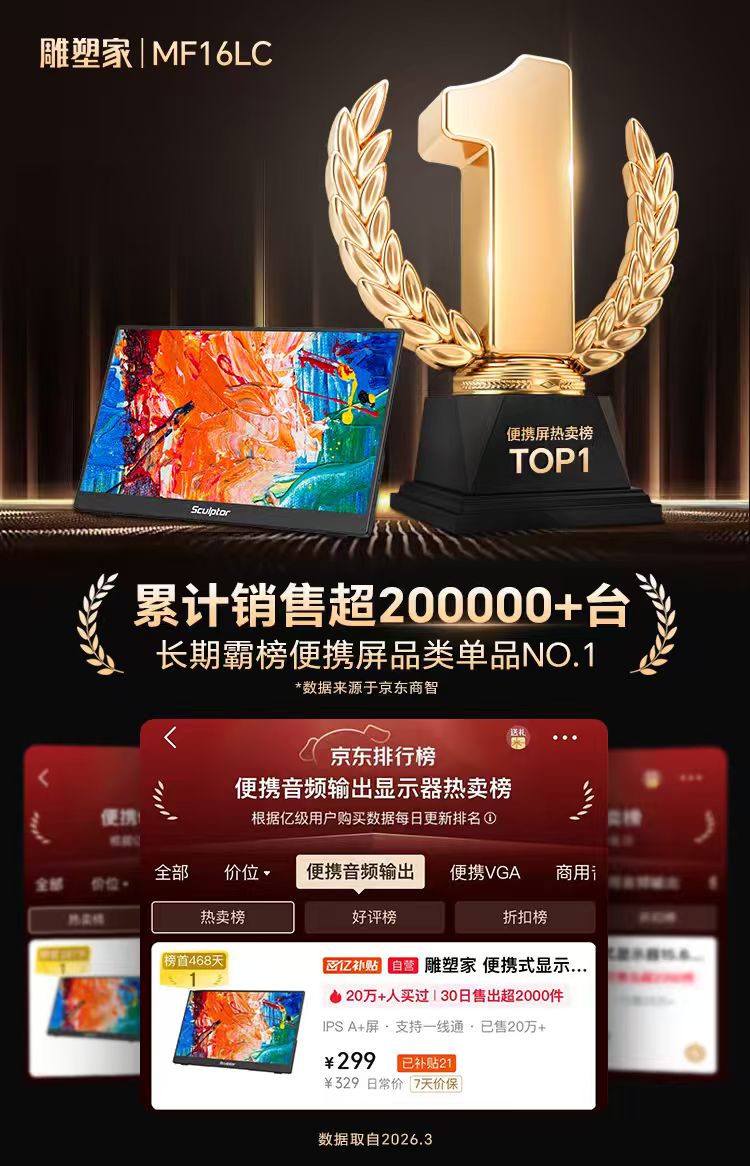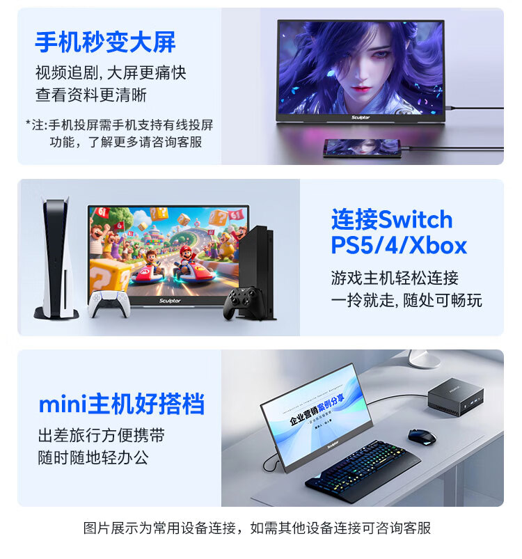 雕塑家 便携式显示器15.6英寸便携屏 显示屏扩展屏 电脑手机笔记本 PS4/5 Switch副屏一线直连MF16LC