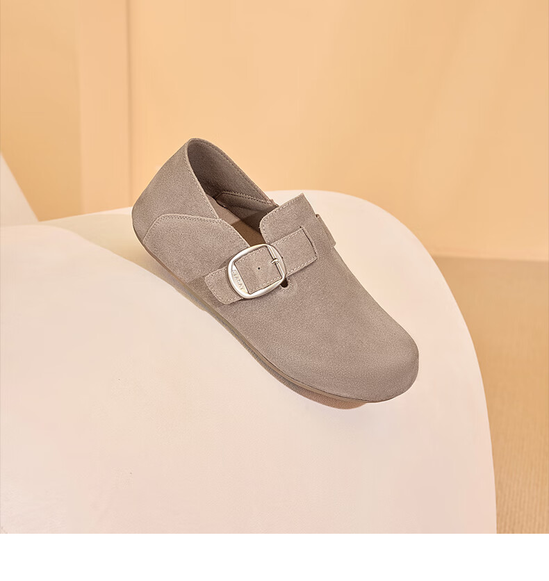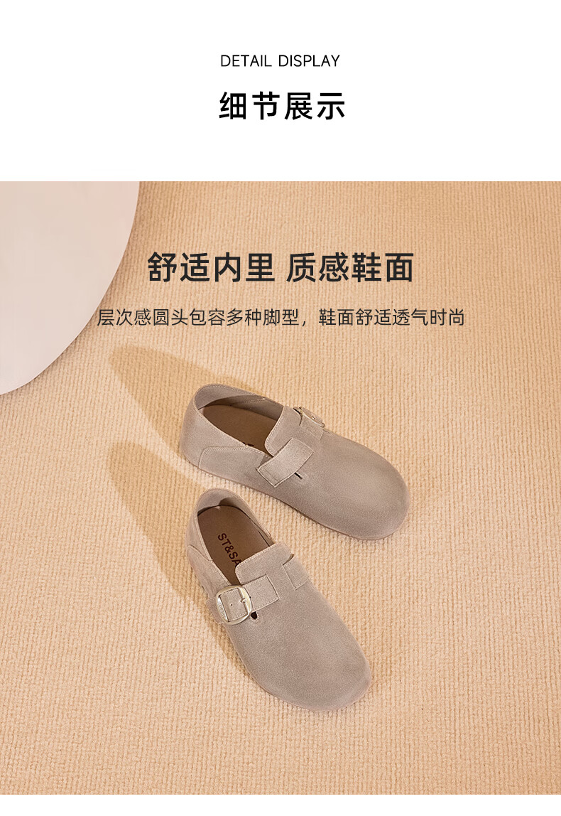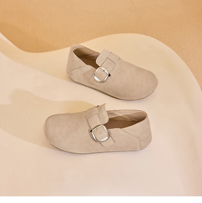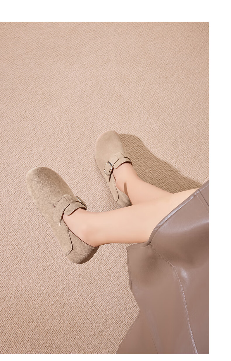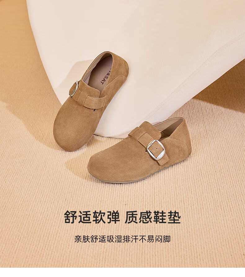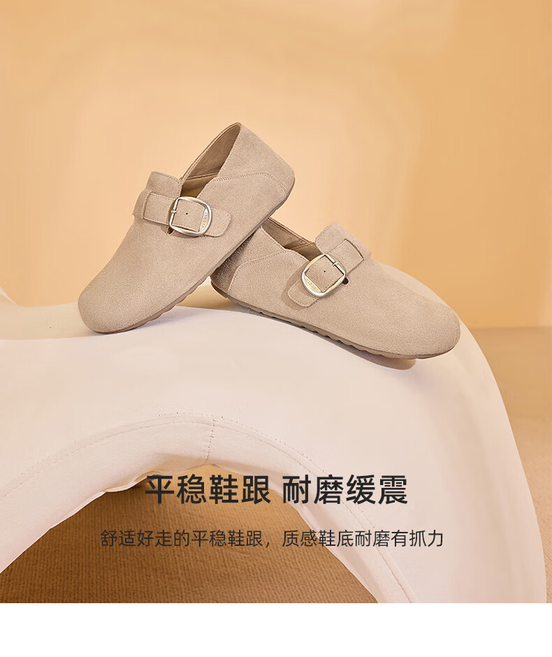 星期六真皮勃肯鞋女款2025新款秋季复古全包鞋子软底通勤不累脚百搭单鞋 杏色 【牛剖层皮革】跟高2cm 35