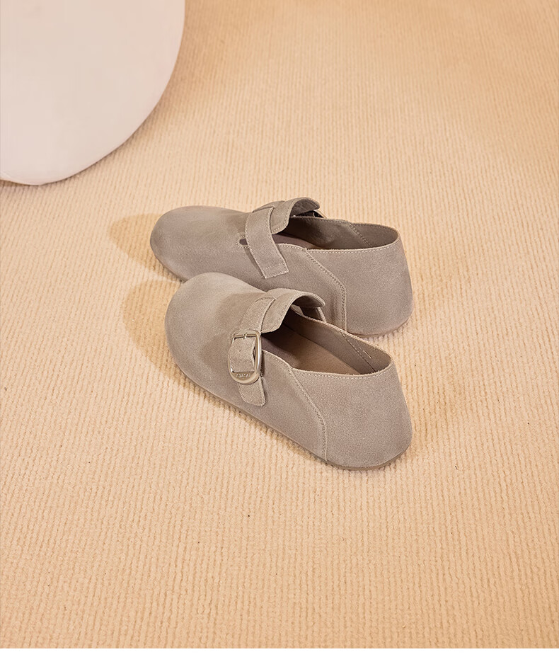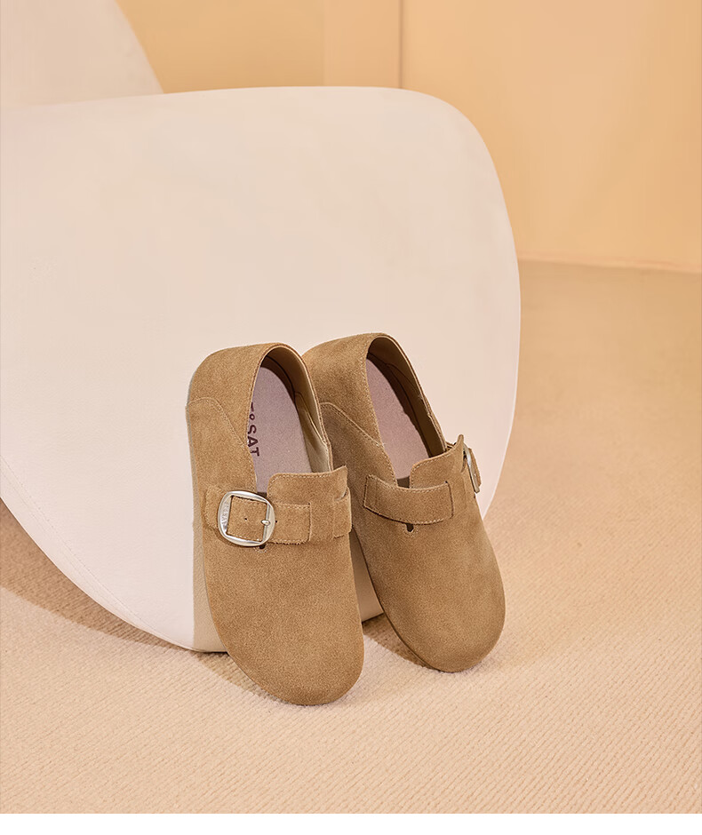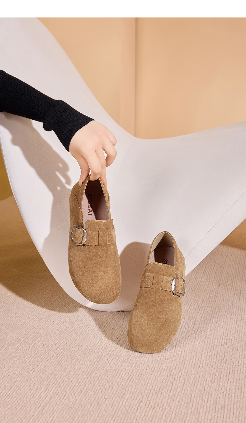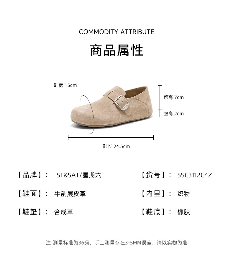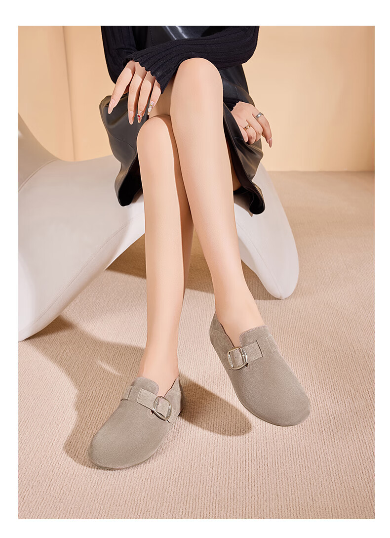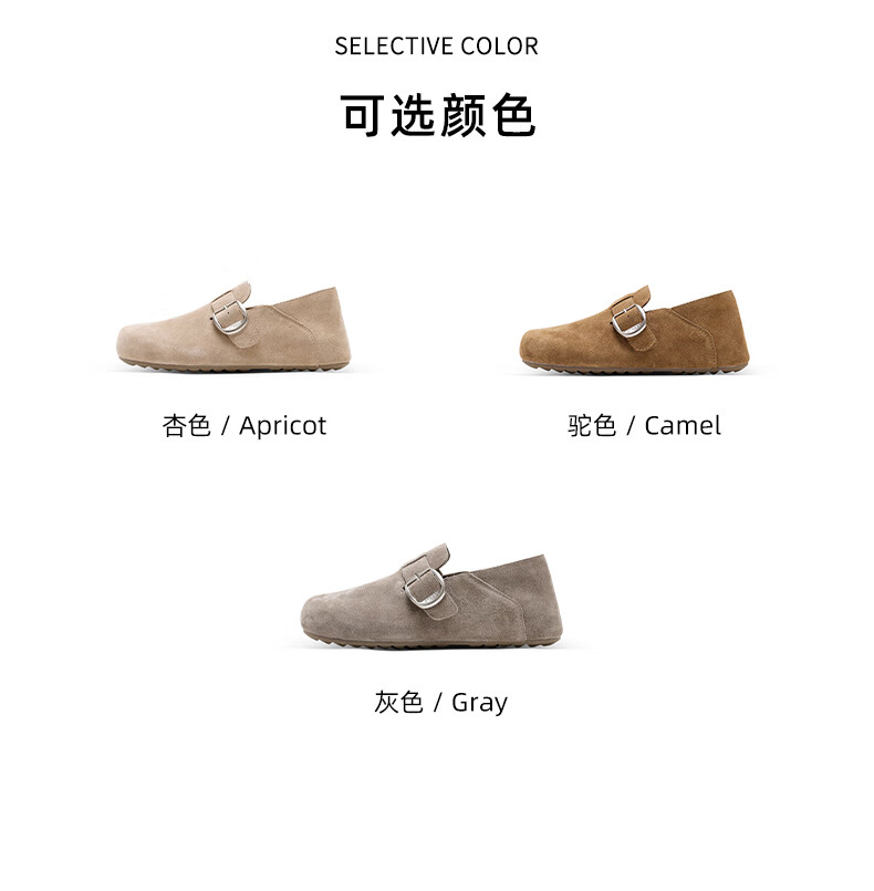 星期六真皮勃肯鞋女款2025新款秋季复古全包鞋子软底通勤不累脚百搭单鞋 杏色 【牛剖层皮革】跟高2cm 35