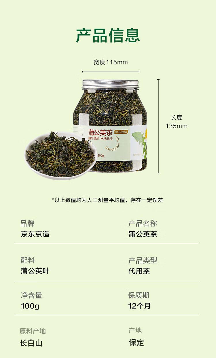 京东京造鲜来多 长白山蒲公英茶 蒲公英叶根养生茶100g【京东自营】可定制