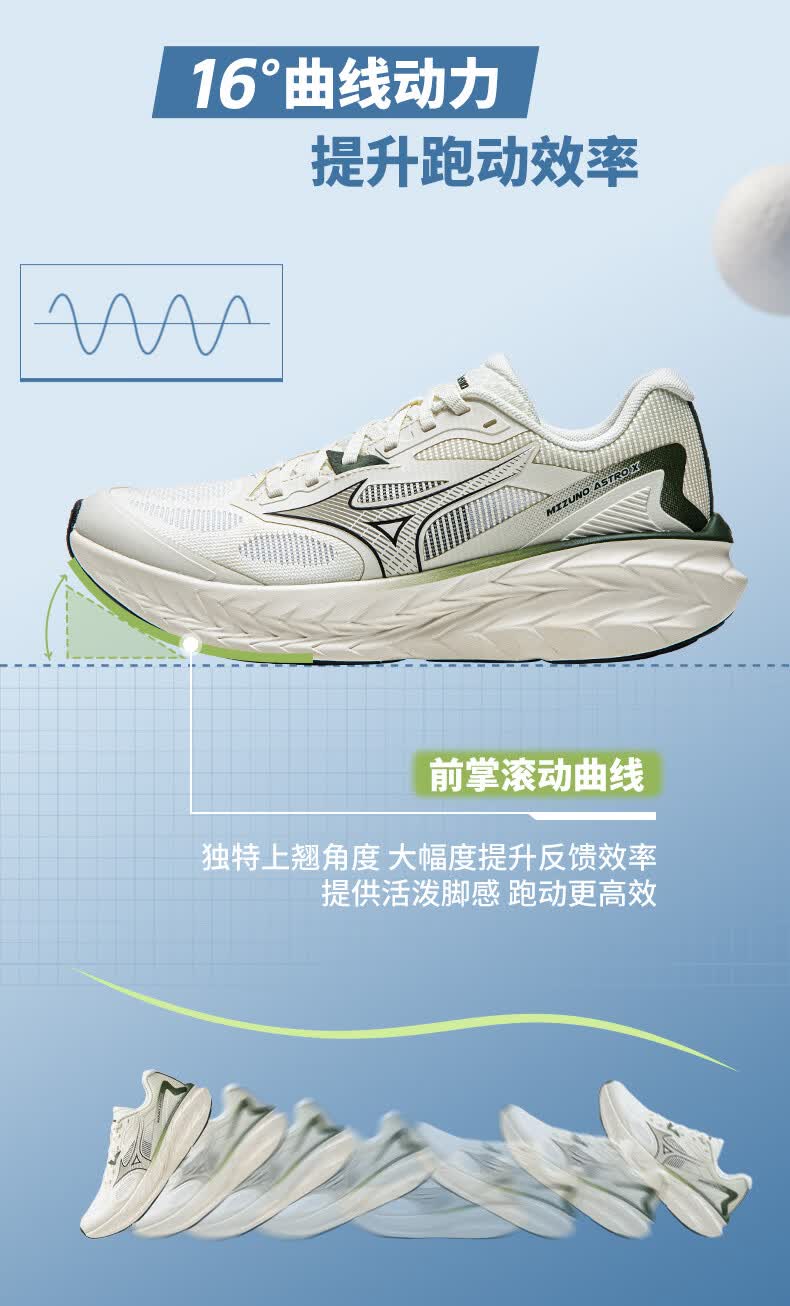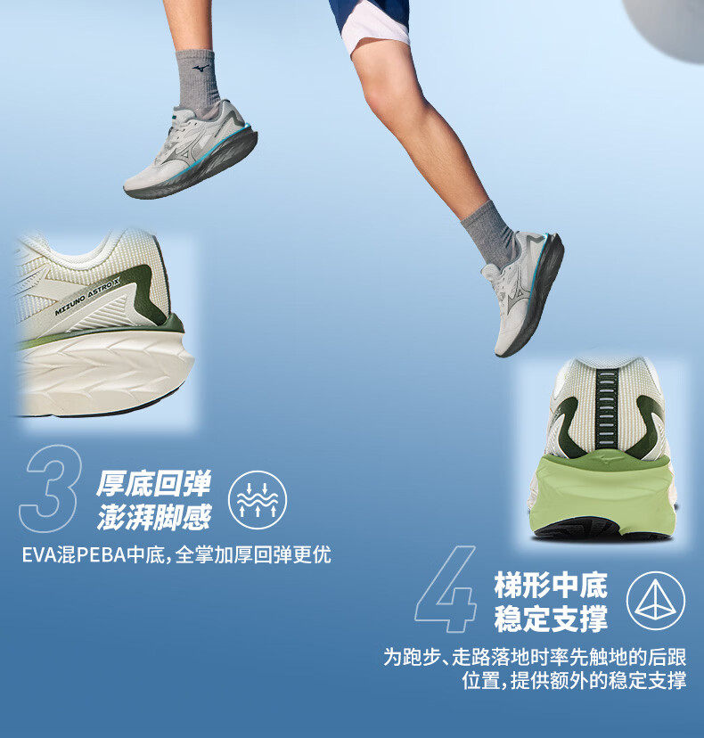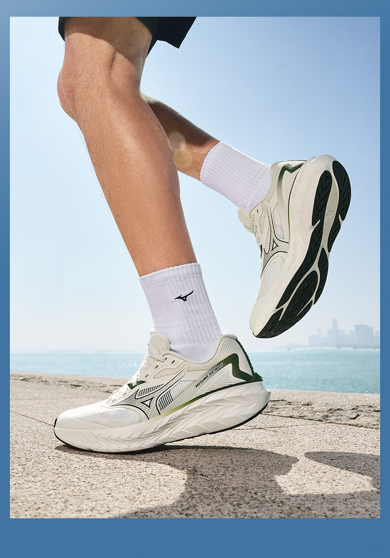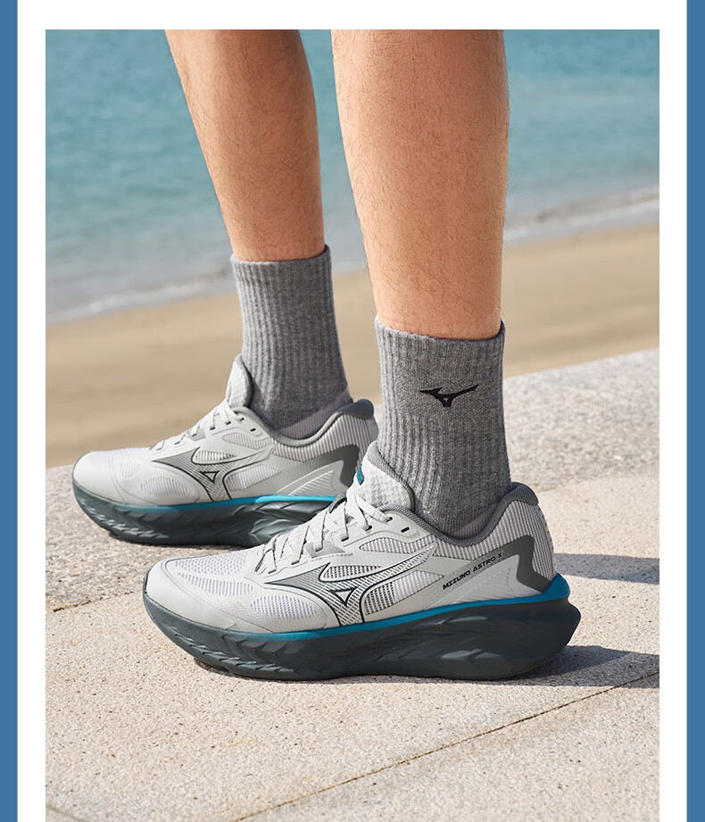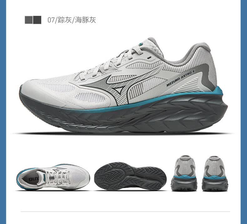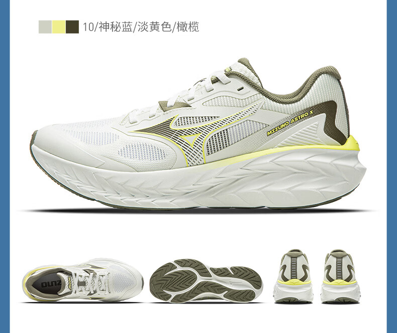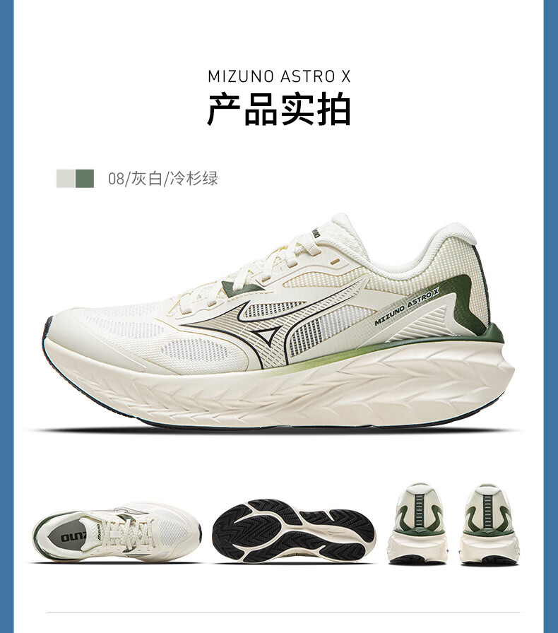 美津浓(MIZUNO)厚底缓震回弹专业运动跑步鞋 ASTRO X 08/灰白/冷杉绿 42