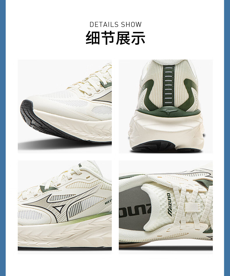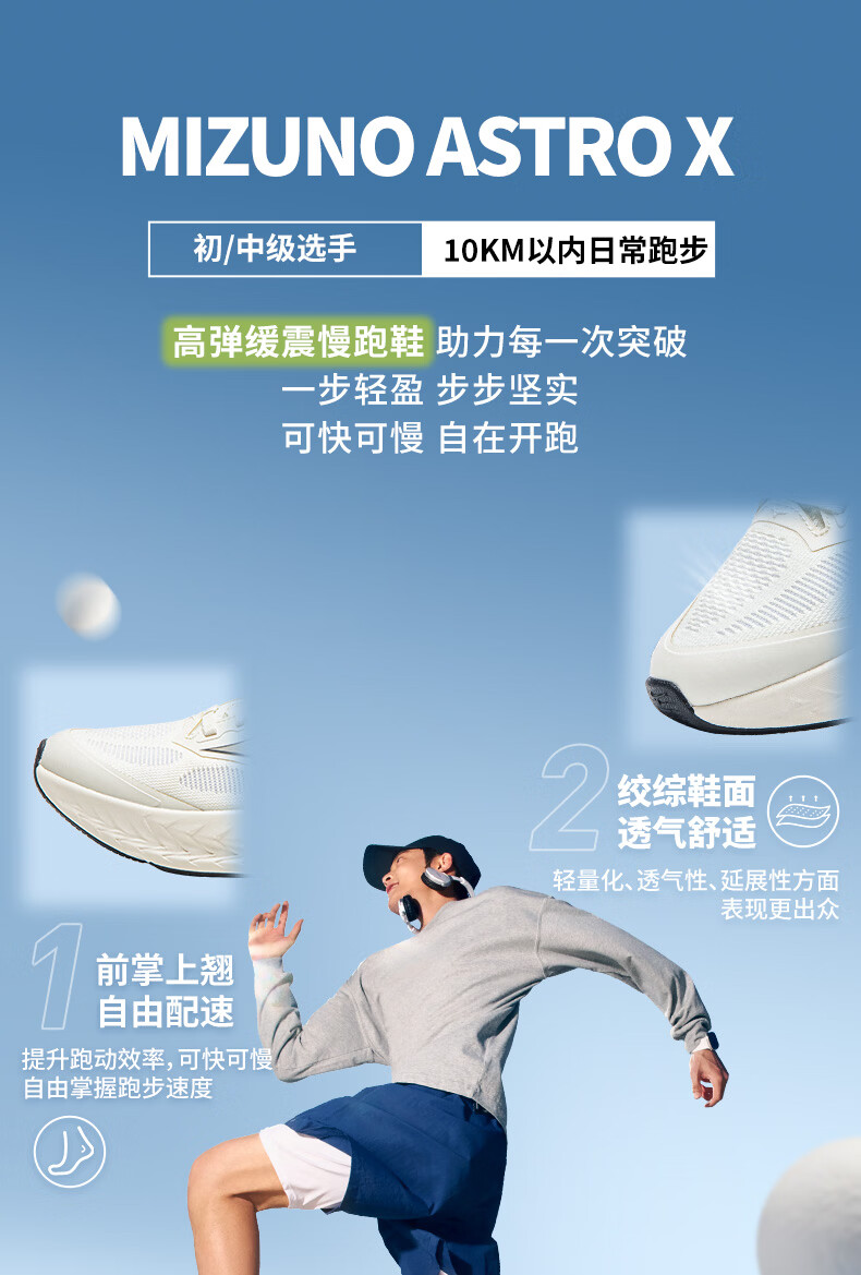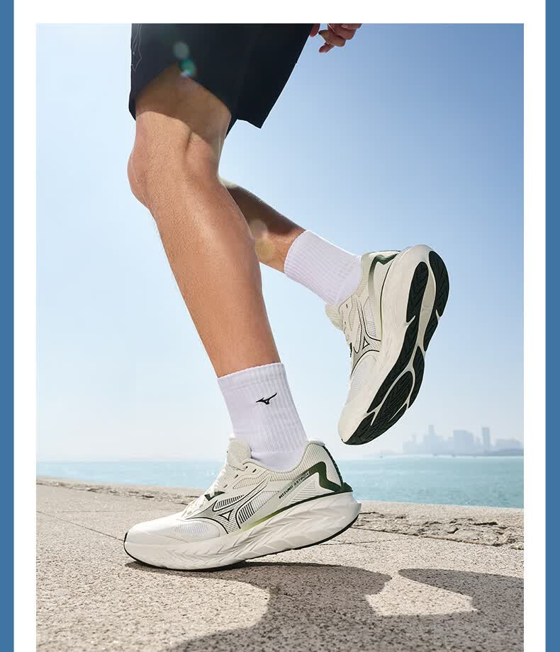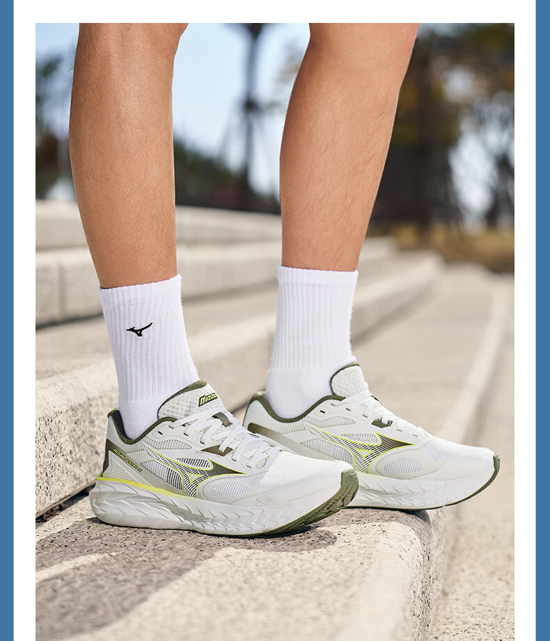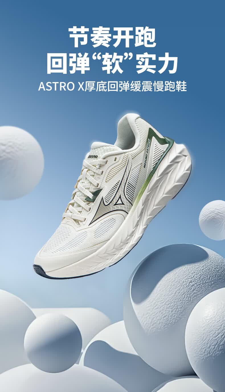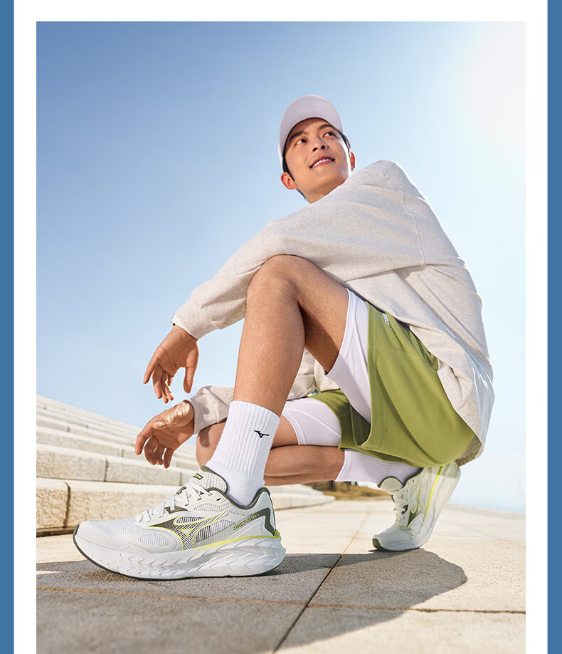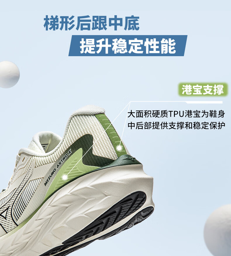 美津浓(MIZUNO)厚底缓震回弹专业运动跑步鞋 ASTRO X 08/灰白/冷杉绿 42