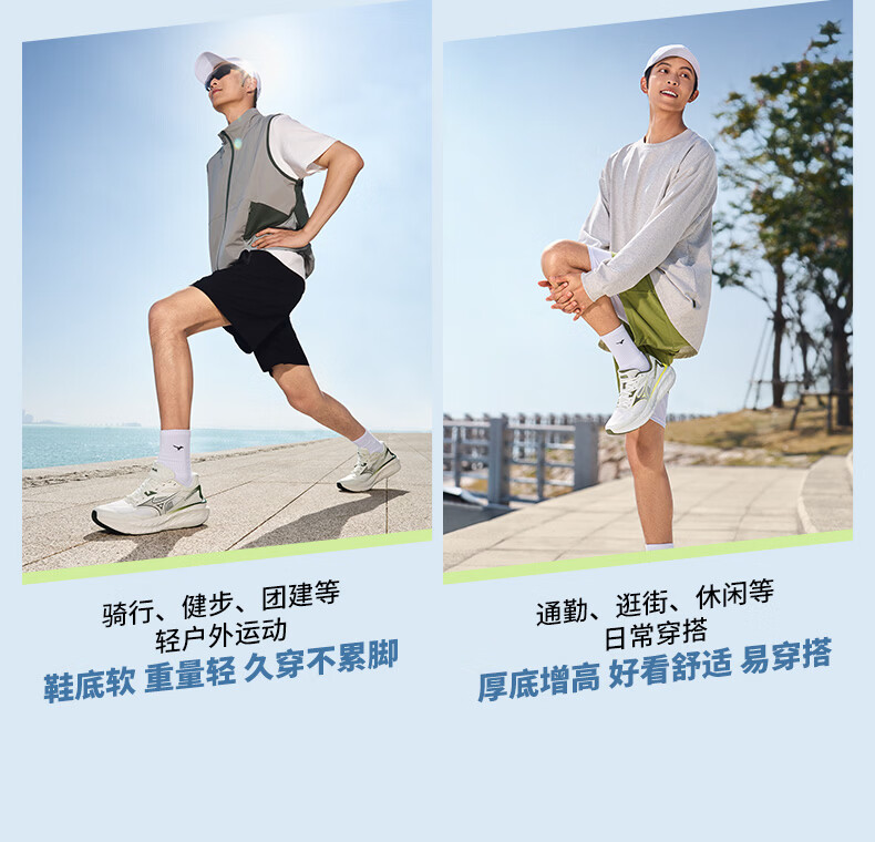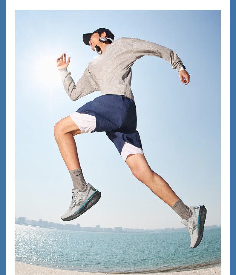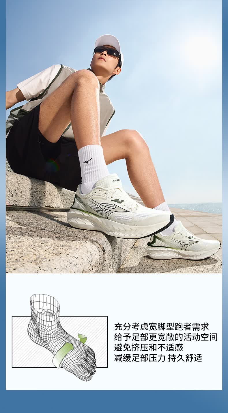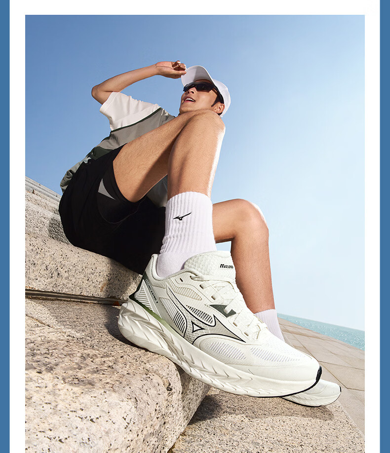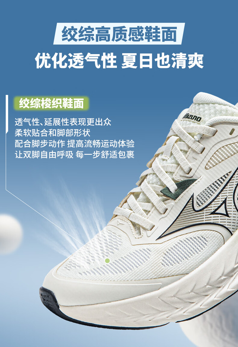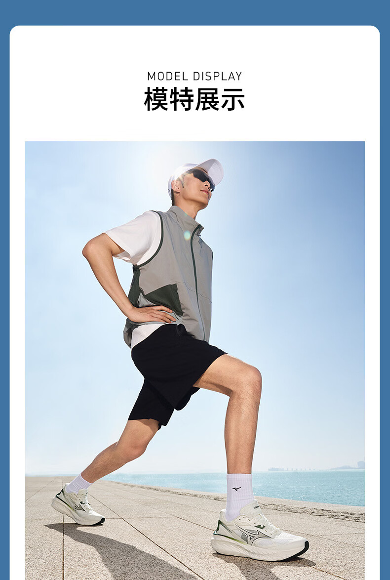 美津浓(MIZUNO)厚底缓震回弹专业运动跑步鞋 ASTRO X 08/灰白/冷杉绿 42