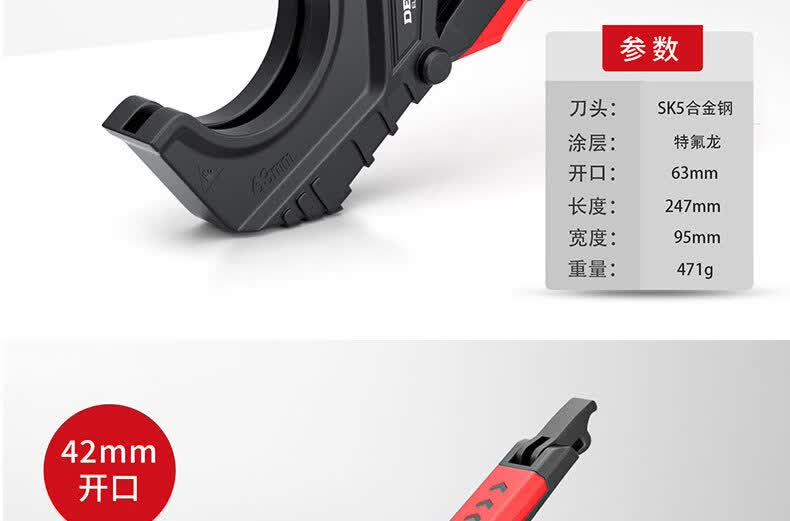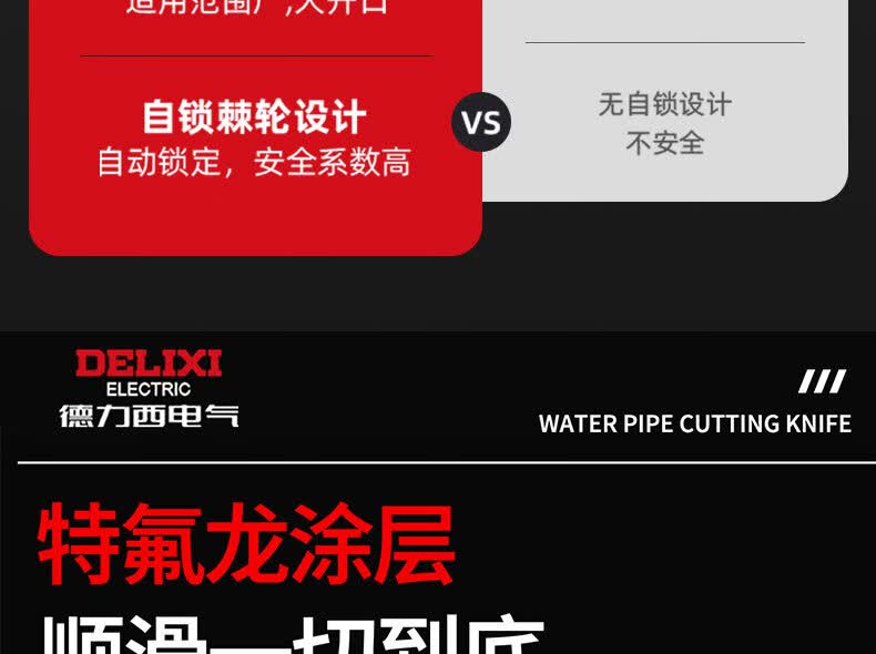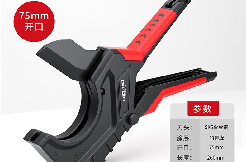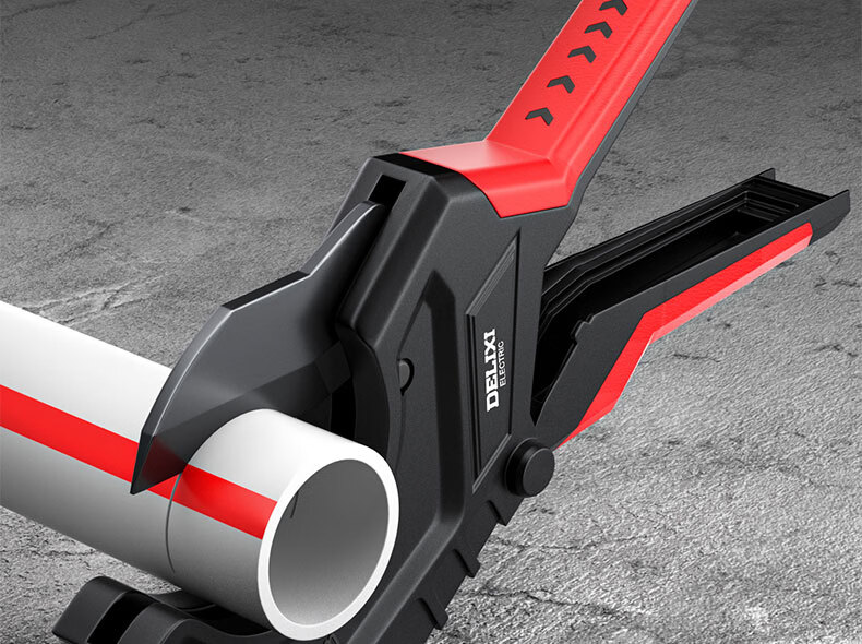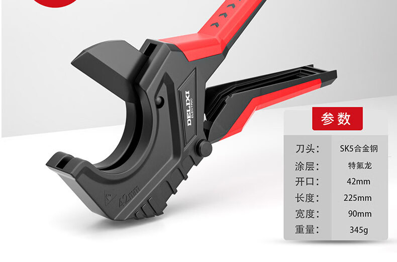 德力西电气(DELIXI ELECTRIC)水管剪刀快剪专业pvc/ppr管剪刀剪水管专用刀热熔管剪刀 42mm开口【SK5特氟龙刀片+加厚铝合金刀身+自锁棘轮】