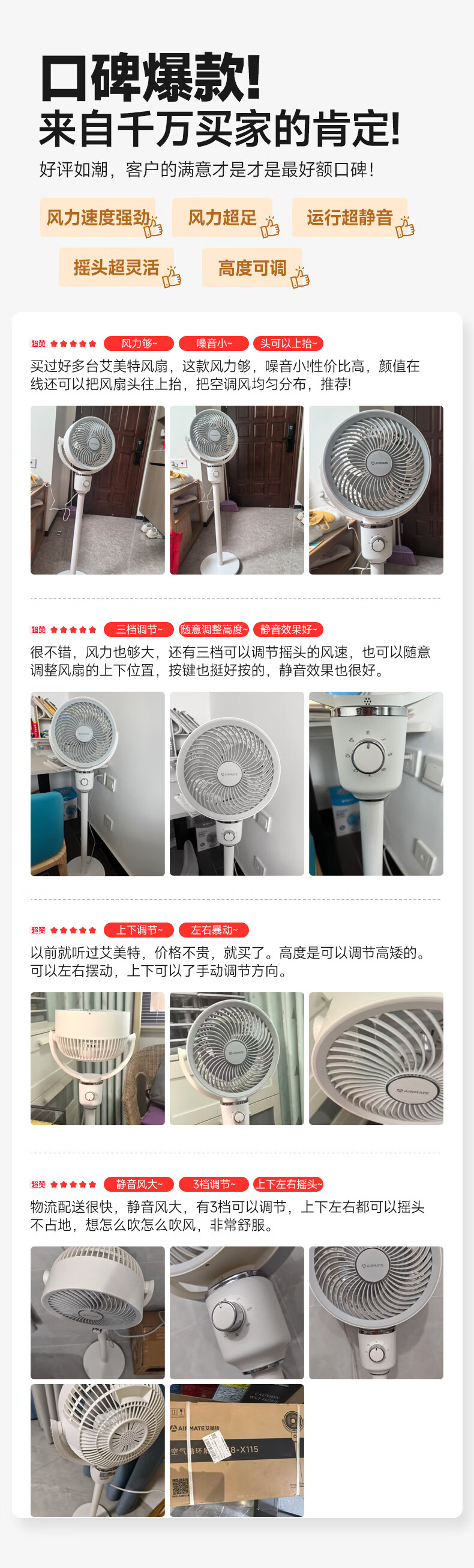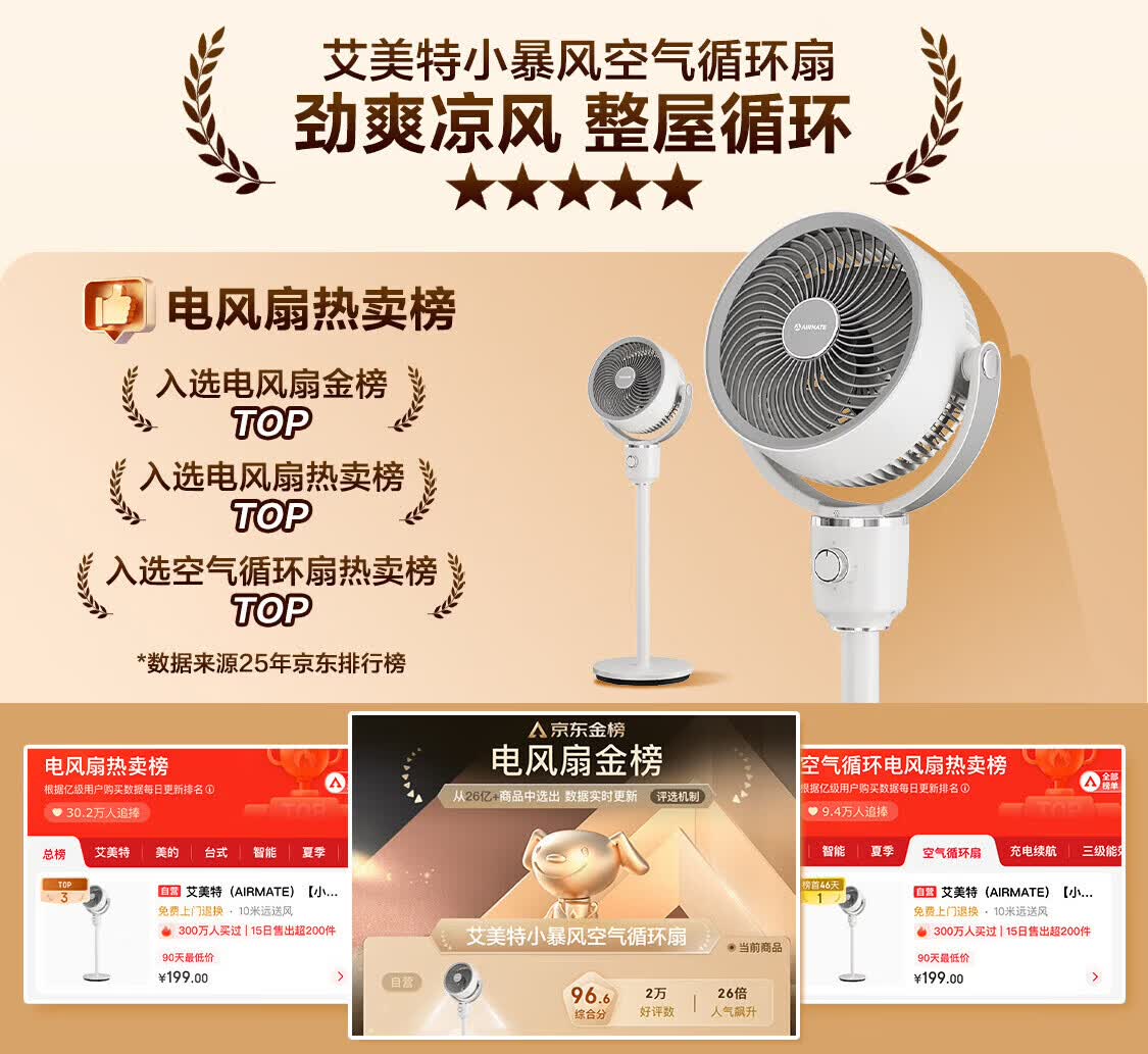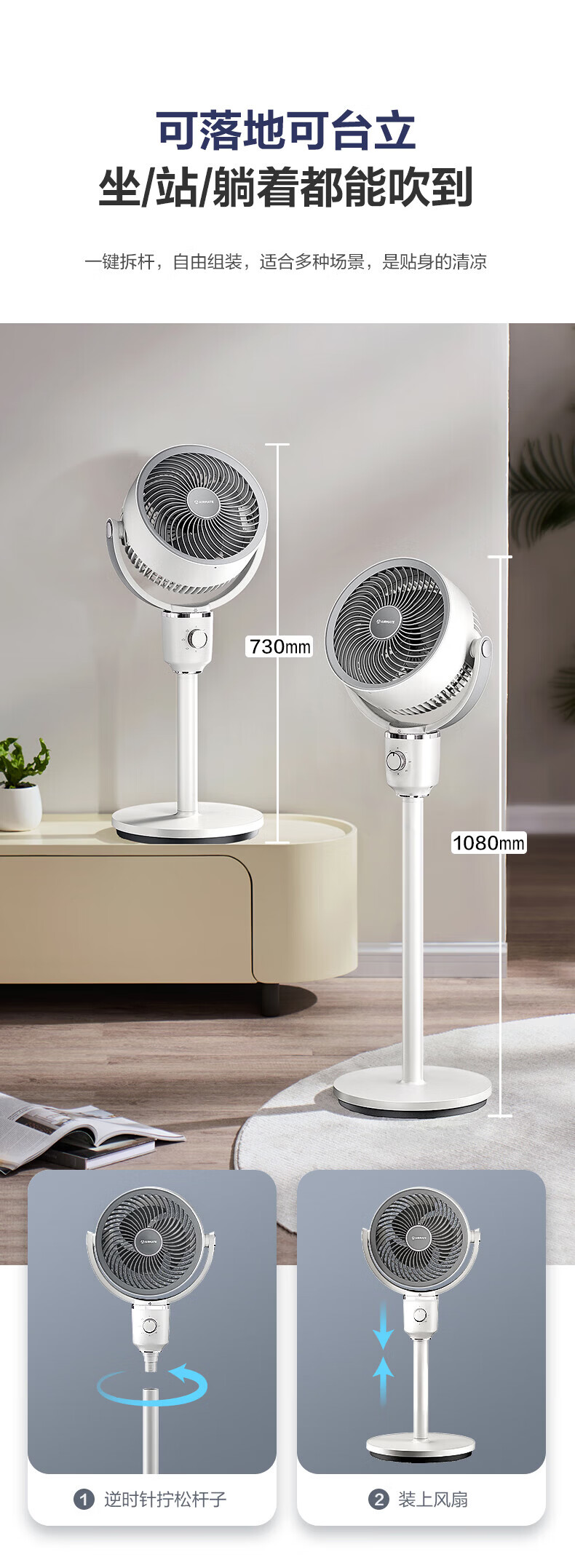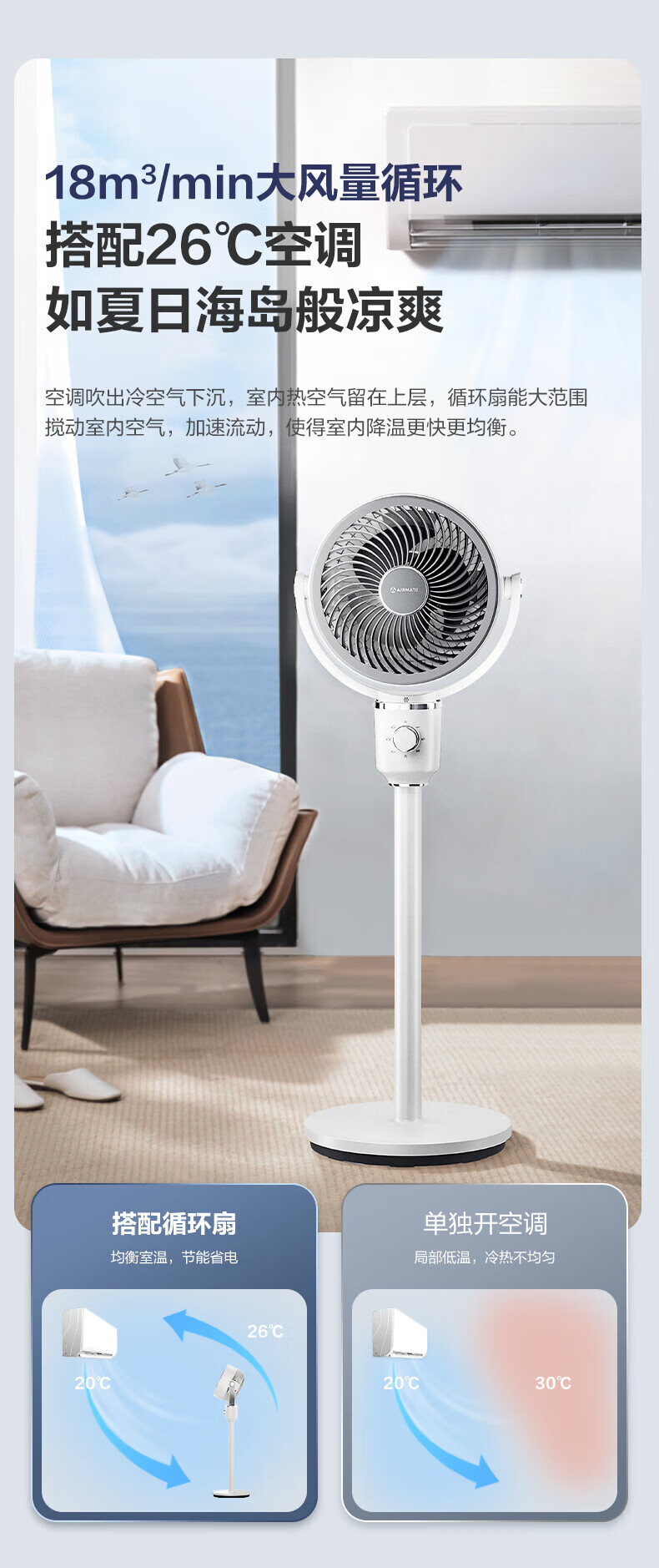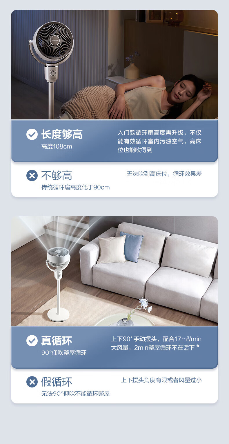 艾美特(AIRMATE)空气循环扇家用落地循环扇大风量电风扇升级加高静音柔风落地扇台立三用香薰驱蚊换气扇 【风大音轻/10米远距送风】小暴风循环扇