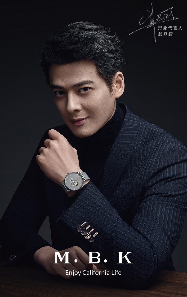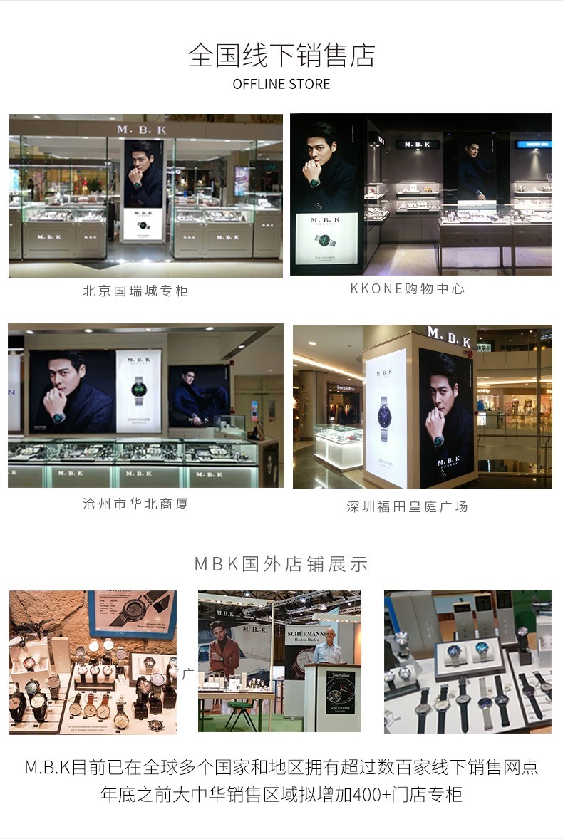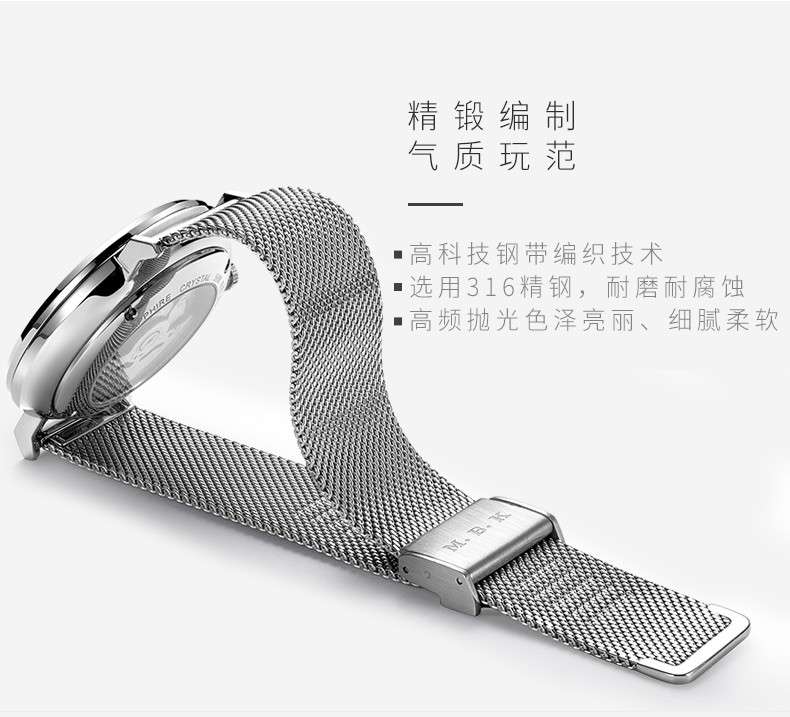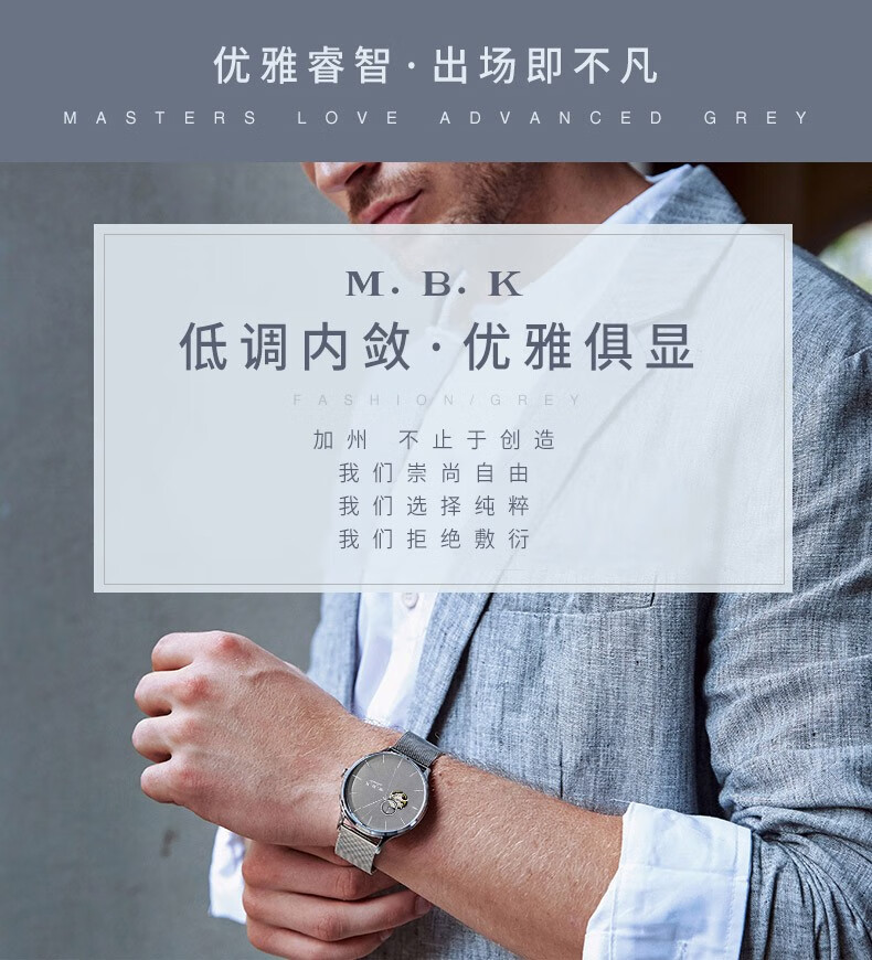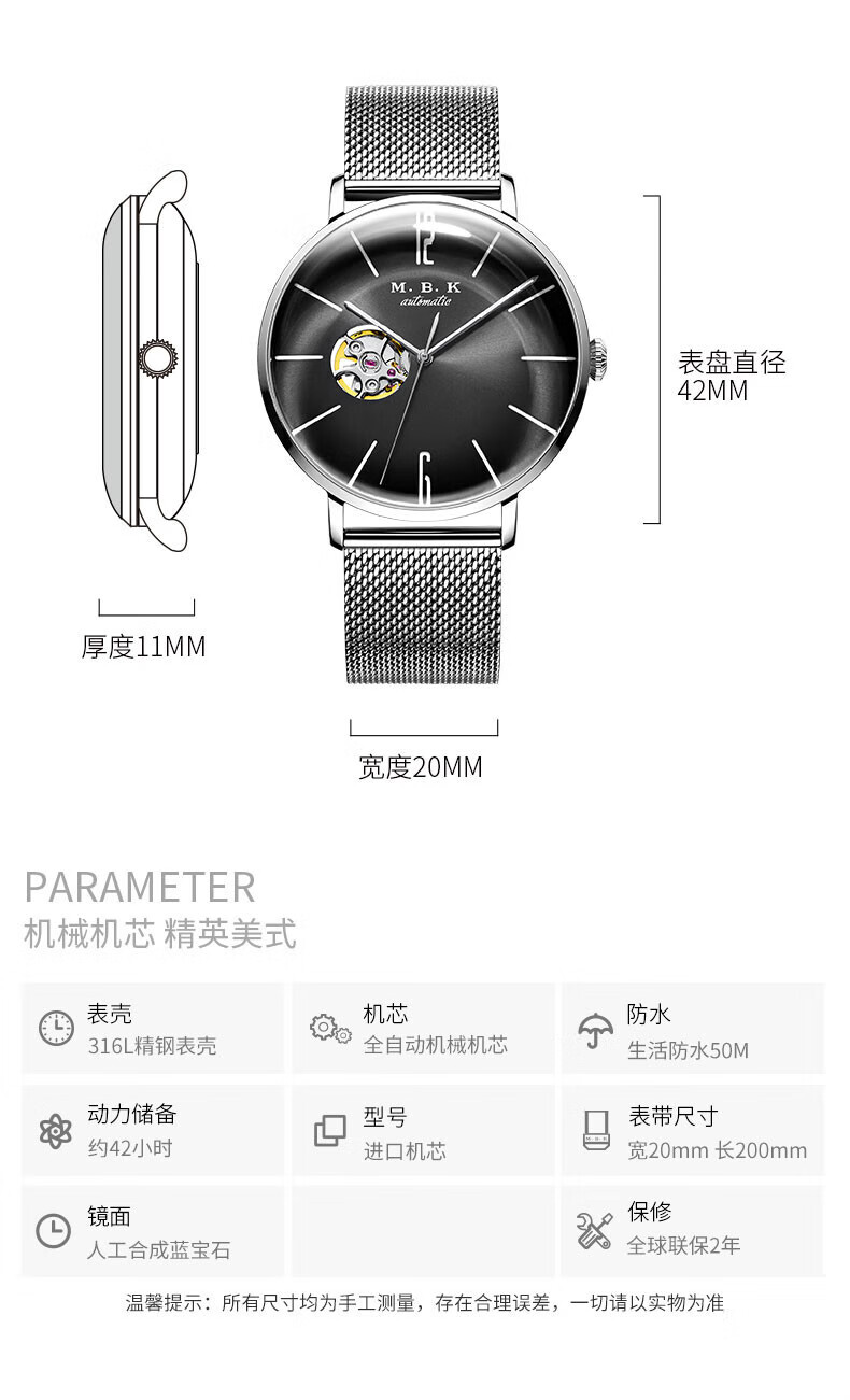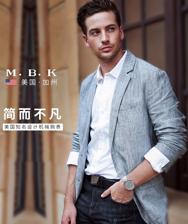 M.B.K美国品牌进口手表男士全自动机械表镂空弧面夜光防水十大男士腕表 M1009G1碧玉绿面皮带进口机芯